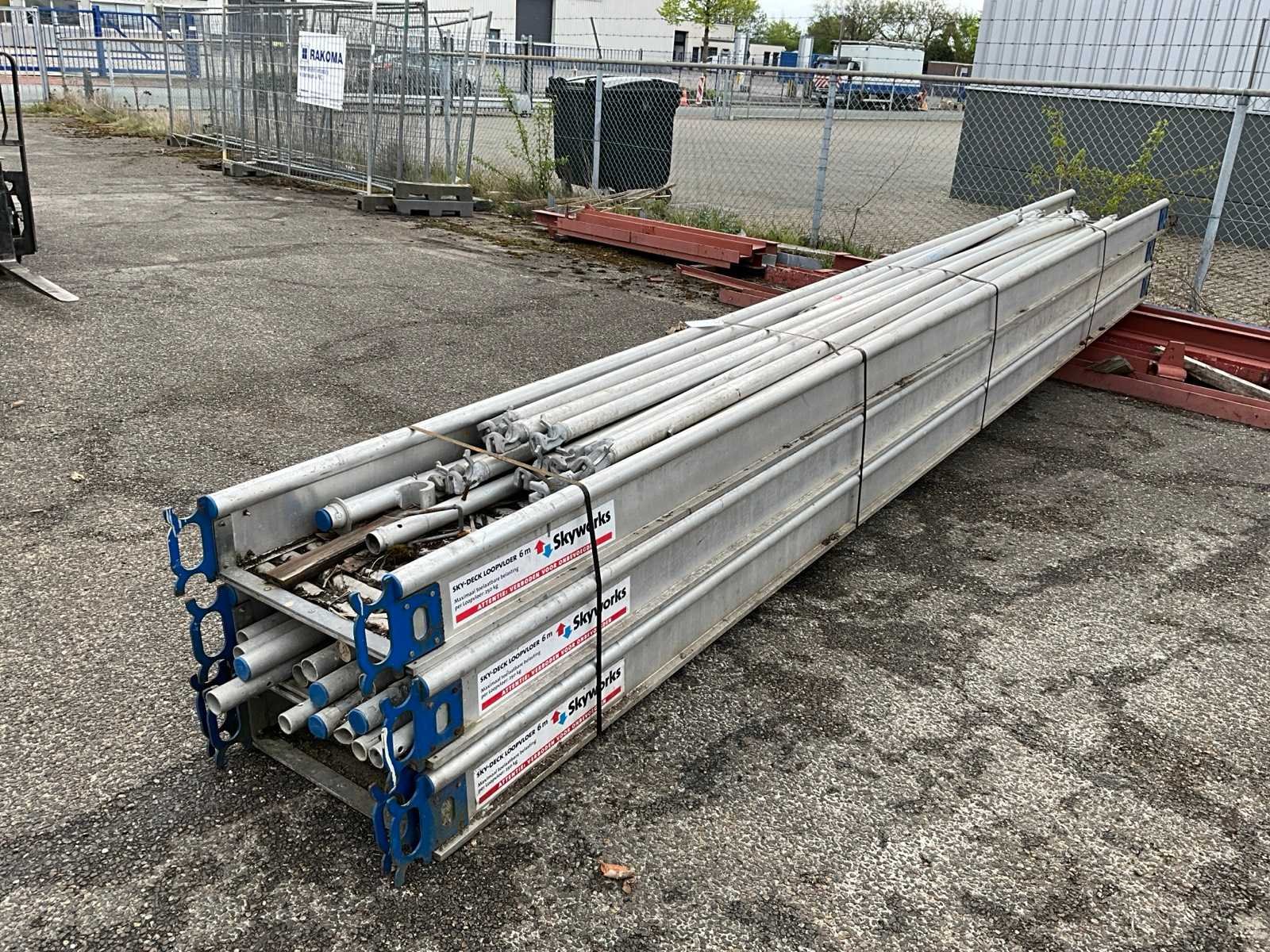 Max belasting 250kg, altrex schoren van diverse lengts, diverse steiger buizen Merk: Skyworks Totale afmeting L: 6200mm Totale afmeting Breedte: 580mm