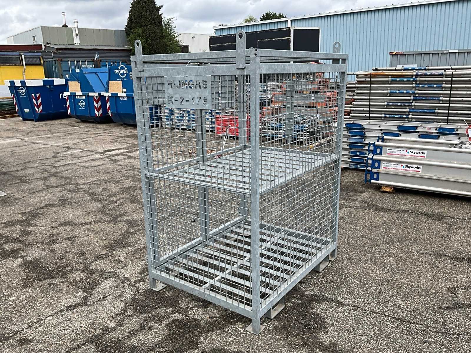 2 lagen, afsluitbaar, lepelgaten, hijsogen, Merk: Rijngs Type: K-2-179 Totale afmeting L: 1050mm Totale afmeting Breedte: 1350mm Totale afmeting Hoogte: 1900mm