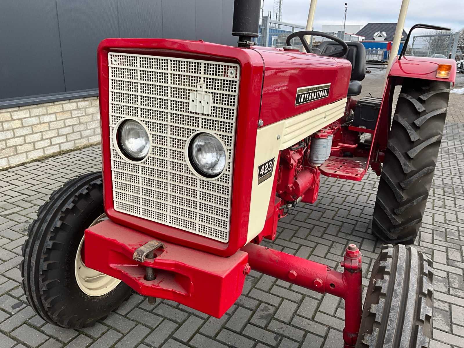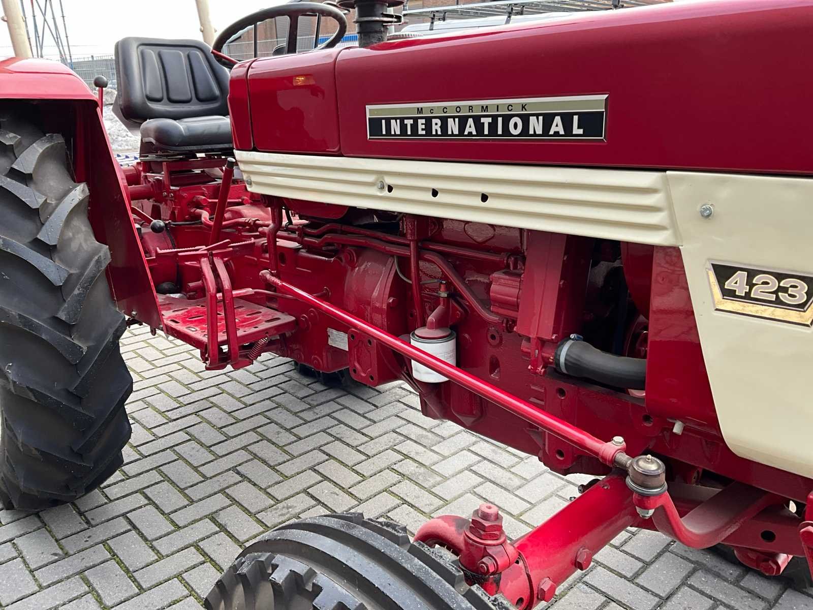 Volledig gerestaureerd; Merk: International Type: 423 Bouwjaar: 1970 Kenteken: TZX 21-P Chassisnummer: 111623 Motorvermogen (kW): 42kW Aftakastoerental: 540rpm Bandenmaat voor: 7.50-16 Bandenmaat achter: 12.4-32 Eigen gewicht: 2900kg