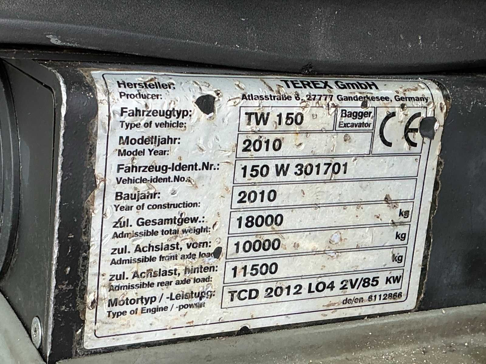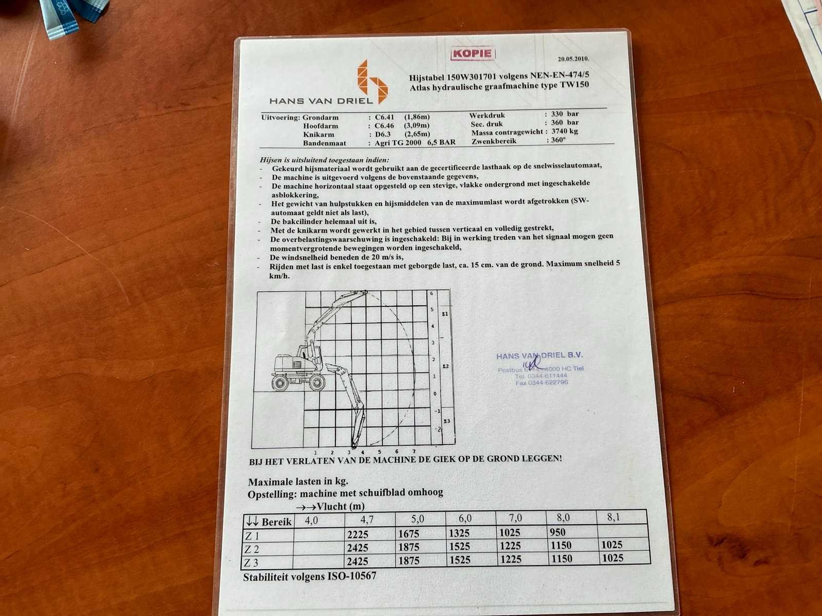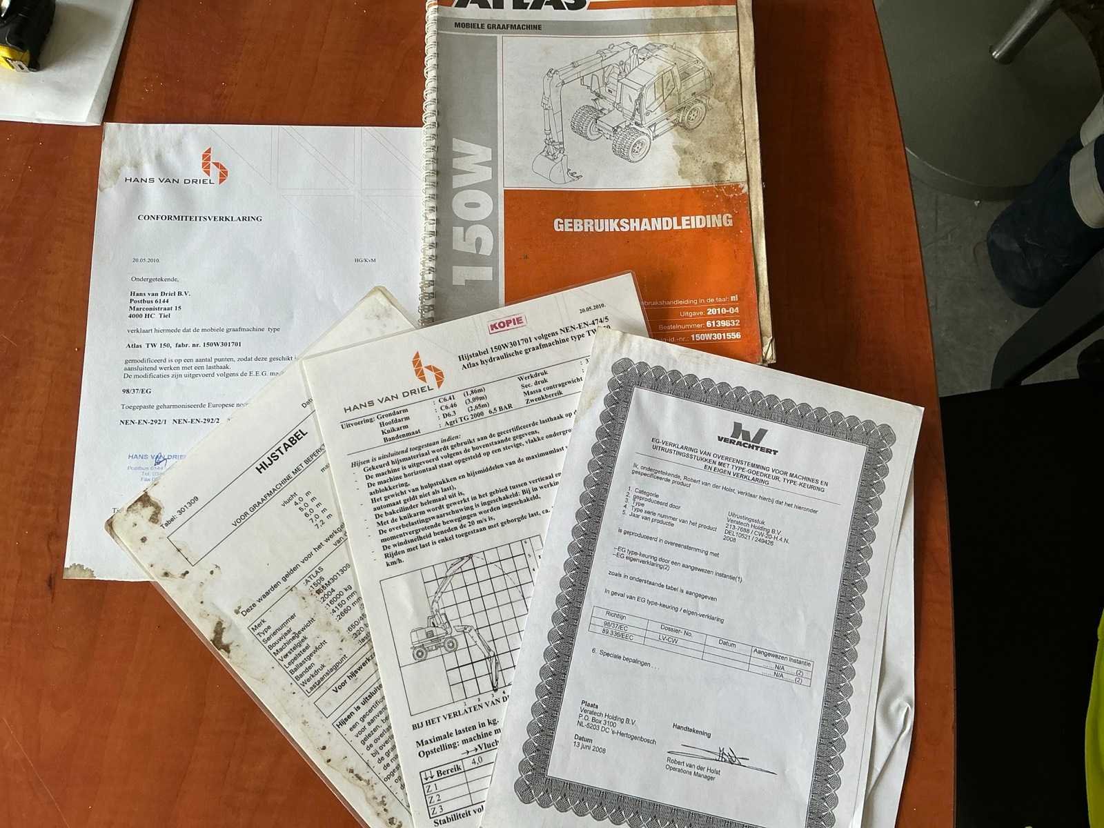 Hydraulisch snelwissel CW20, Extrafunctie waaronder sloop/sorteer, Hamer, Maaikorf functie; Documentatie Merk: ATLAS Type: 150W Bouwjaar: 2010 Serienummer: 150W301701 Kenteken: TBX-93-D Merk motor: Deutz Motorvermogen (kW): 85kW Aantal cilinders: 4 Brandstof: diesel Bedrijfsgewicht: 18000kg Gieklengte: 7650mm Max. werkbereik: 7000mm Max. graafdiepte: 5000mm Met graafbak: true Graafbak afm. l: 1000mm Graafbak afm. b: 1030mm Graafbak afm. h: 1300mm Bandenmaat: 315/80R22.5 HD-404 Cabine: true Afgelezen urenstand: 14688 Eigen gewicht: 18000kg Totale afmeting L: 4500mm Totale afmeting Breedte: 2550mm Totale afmeting Hoogte: 3060mm