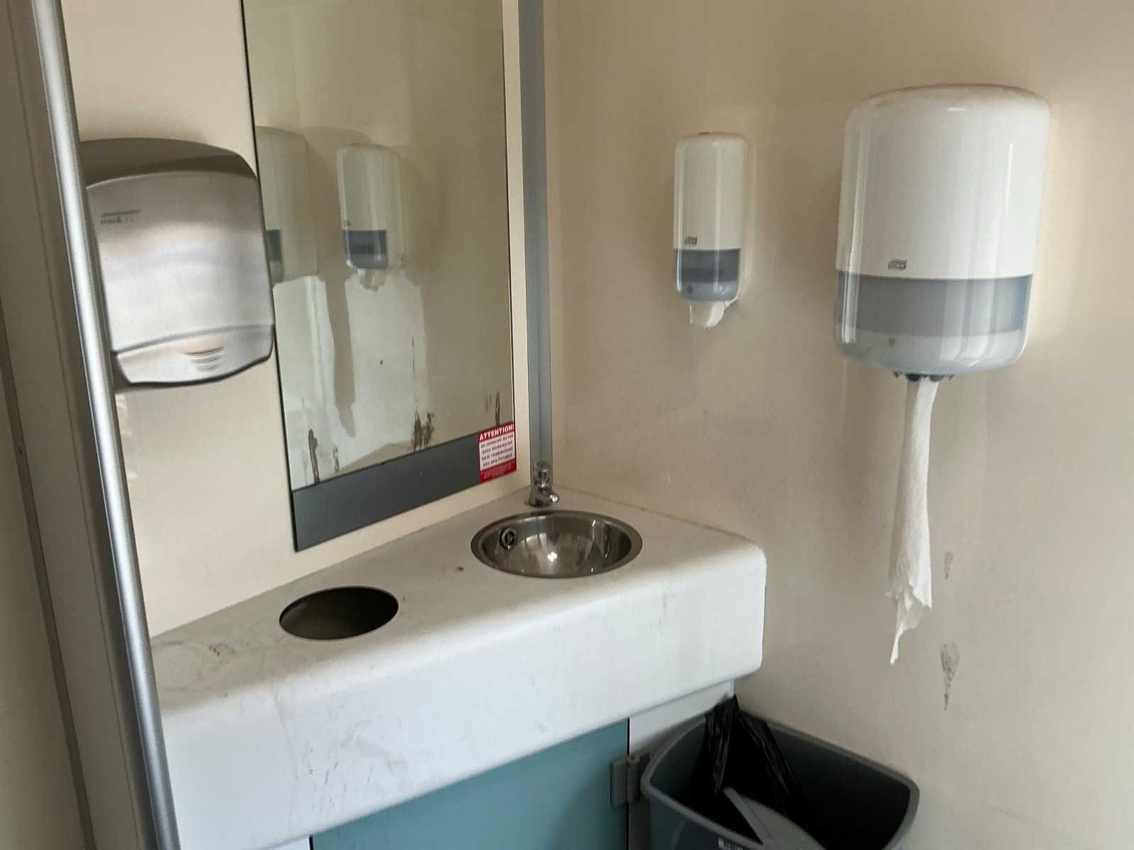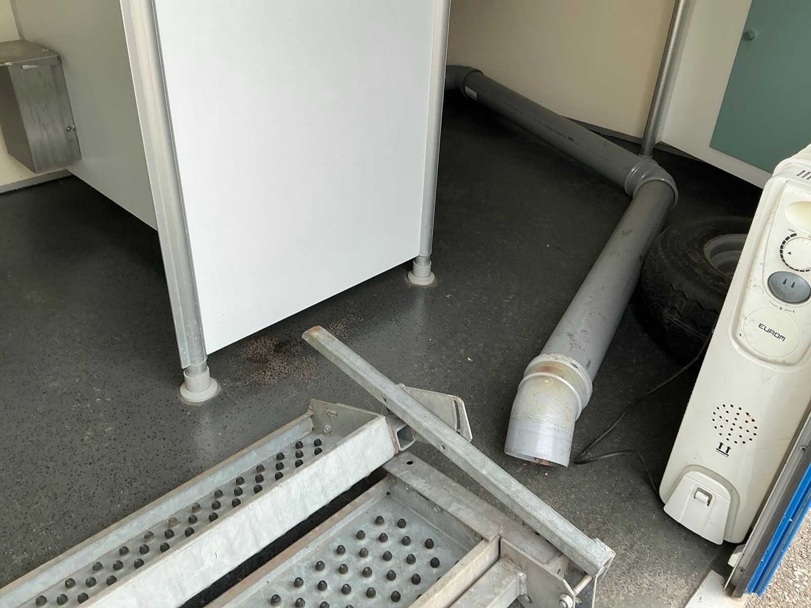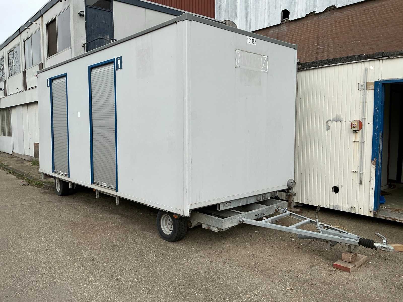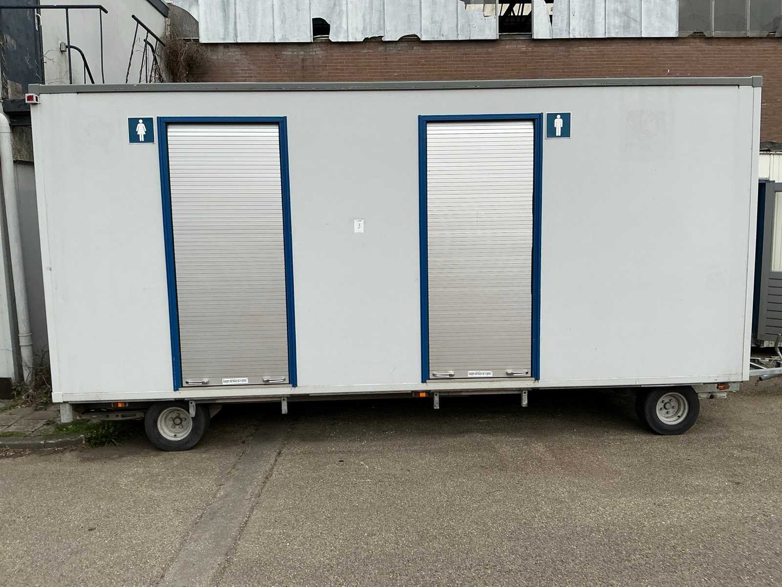 Verrijdbare sanitair unit verdeeld in 2 delen, 1 deel voorzien van 3x urinoir, 1x toilet, Wastafel met papier dispenser en automatische handendroger, Elektrisch verwarmingselement; 1 deel voorzien van 3x toilet, Wastafel met papier dispenser en automatische handendroger, Elektrisch verwarmingselement; 2x opstap, 1x reservewiel Merk: Schans Model: S 5000 Bouwjaar: 2002 Chassisnummer: XL9S5000020056013 Aantal assen: 2 Laadbak afmeting l: 570cm Laadbak afmeting b: 240cm Ledig gewicht: 2500kg Gesloten opbouw: true Datum eerste toelating: 2002-05-17 Kenteken: WF-LX-76 Hoogte: 297cm Lengte: 760cm Breedte: 240cm Nationaliteit documenten: Nederland Zelf rijdend exporteren: Mogelijk