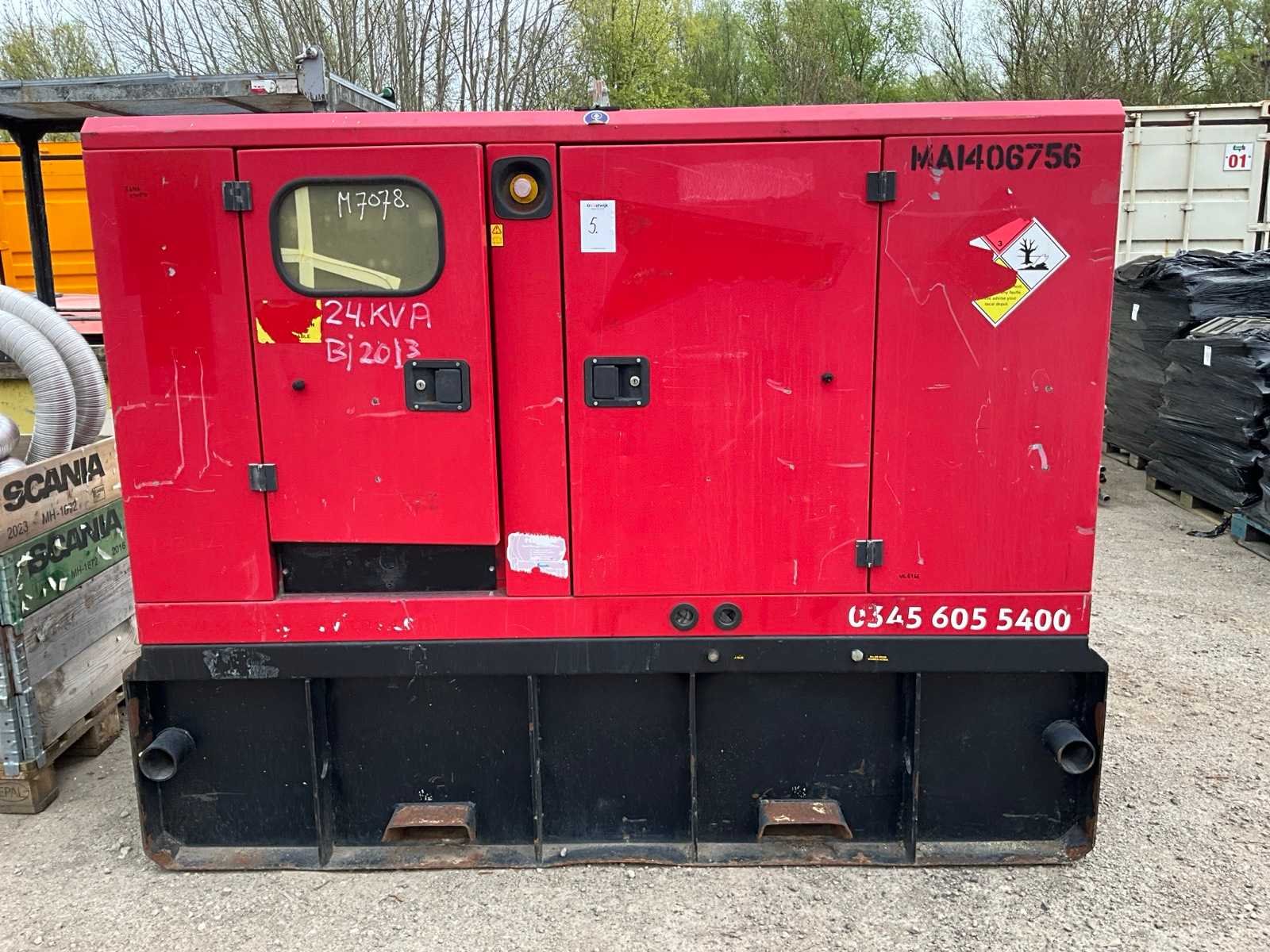 Defect Bouwjaar: 2013 Capaciteit.: 24kVA Diesel: true Type motor: Yanmar XTNEA Aantal cilinders: 4 Totale afmeting L: 2250mm Totale afmeting Breedte: 980mm Totale afmeting Hoogte: 1750mm