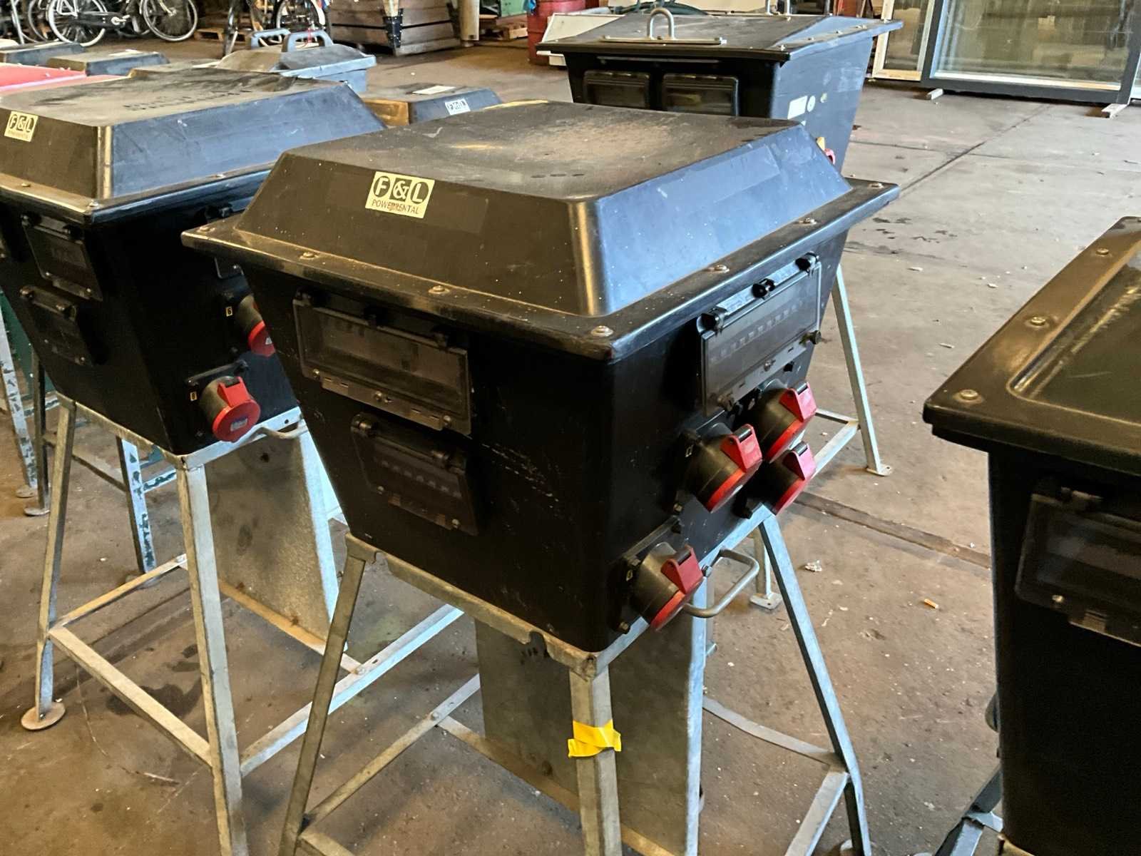 Merk: Bos Type: Medium Bouwjaar: 2014 Aansluiting: 200A Aantal uitgangen 230v: 6 Aantal uitgangen 380 v / 32 a: 4 Totale afmeting L: 550mm Totale afmeting Breedte: 550mm Totale afmeting Hoogte: 1200mm