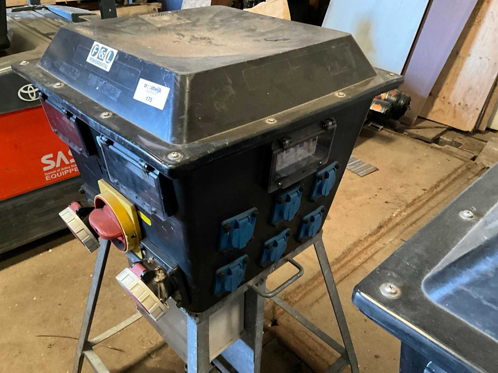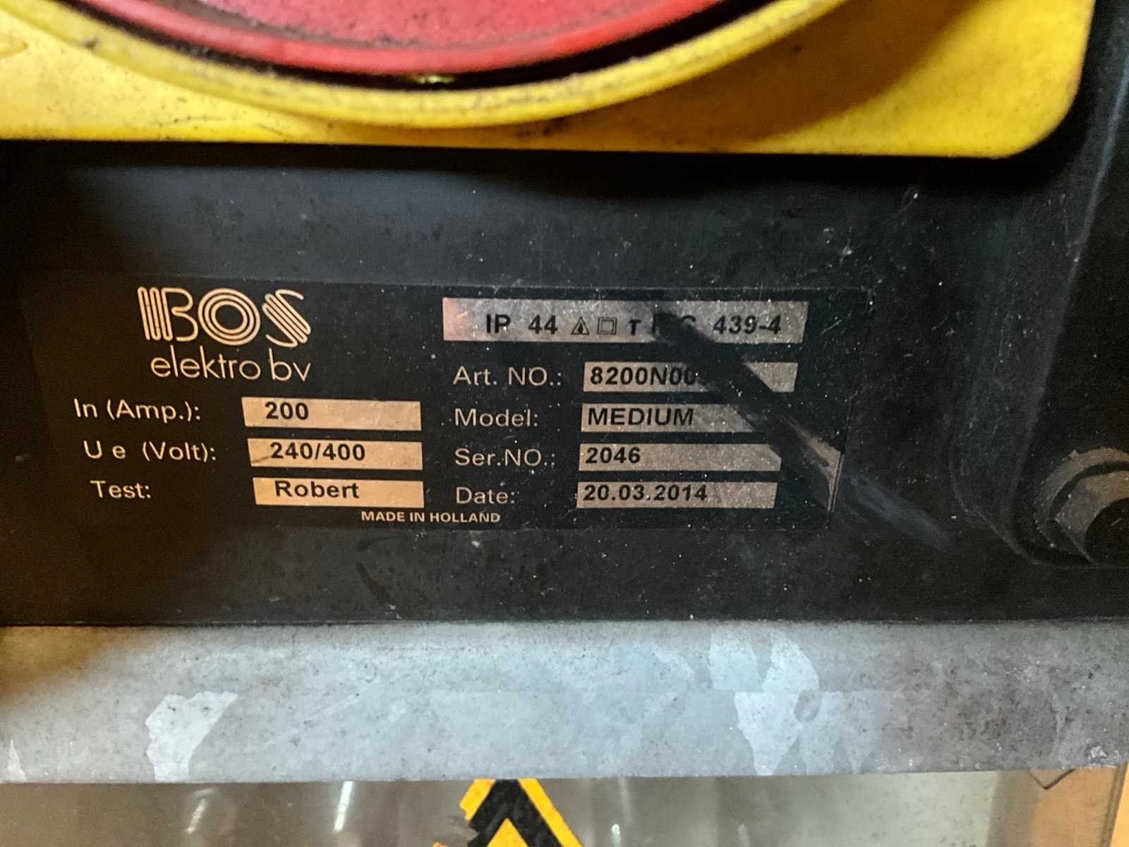 Merk: Bos Type: Medium Bouwjaar: 2014 Aansluiting: 200A Aantal uitgangen 230v: 6 Aantal uitgangen 380 v / 32 a: 4 Totale afmeting L: 550mm Totale afmeting Breedte: 550mm Totale afmeting Hoogte: 1200mm