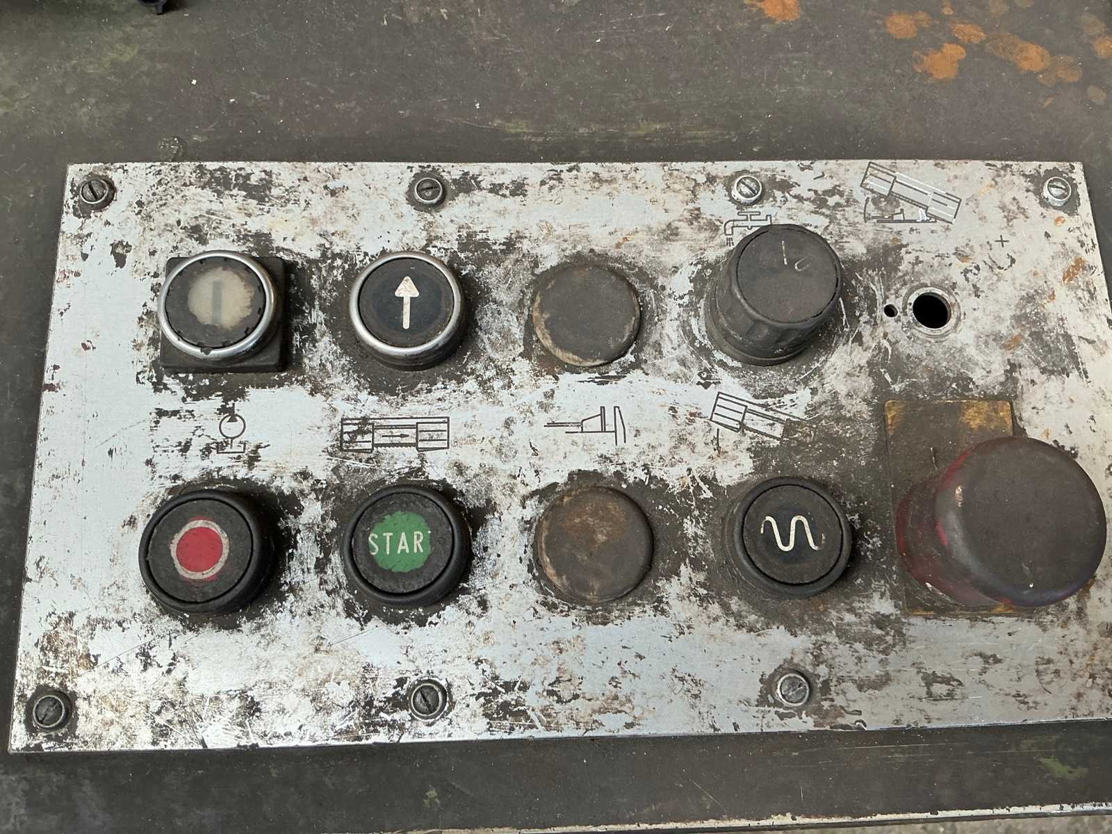 Merk: MEBA Type: 310GHS Bouwjaar: 1991 Serienummer: 13584 Uitlading: 280mm Tafel afmeting l: 230mm Tafel afmeting b: 500mm Aansluiting: 380V Afmeting l: 1250mm Afmeting b: 1960mm Afmeting h: 1250mm