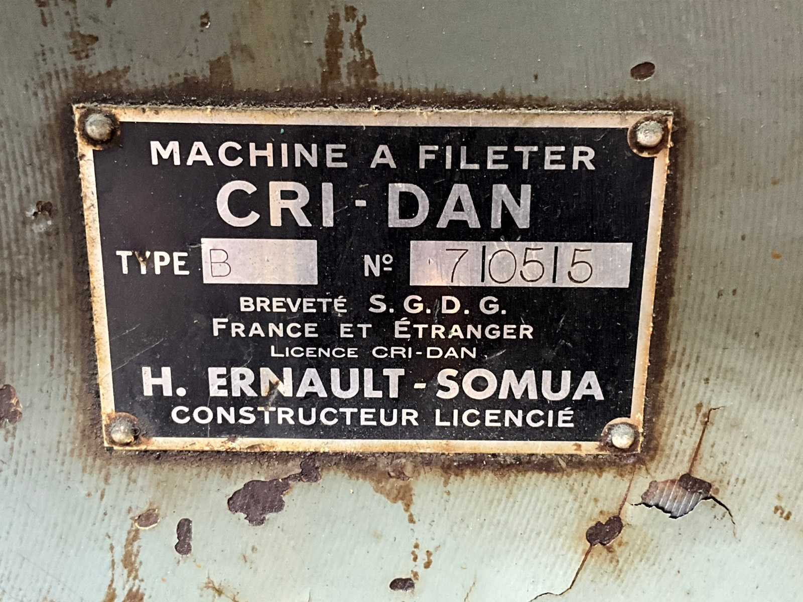 Merk: H. Ernault-Somua Type: B Serienummer: 710515 Aantal snelheden: 2 Aansluiting: 380V Afmeting l: 720mm Afmeting b: 1900mm Afmeting h: 1270mm