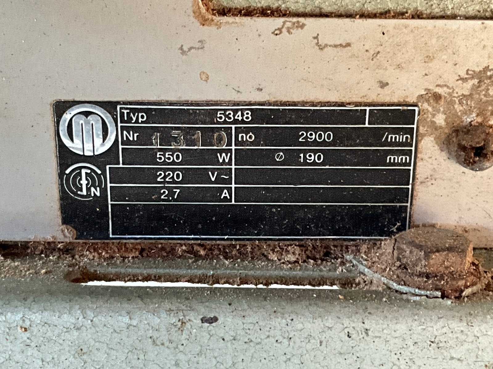 Merk: Metabo Type: 5348 Serienummer: 1310 Zaagblad Ø: 190mm Motorvermogen (kW): 0.55kW Aansluiting: 230V Totale afmeting L: 620mm Totale afmeting Breedte: 420mm Totale afmeting Hoogte: 300mm
