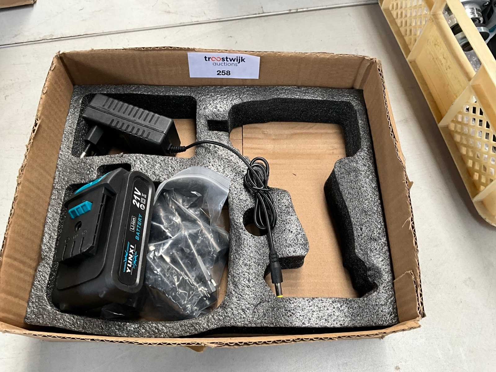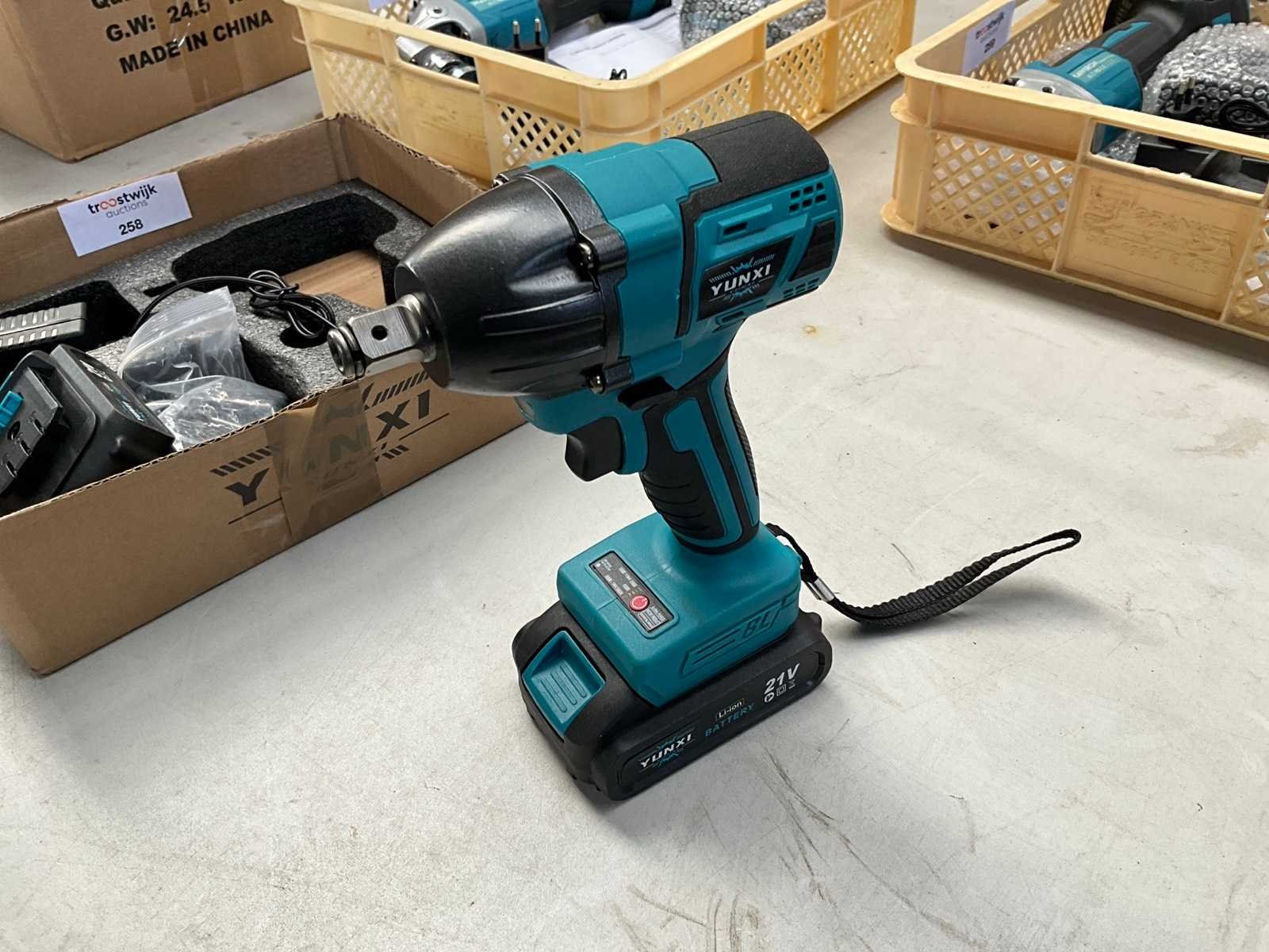 Merk: Yunxi Type: BS001 Accuspanning: 21V Aantal accu's: 2 Accu lader: true Met koffer: true