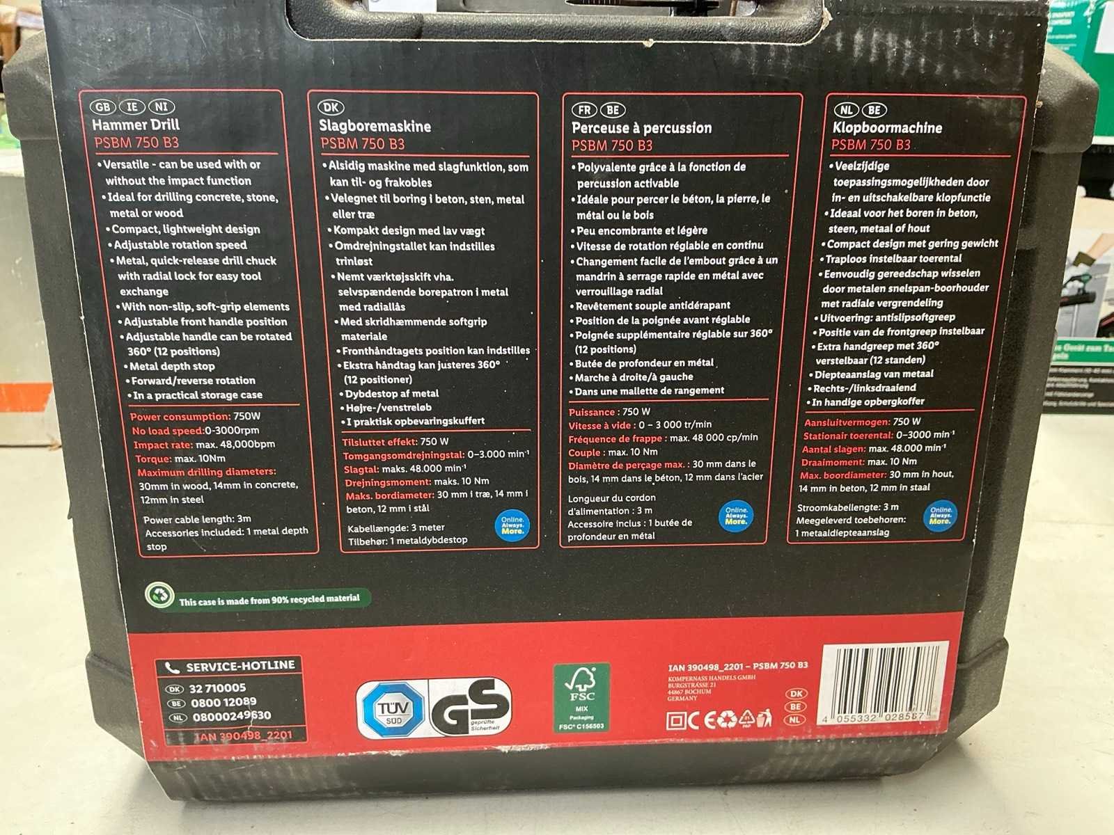 Merk: Parkside Type: PSBM 750 B3 Klopboormachine: true Boorhamer: true Vermogen: 750W Aansluiting: 230V