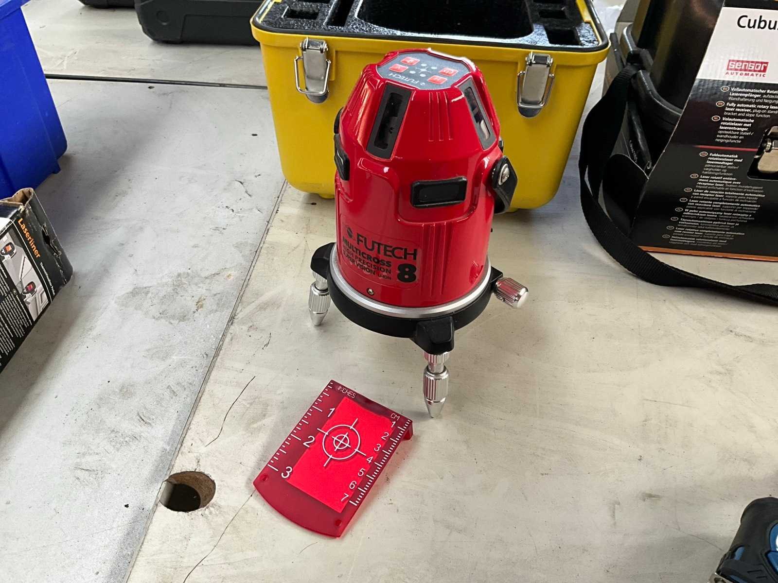 Merk: Futech Type: Multicross 8 Lengte: 18 Breedte: 18 Hoogte: 21 Met koffer: true Statief: true Roterend: true