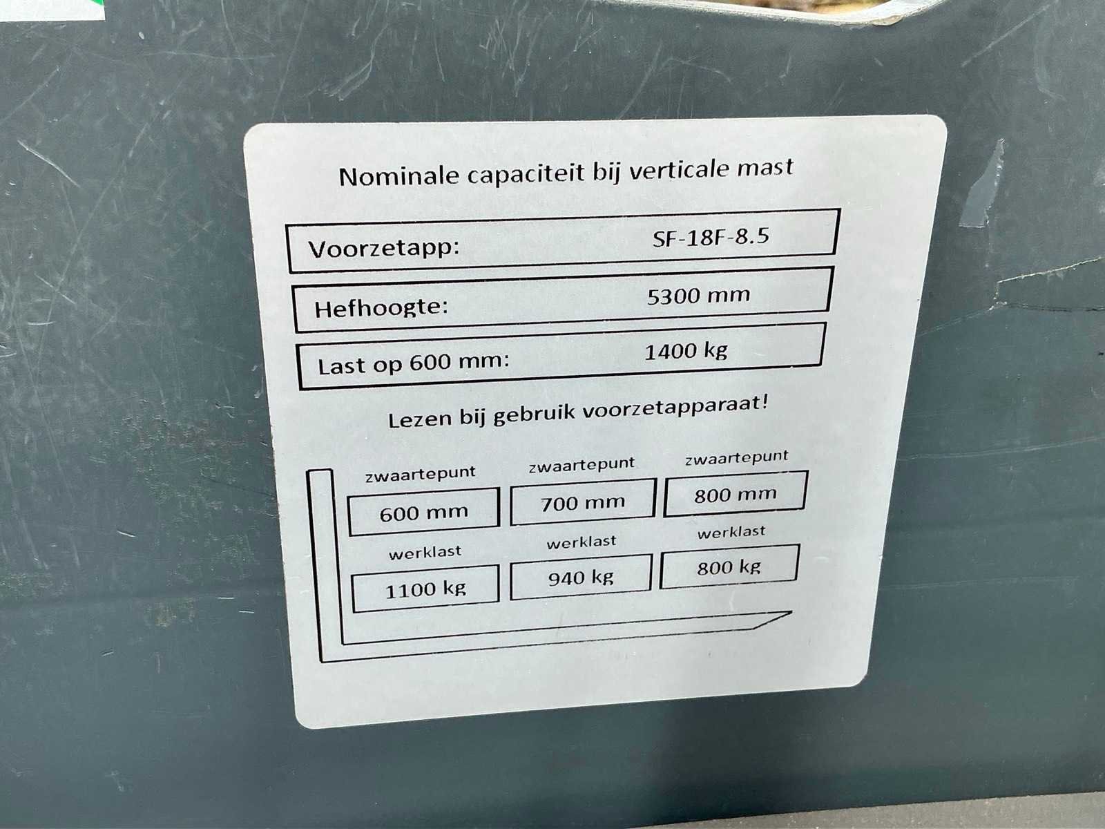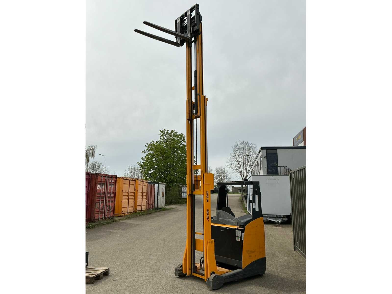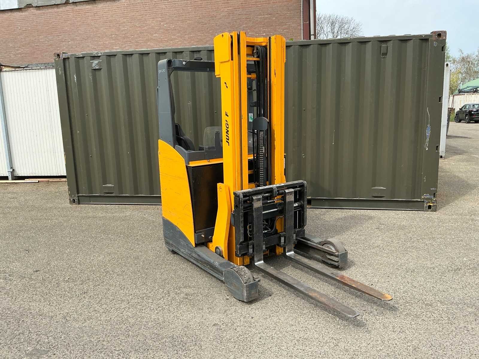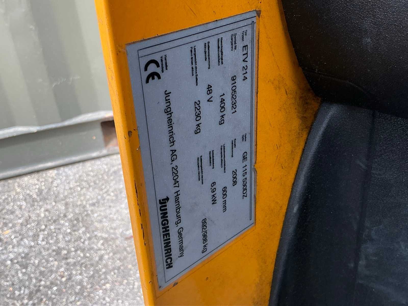 Merk: JUNGHEINRICH Type: ETV-214 Bouwjaar: 2006 Serienummer: 91052321 Brandstof: Elektrisch Mast: Triple Soort band: Volrubber banden Aantal wielen: 3 Accu lader: true Side-shift: true Hydraulisch verstelbare lepels: true Triple mast: true Eigen gewicht: 3000kg Hefvermogen: 1400kg Lepellengte: 1140mm Max. hefhoogte: 5300mm Hefhoogte: 5300mm Vol rubber banden: true Minimale doorrijhoogte: 2300mm Totale afmeting L: 3070mm Totale afmeting Breedte: 1260mm Totale afmeting Hoogte: 2300mm