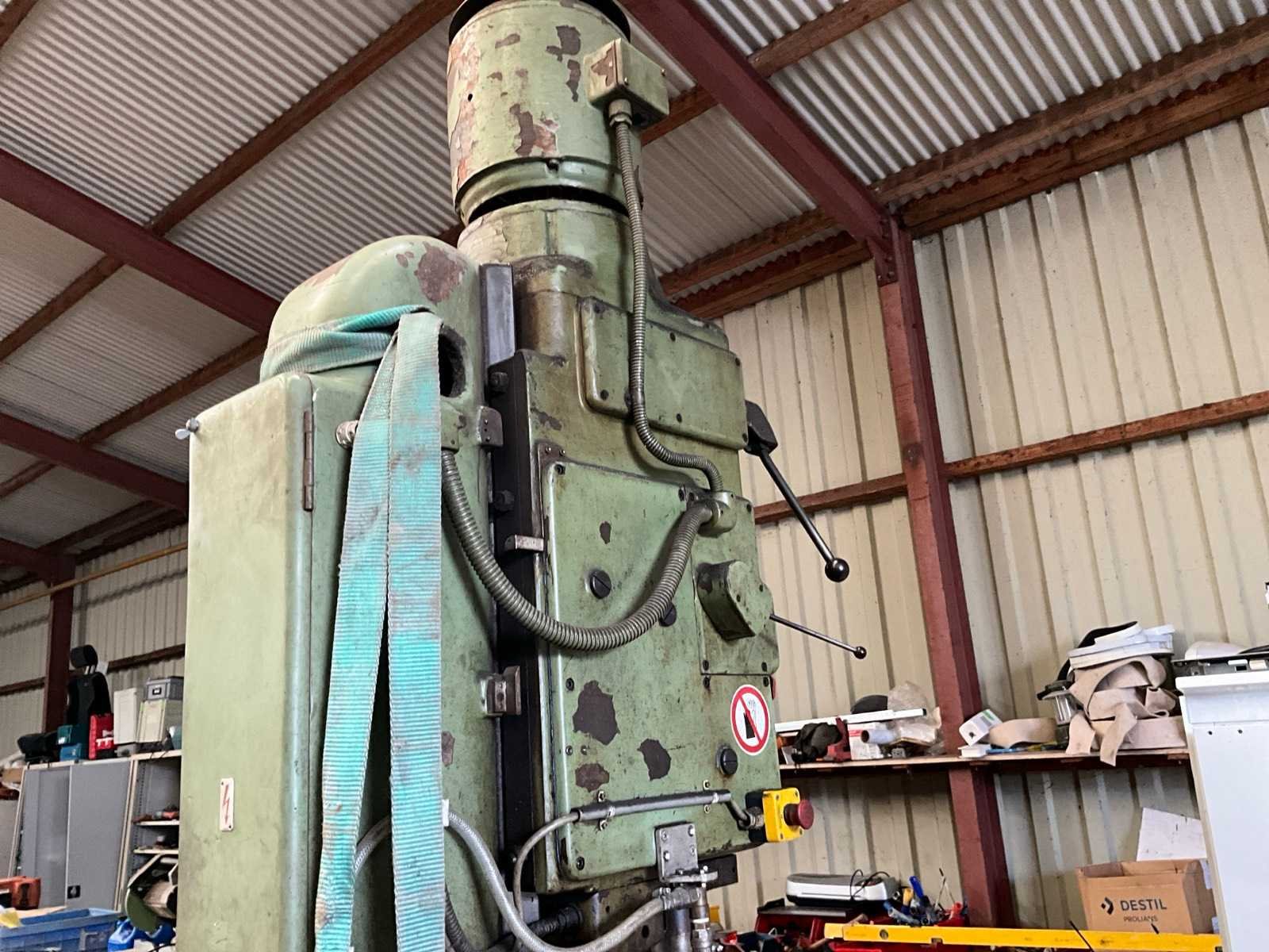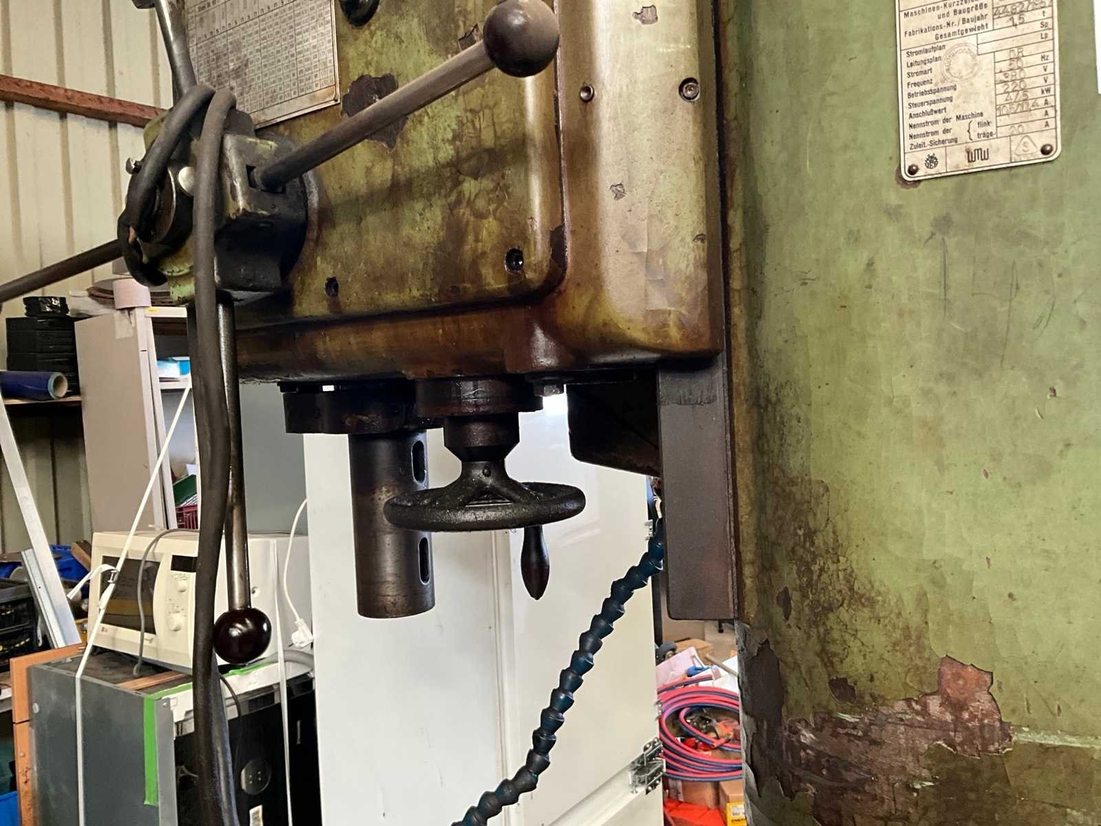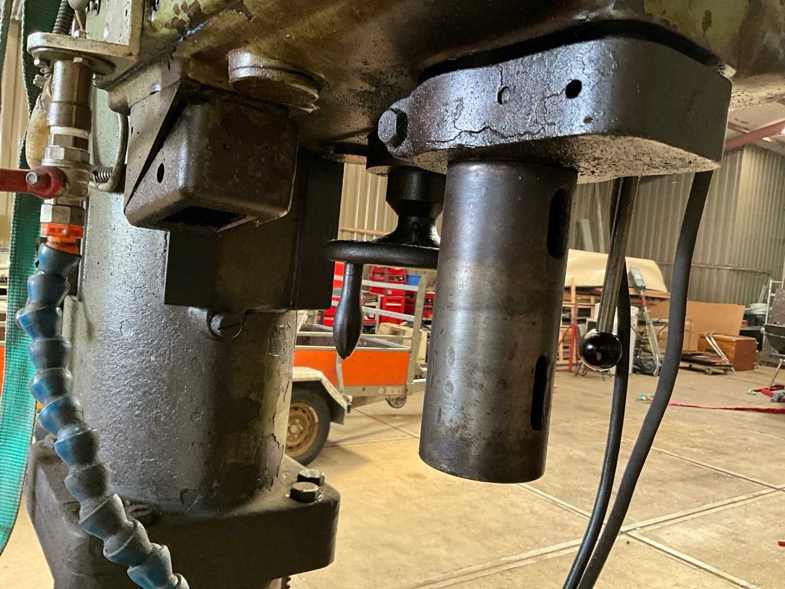 Defect Merk: VEB Type: BS 40 Bouwjaar: 1957 Serienummer: 4482 Boorcapaciteit: 63mm Tafel afmeting l: 660mm Tafel afmeting b: 760mm Motorvermogen (kW): 5kW Aansluiting: 380V Machinegewicht: 1500kg