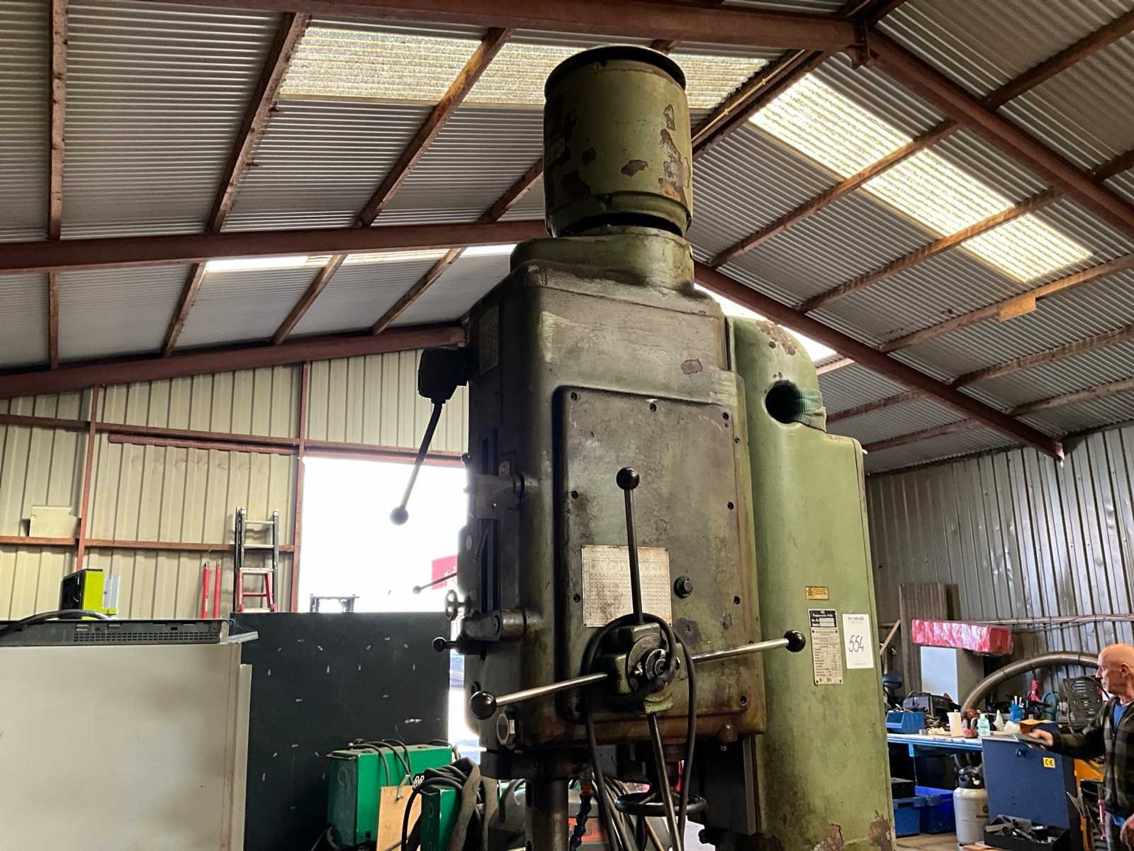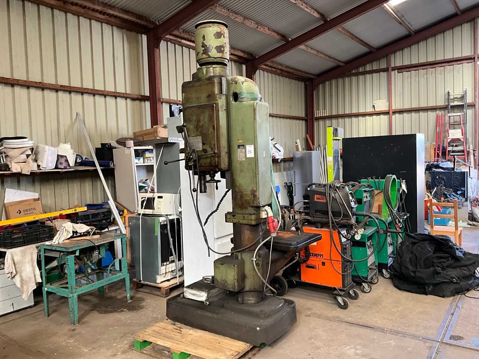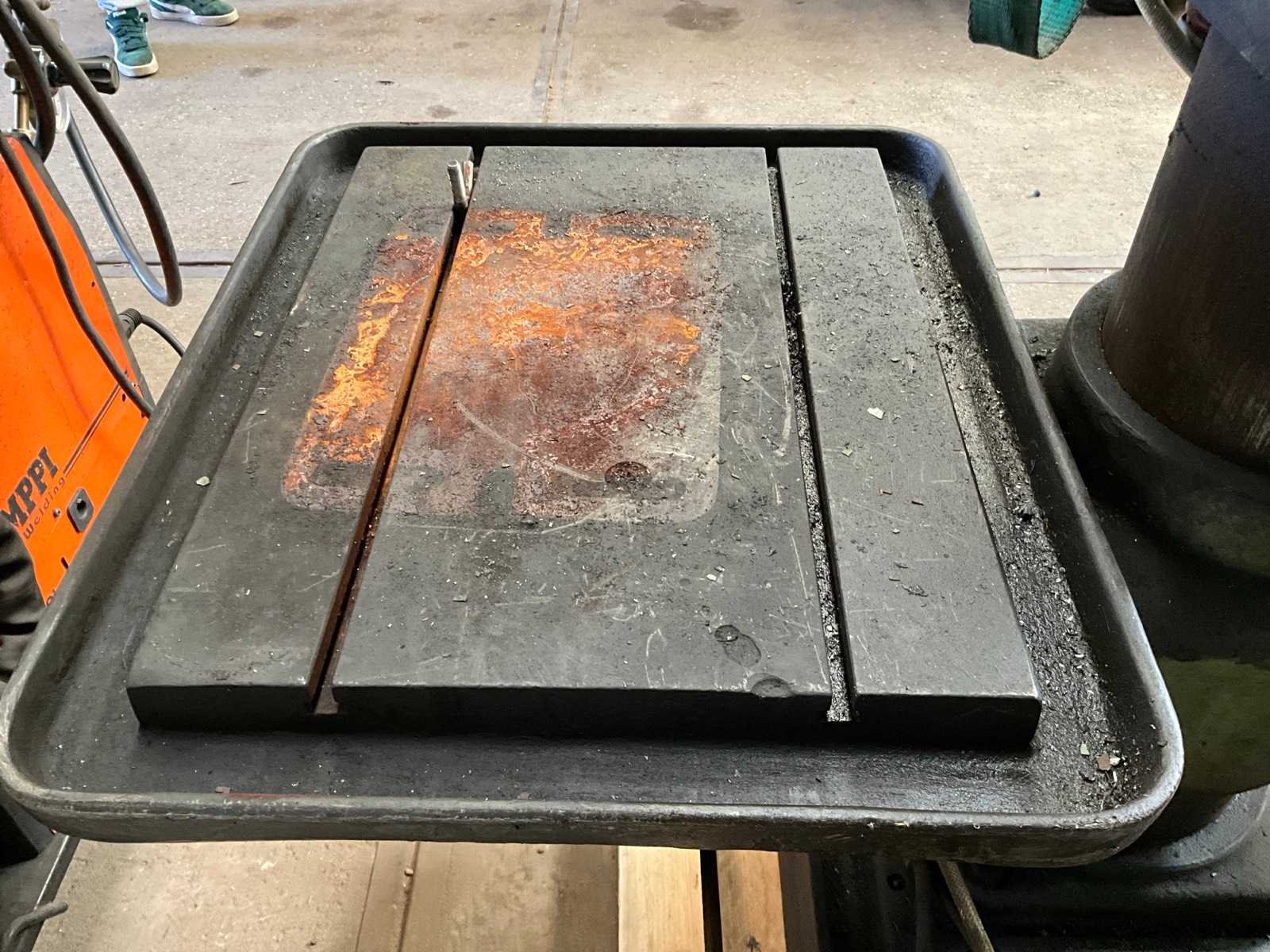 Defect Merk: VEB Type: BS 40 Bouwjaar: 1957 Serienummer: 4482 Boorcapaciteit: 63mm Tafel afmeting l: 660mm Tafel afmeting b: 760mm Motorvermogen (kW): 5kW Aansluiting: 380V Machinegewicht: 1500kg