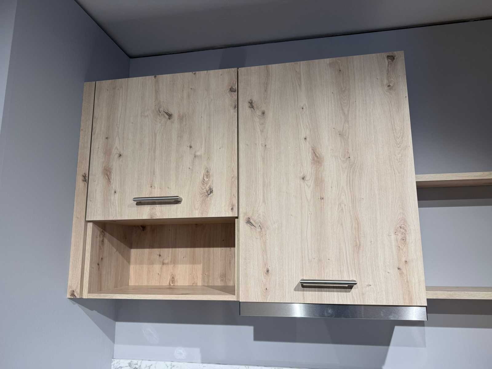 Reeds gedemonteerd en ingepakt op pallets. (afstapelen, omruilen of statiegeld per pallet); pallets zijn niet inbegrepen; statiegeld betalen bij afhalen, of pallets afstapelen; werkblad niet ingepakt op pallets (26-IMP-04253) Merk: Impuls Type keukenopstelling: Recht Lengte: 190cm Breedte: 60cm Hoogte: 121,4cm Kraan: Ja Gootsteen: Ja Werkblad hoogte: 91,8cm Fornuis: Ja Koelkast: Vestel VEKF2116-1 Oven: Amica AMMB44E20CB Afzuigkap: Ja Vaatwasser: PKM GS606FI2 Kleur: Eikenkleur