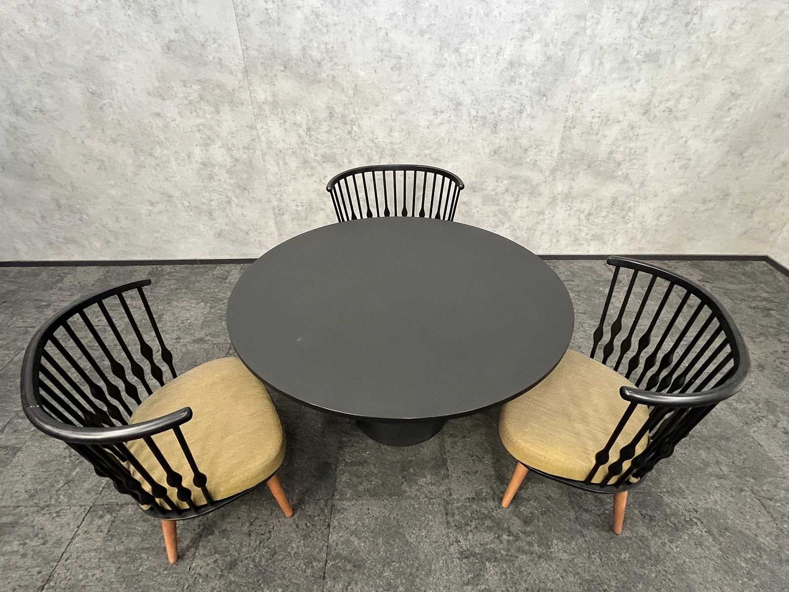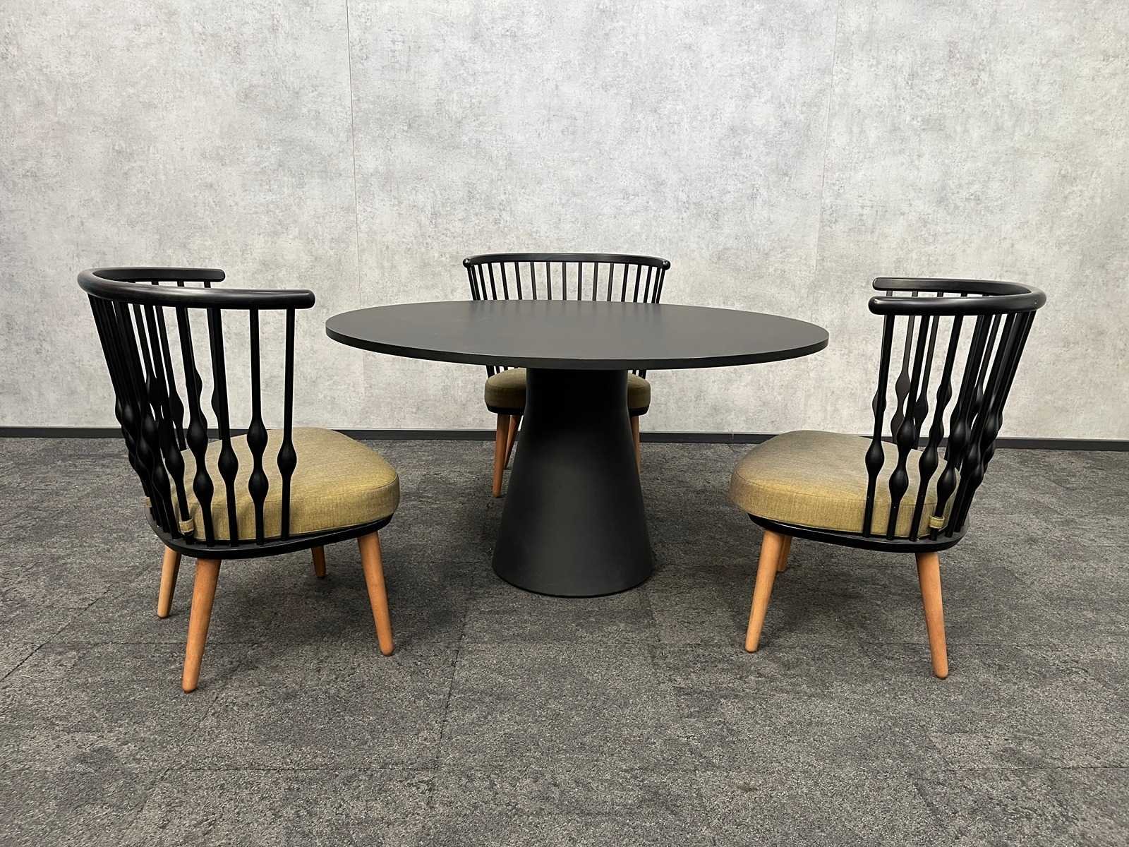 Kavel bestaande uit 1x Andreu World 'Reverse Collection' design tafel. design van Piergiorgio Cazzaniga. ----- 3x Andreu World Nub design fauteuil. Design van Patricia Urquiola. Afm. ca. hxbxd 90x80x60 cm. Merk: Andreu World Kleur: groen, zwart Breedte: 140cm Hoogte: 75cm Zithoogte: 44cm
