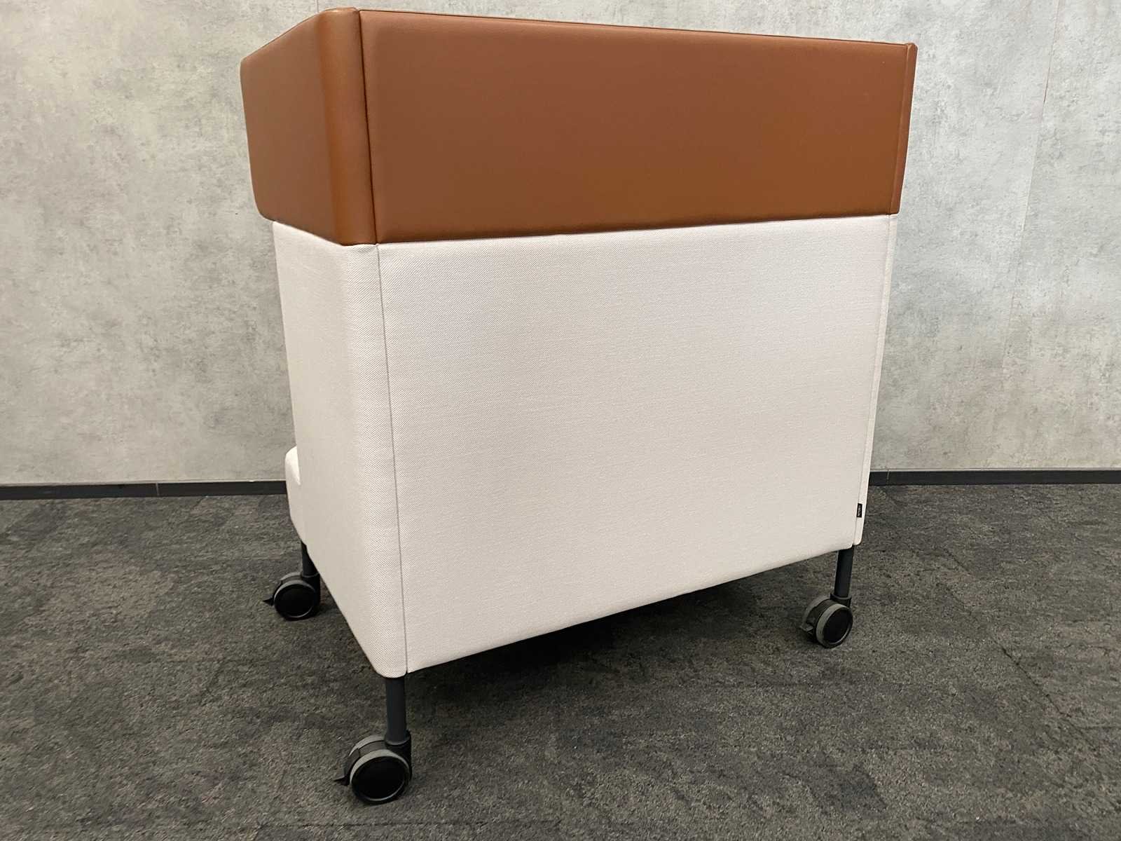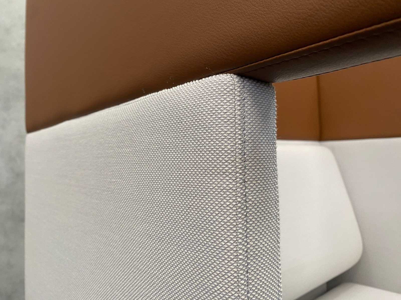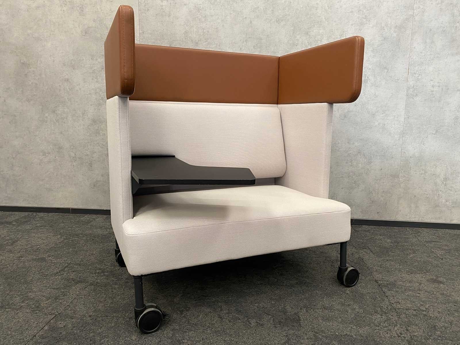 Met laptoptafel/ schrijfblad Merk: Four Design - Four Us Kleur: grijs, bruin Breedte: 110cm Hoogte: 125cm Zithoogte: 43cm Diepte: 75cm Materiaal: textiel, leder