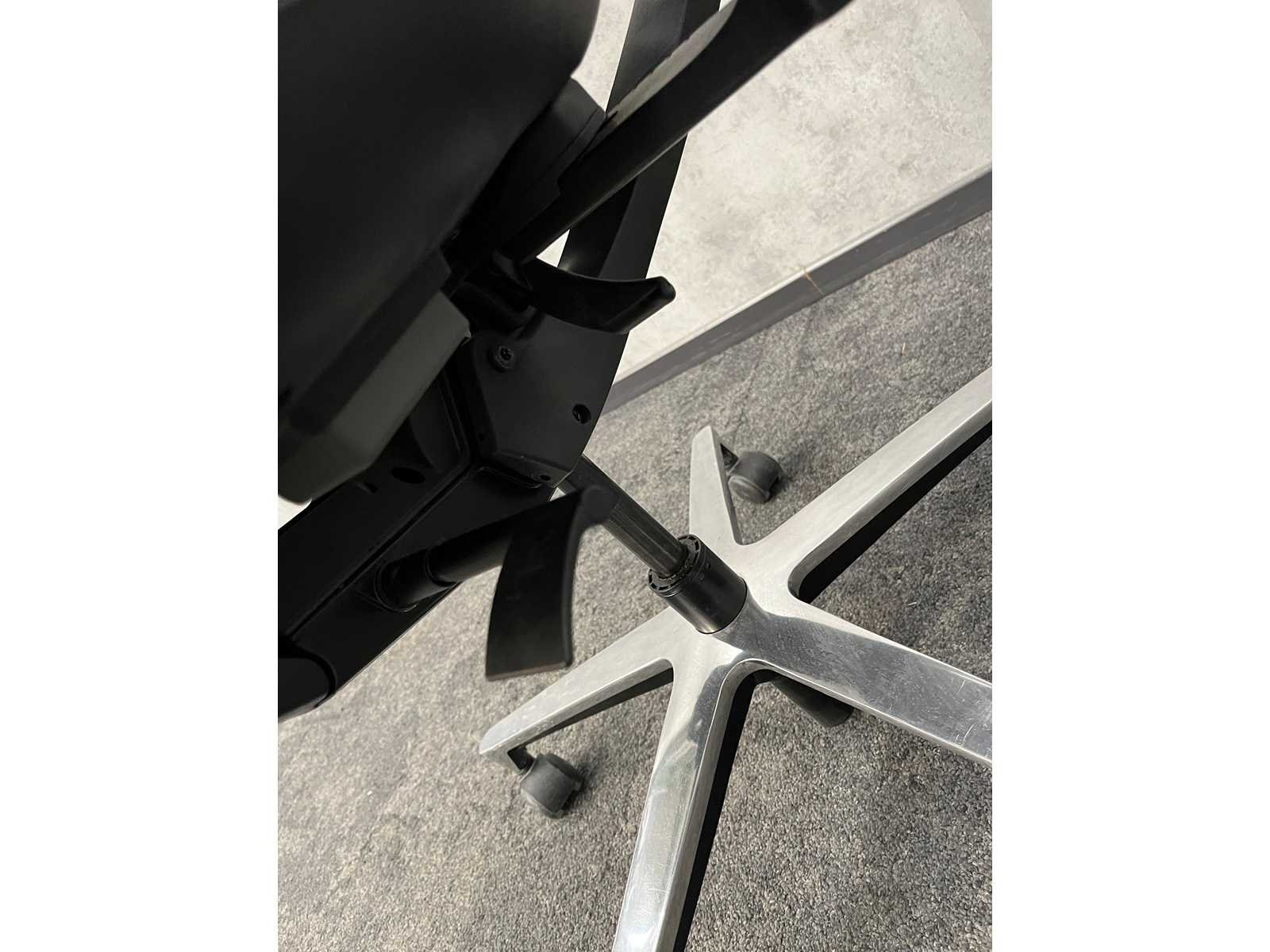 V.v. 4D verstelbare armleggers, taupe bekleding, kantelmechanisme rugleuning/ actief zitten, zithoogte en zitdiepte verstelbaar, chroom 5-teens voetenkruis. Merk: klöber Kleur: taupe, zwart, chroom