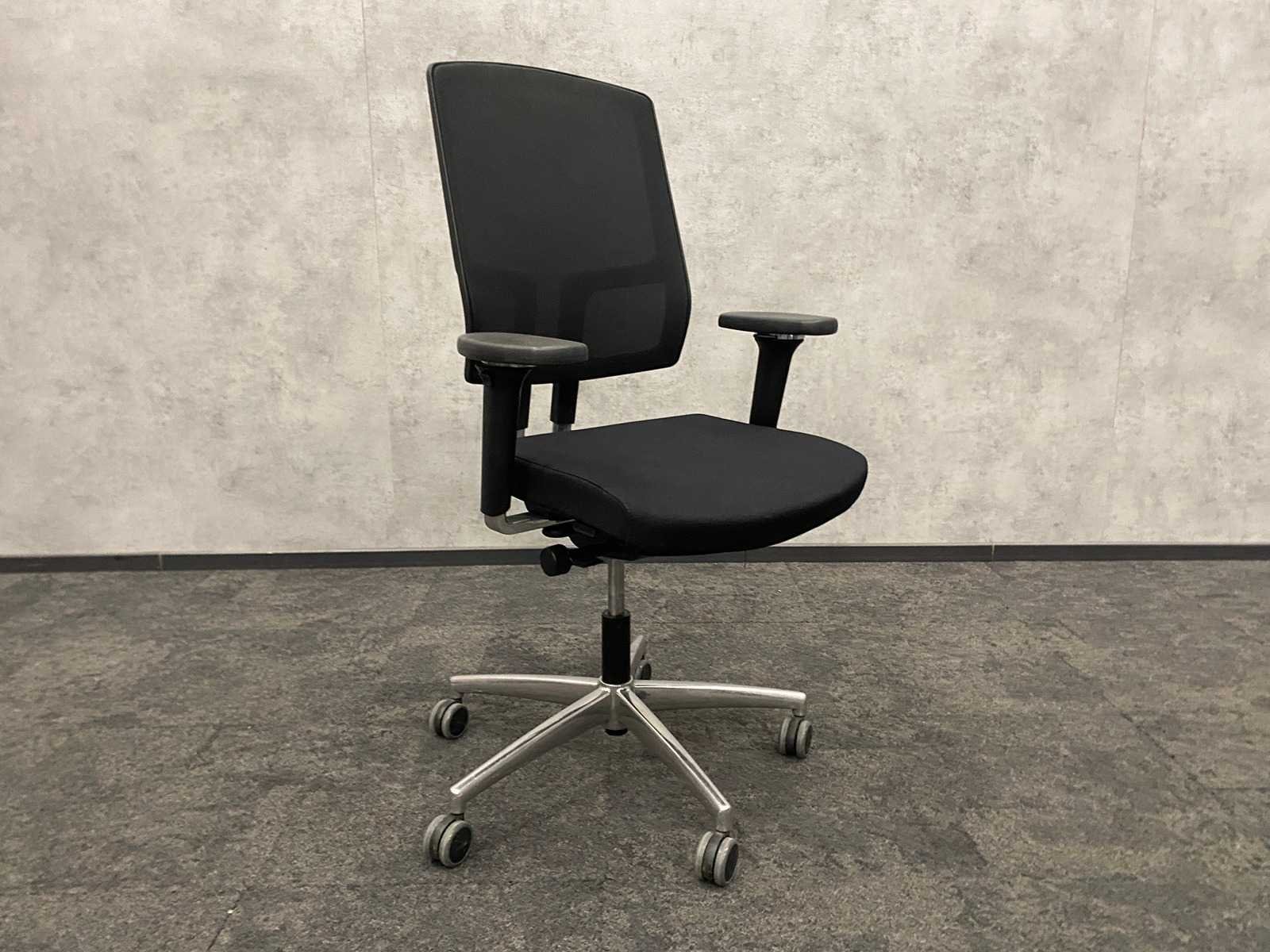 V.v. 4D verstelbare armleggers, zithoogte en zitdiepte instelbaar, actief zitten, netweave rugbekleding, chroom 5-teens voetenkruis Merk: Eurodesk Kleur: zwart, chroom