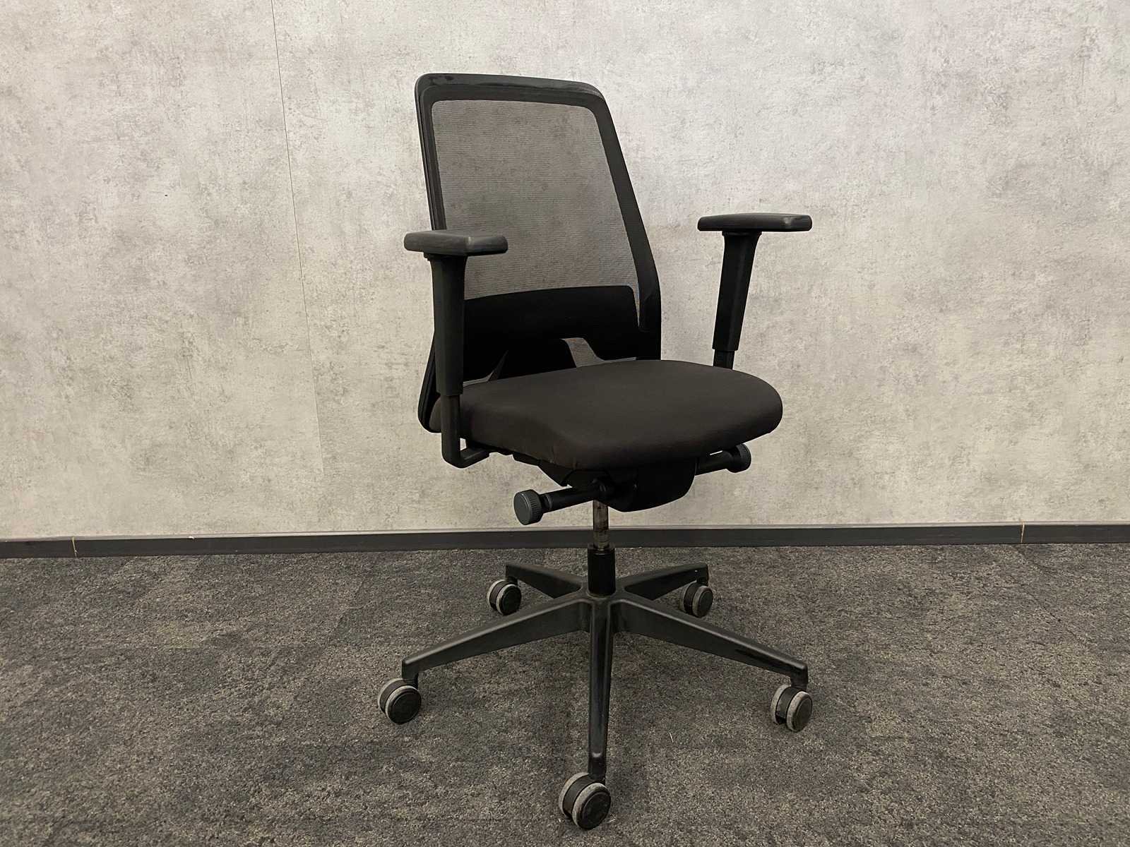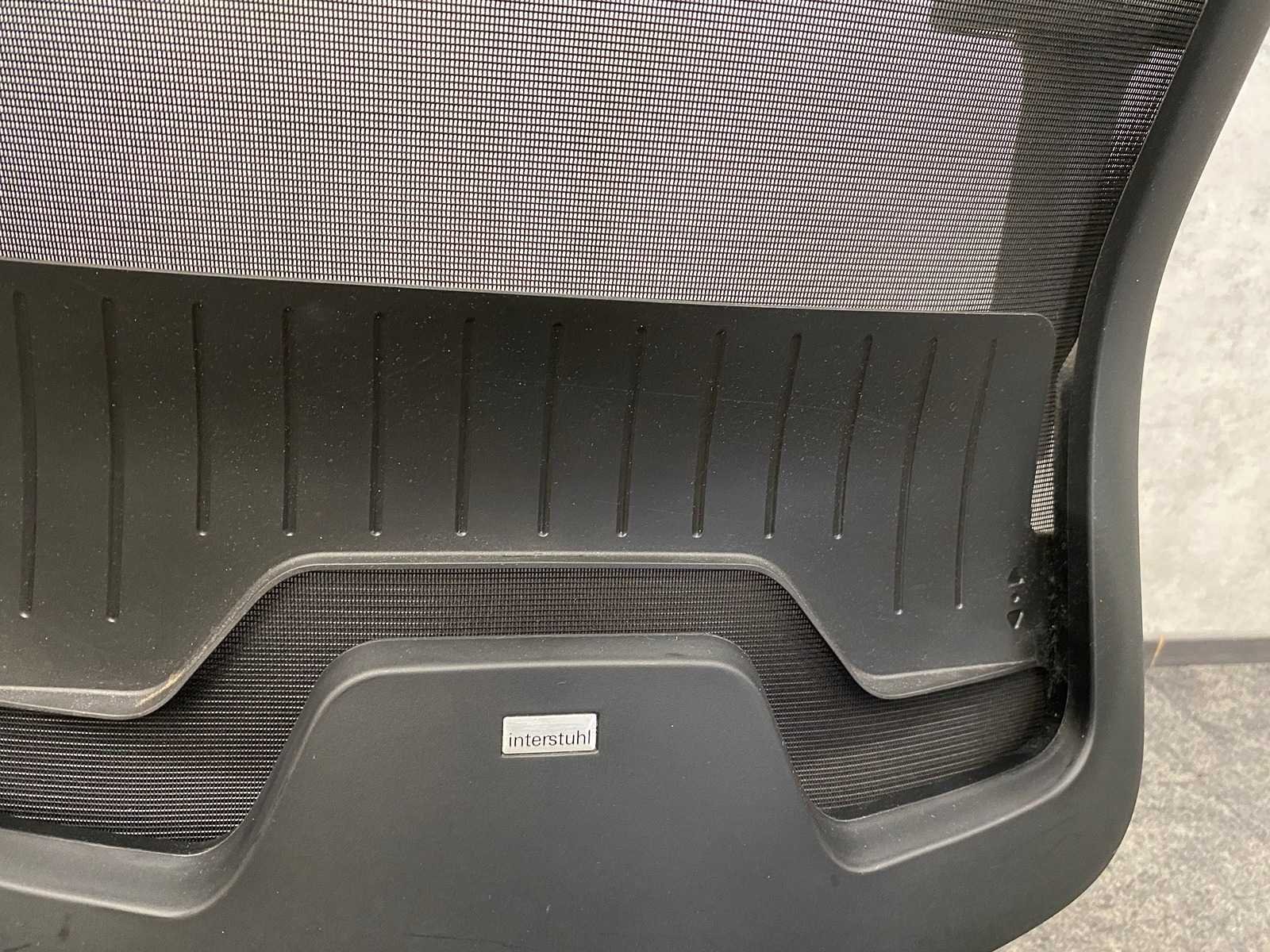 V.v. 4D verstelbare armleggers, zithoogte en zitdiepte instelbaar, actief zitten, lendensteun, netweave rugbekleding, zwart gestoffeerd zitvlak Merk: Interstuhl Kleur: zwart
