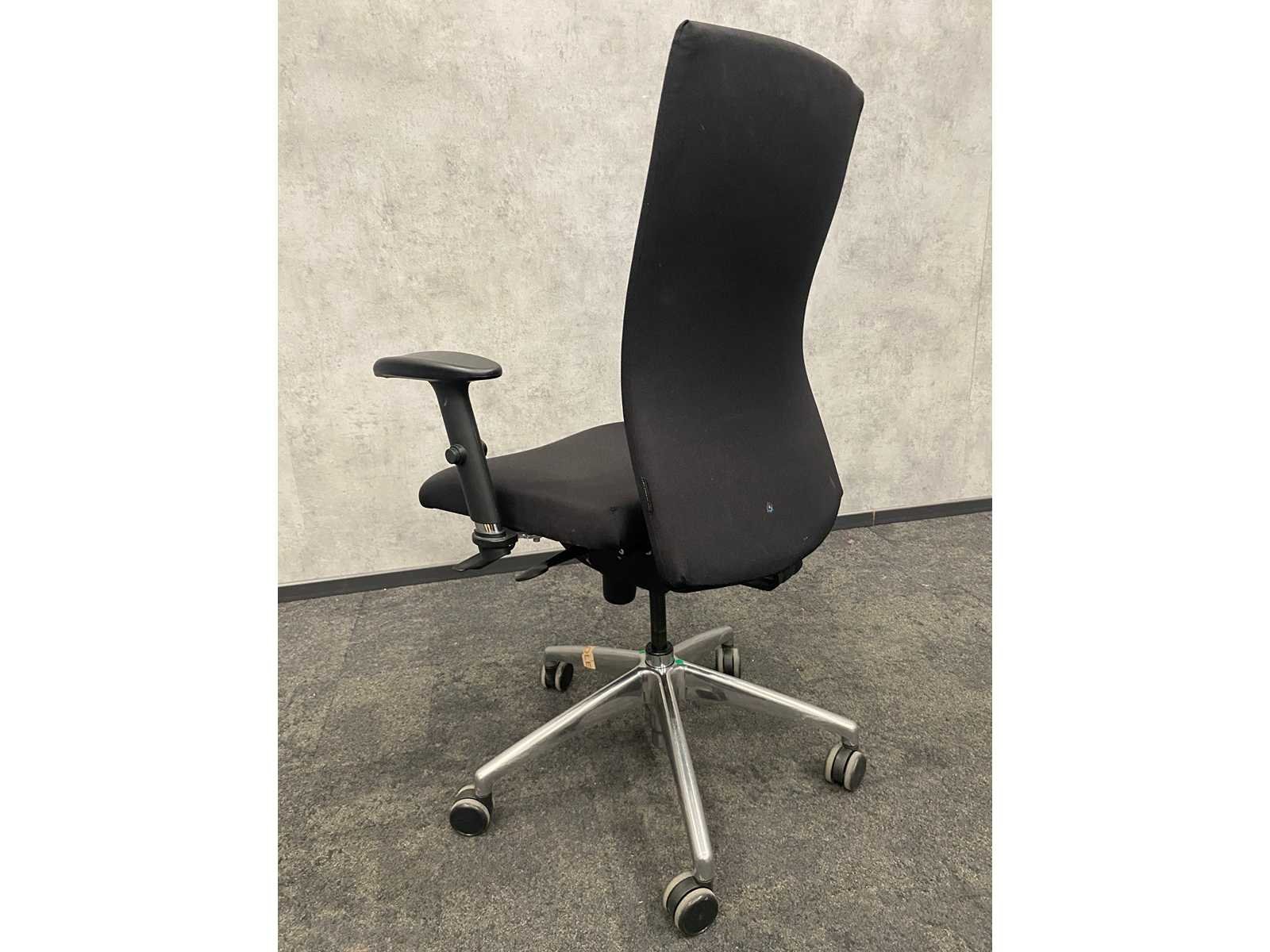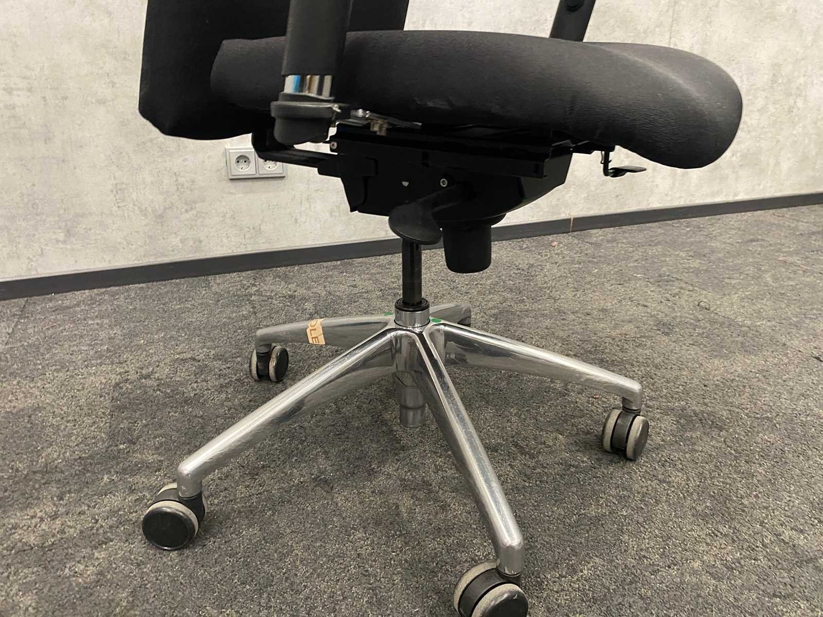 V.v. in hoogte instelbare armleggers, zithoogte en zitdiepte instelbaar, verstelbare rugleuning, zwarte stoffering, chroom 5-teens voetenkruis Merk: Euroseat