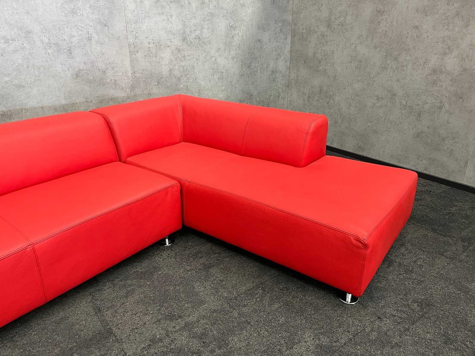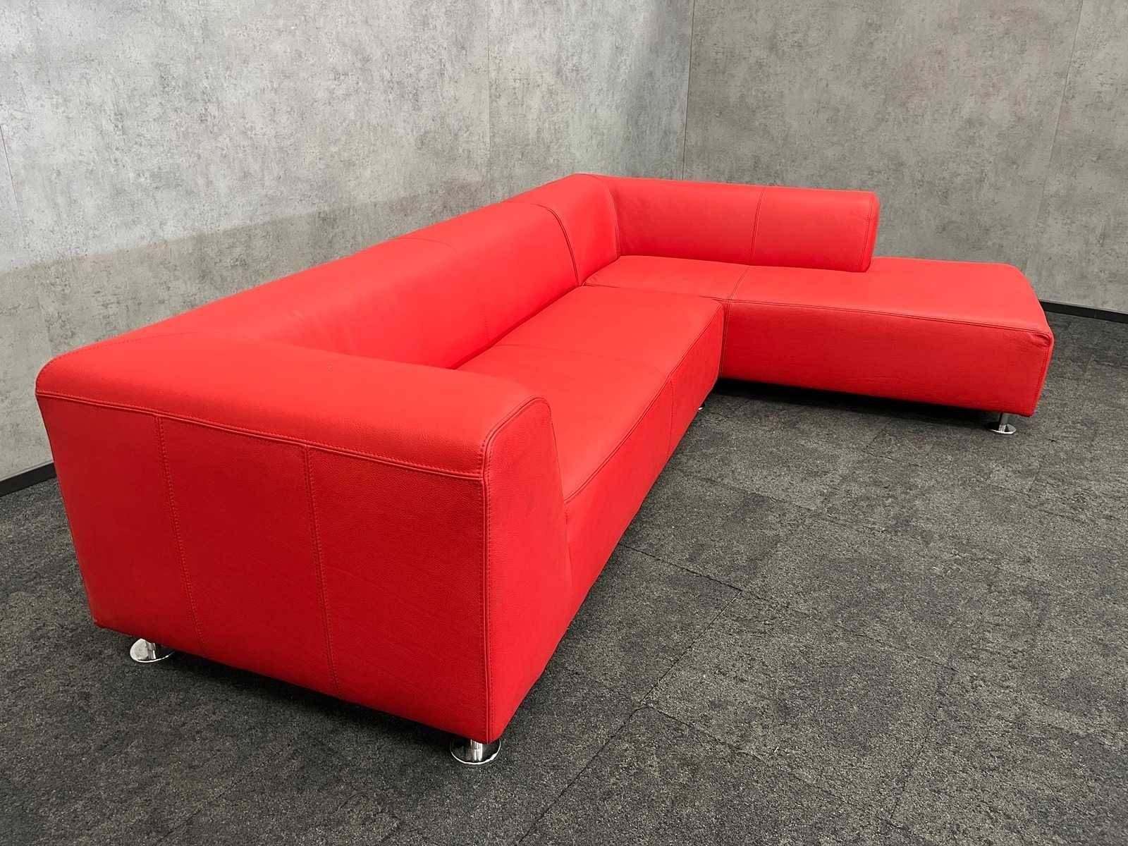 Afm. ca. hoogte 71 cm. breed 290/200 cm. diep 95 cm. Merk: Amerland Kleur: rood