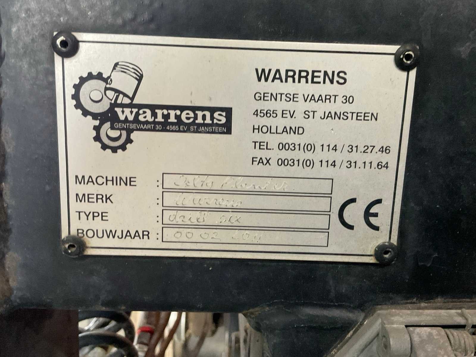 Werkbreedte ca. 1300 mm; luchtbanden; bandenmaat 7.50-20; 5 elementen met loopwiel; trechter afm. ca. 1950x1400 mm; v.v. driepunt aansluiting Merk: Warrens Type: Delta Plater Drill Six Bouwjaar: 2011