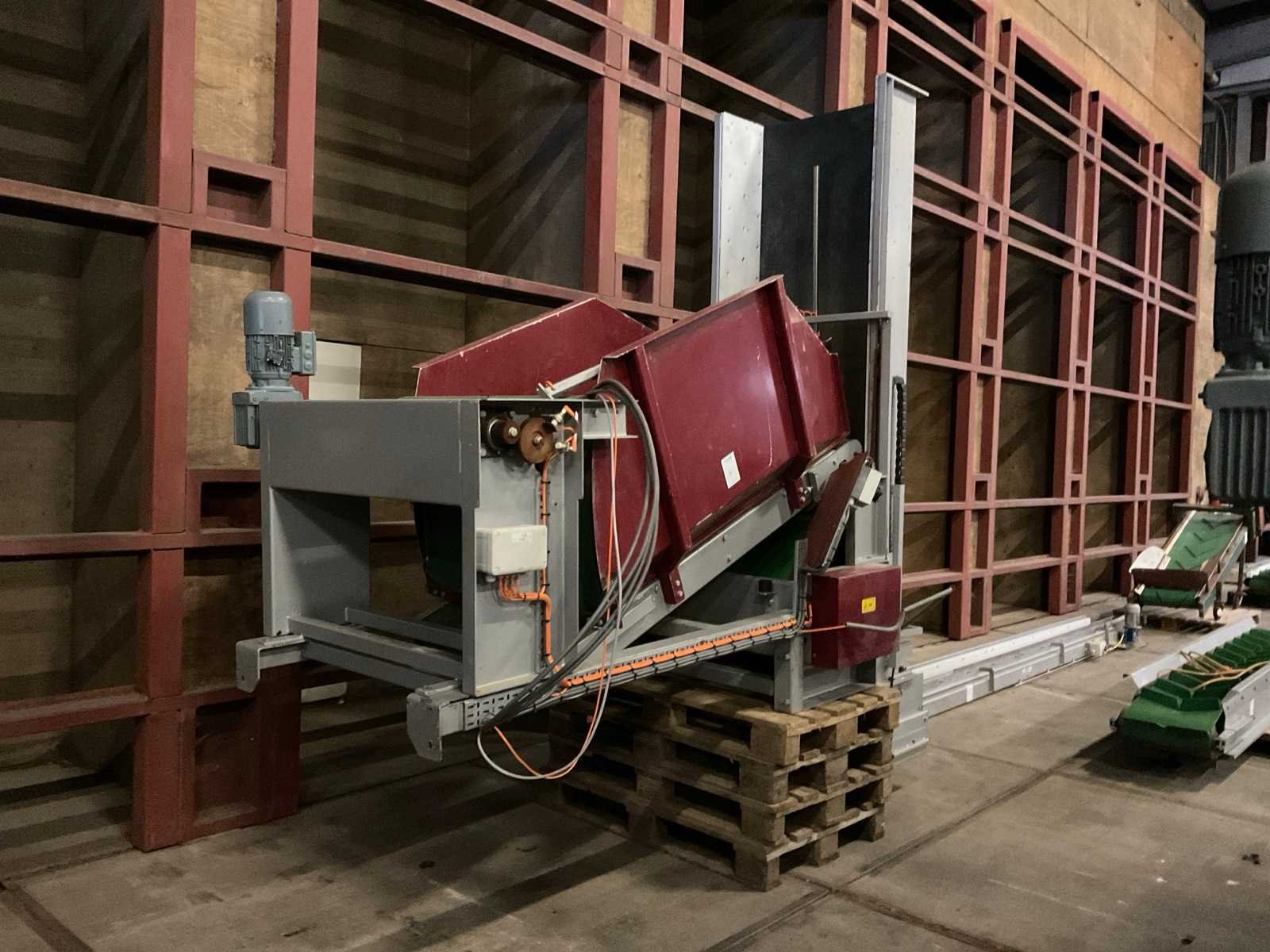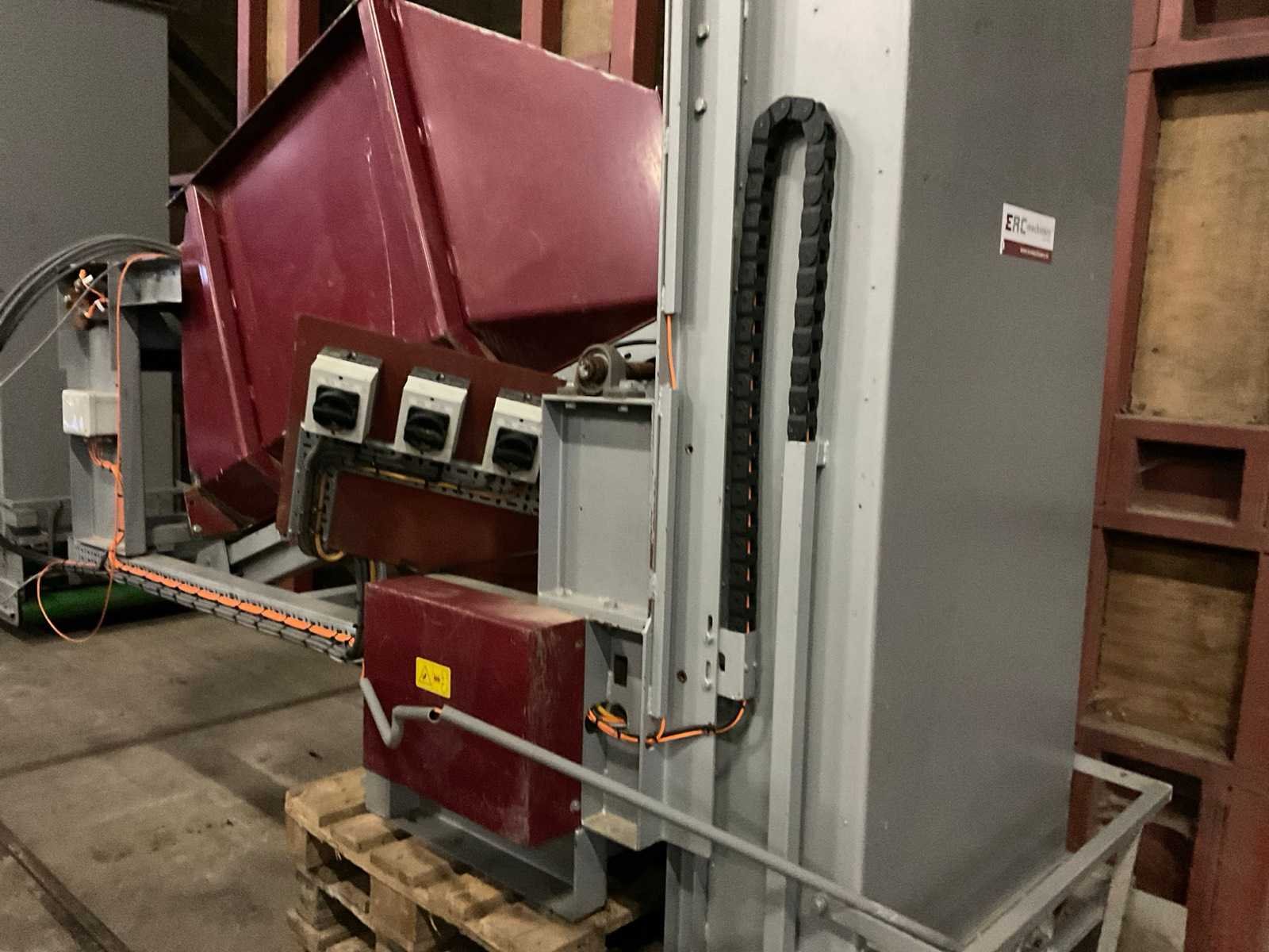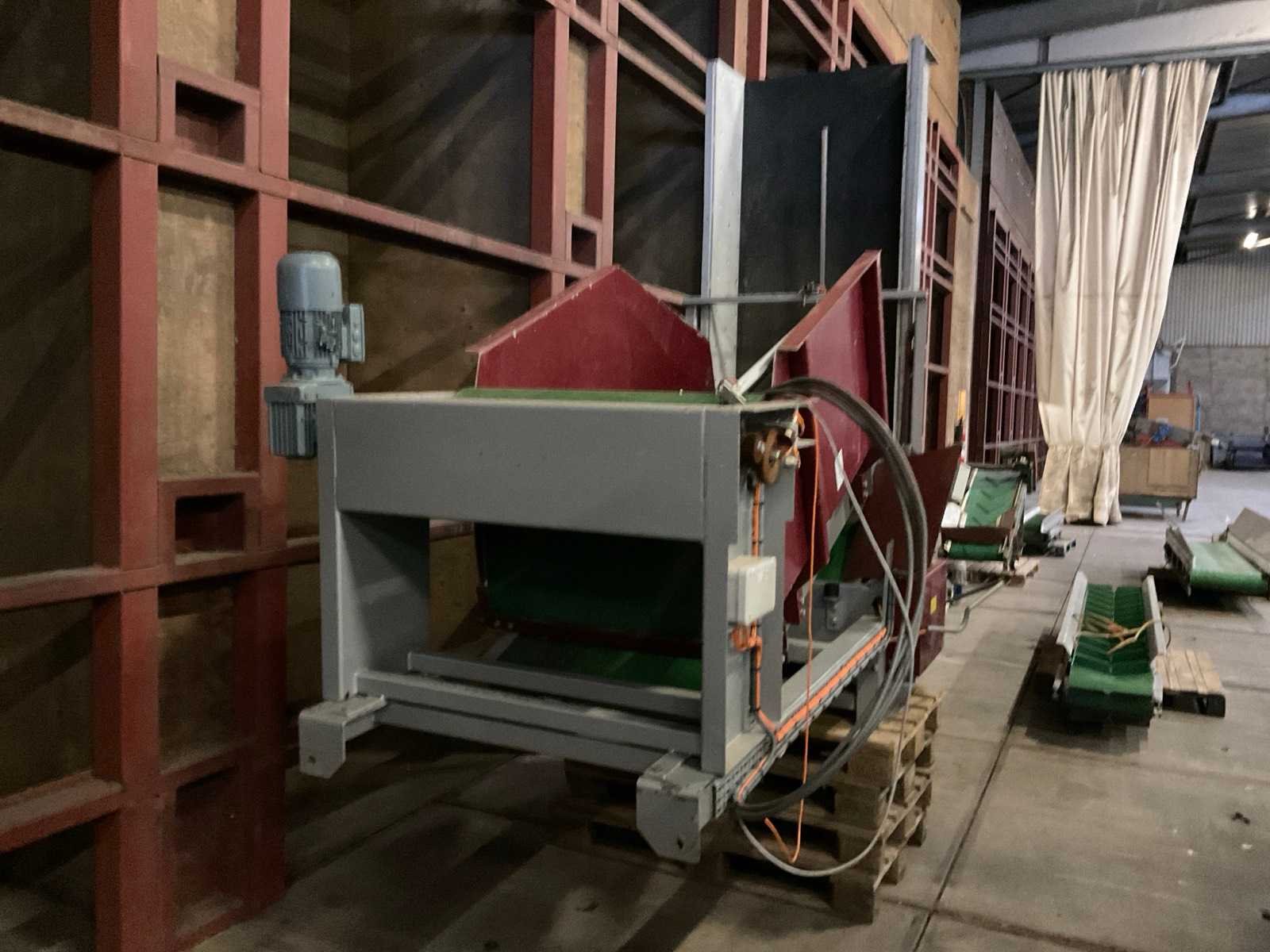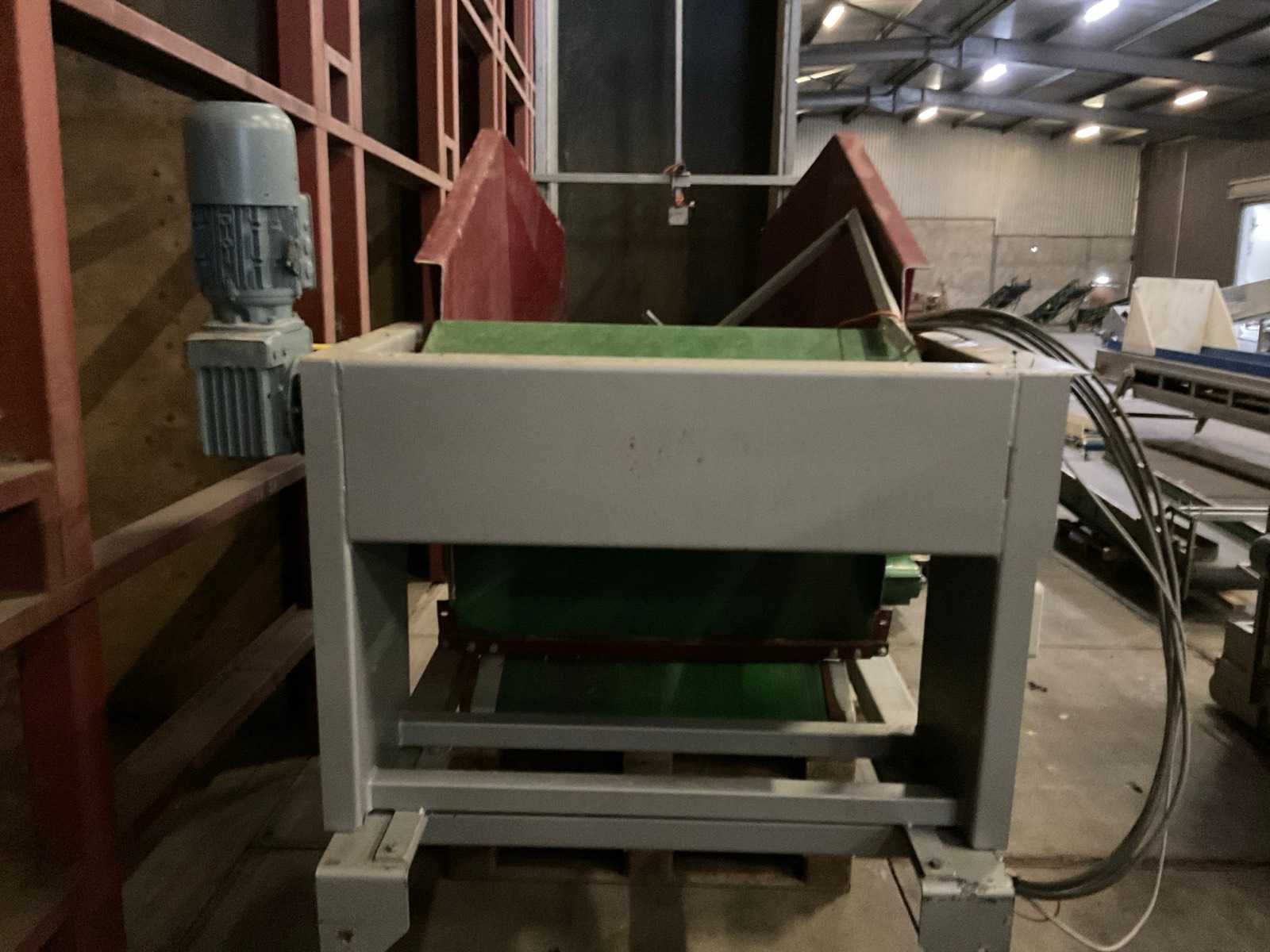 Band afm. ca. 2500x900 mm Merk: ERC Machinery Bouwjaar: 2011 Aansluiting: 400V Kratafmeting l: 1600mm Kratafmeting b: 900mm Transportband: true Totale afmeting L: 1500mm Totale afmeting Breedte: 3000mm Totale afmeting Hoogte: 3000mm