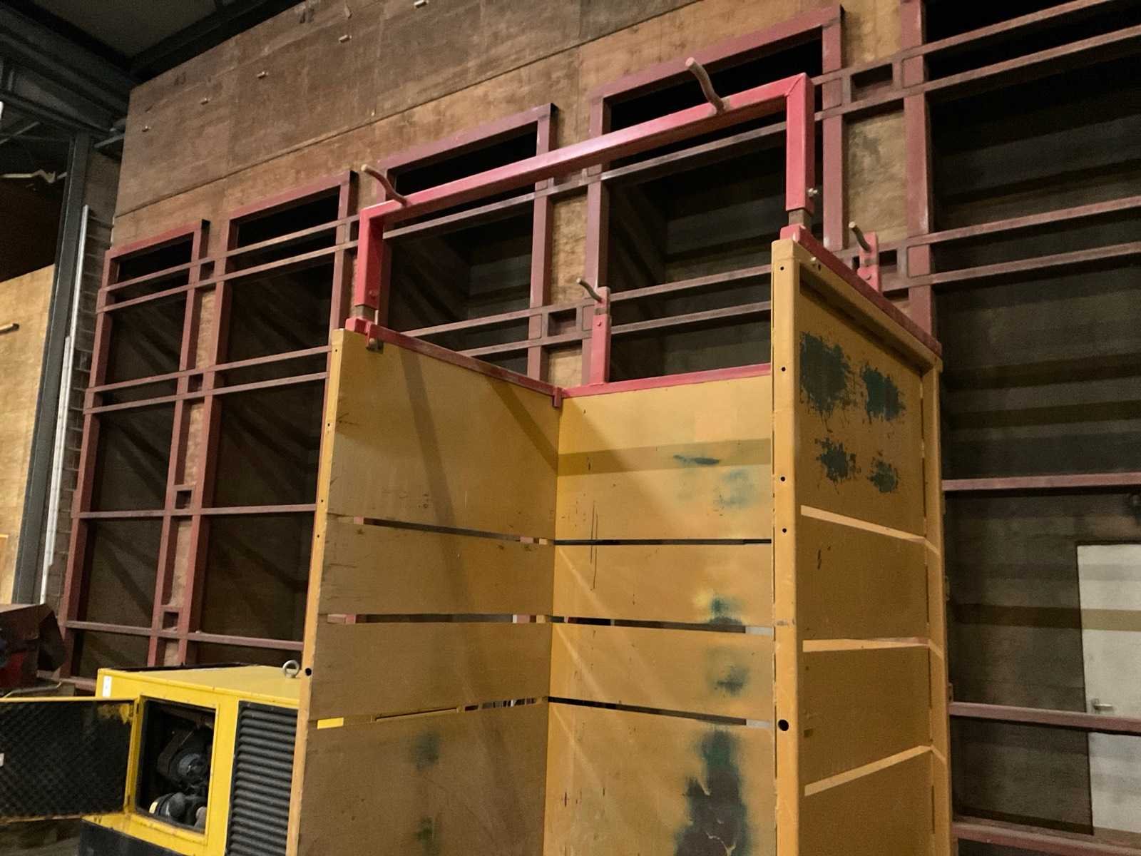 Max. invoer 1230x1000x2400 mm; v.v. weegunit; max. cap. 3000 kg Kratafmeting l: 1000mm Kratafmeting b: 1200mm Totale afmeting L: 1400mm Totale afmeting Breedte: 1300mm Totale afmeting Hoogte: 2750mm