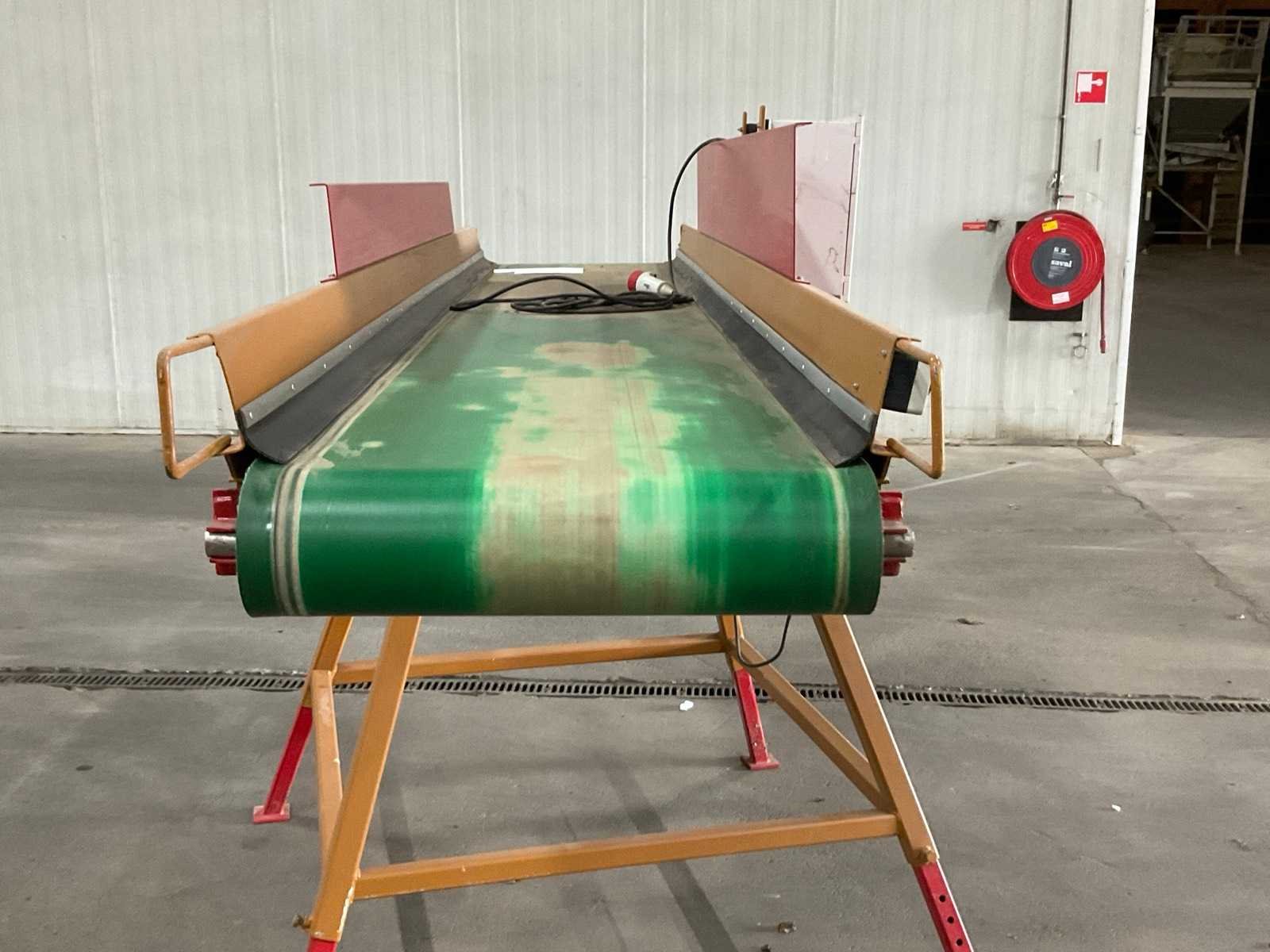 In hoogte verstelbaar; 400V; v.v. schakelkast Merk: Van Dijke Band afm. l: 3600mm Band afm. b: 680mm Eigen gewicht: 505kg