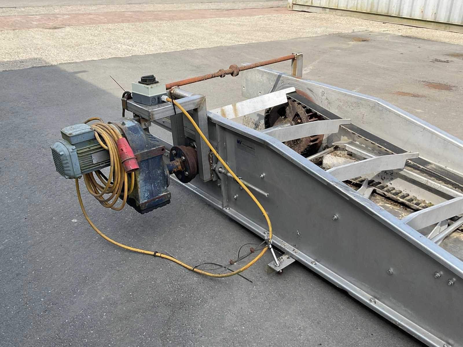 Rvs; 400V; gootbreedte ca. 700 mm Merk: Murre Techniek Totale afmeting L: 9600mm Totale afmeting Breedte: 1600mm Totale afmeting Hoogte: 800mm