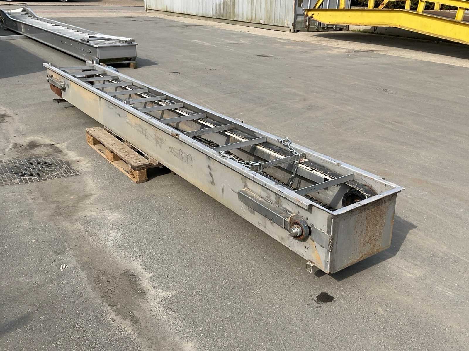 Rvs; 400V; gootbreedte ca. 450 mm Totale afmeting L: 5000mm Totale afmeting Breedte: 800mm Totale afmeting Hoogte: 380mm
