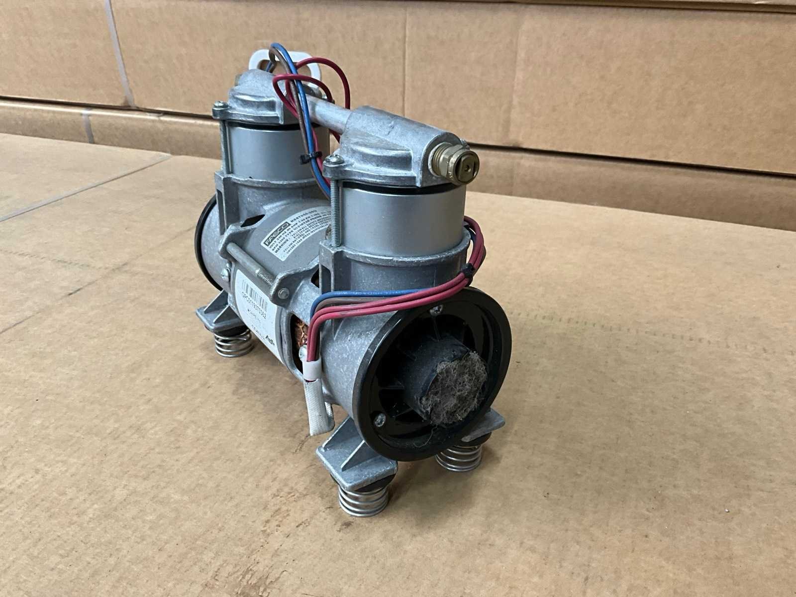 Dubbele luchtpomp van CAIRE (AirSep), type CO416-2, uitgevoerd met FASCO elektromotor. Aansluitspanning 230 V. Geschikt voor lucht- en beluchtingstoepassingen. Merk: Caire Model: CO416-2 Lengte: 25cm Breedte: 10cm Hoogte: 19cm
