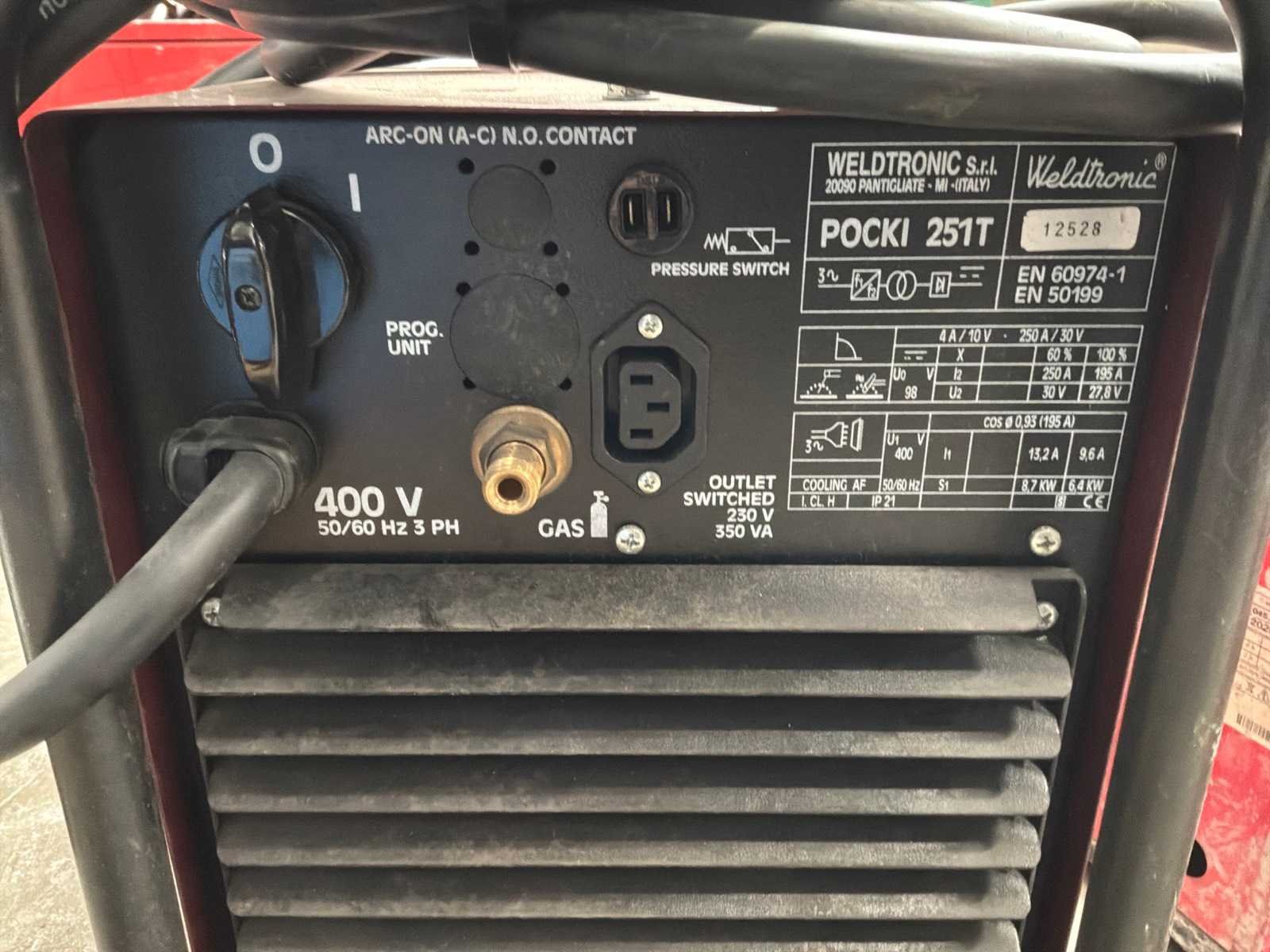Merk: Weldtronic Type: Pocki 25T Serienummer: 12528 Tig type: true Draagbaar: true Digitale uitlezing: true Aansluiting: 400V Afmeting l: 650mm Afmeting b: 270mm Afmeting h: 450mm