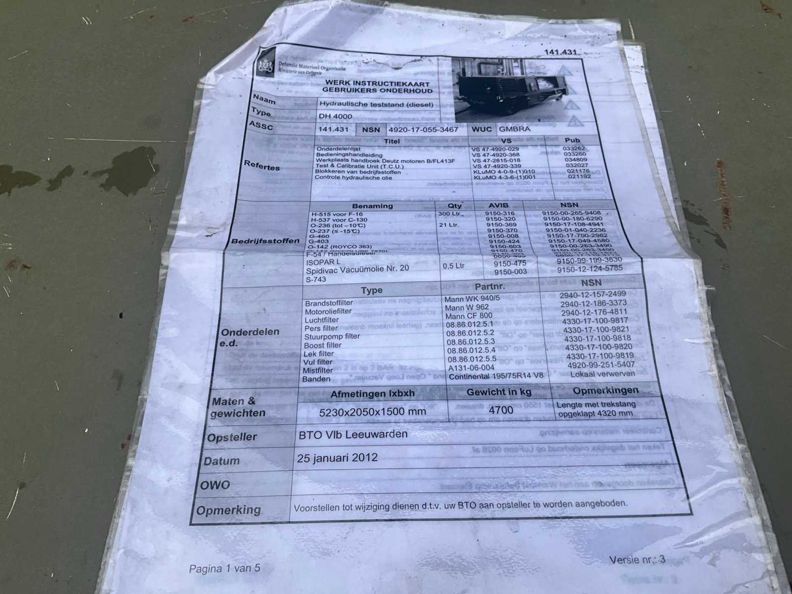 NSN: 4920-17-055-3467 Voorzien van: diesel stroomaggregaat, urenstand: 347 Lengte: 4320cm Breedte: 2050cm Hoogte: 1500cm