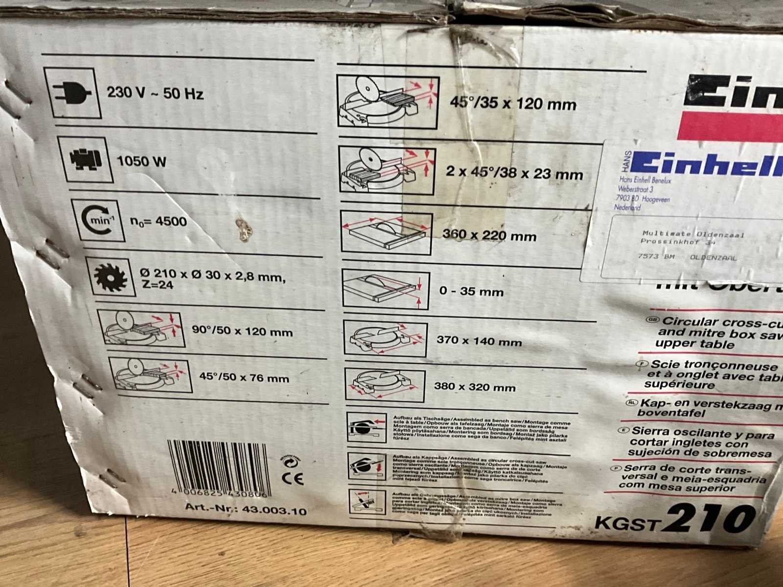Zaagblad Ø: 210mm Zaaghoogte: 35mm Verstek: true Onderliggende afkortzaag: true Motorvermogen (kW): 1kW Aansluiting: 230V