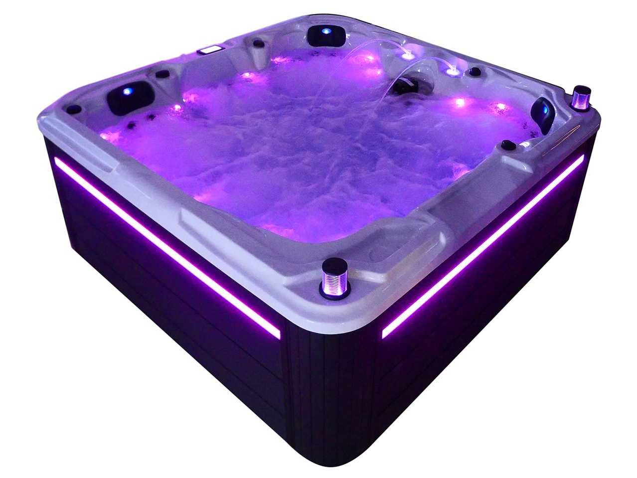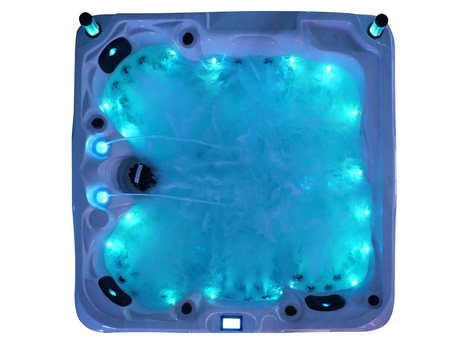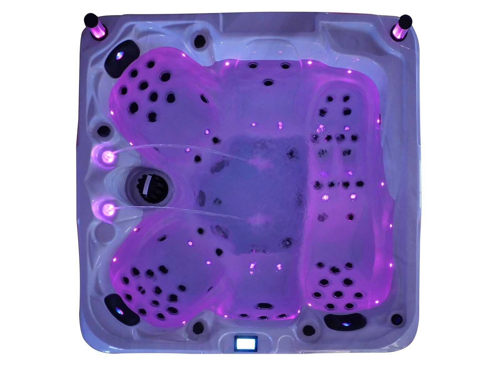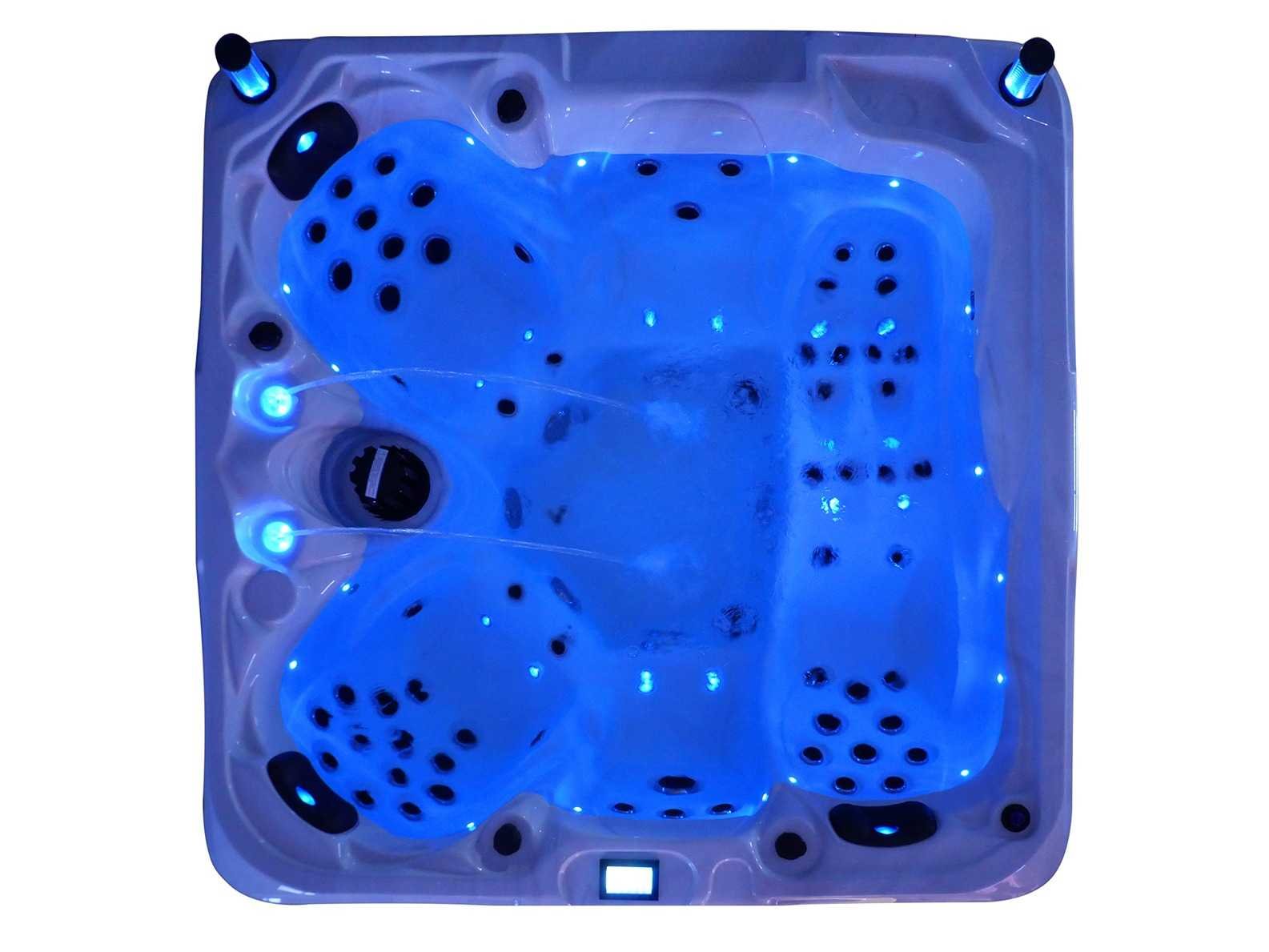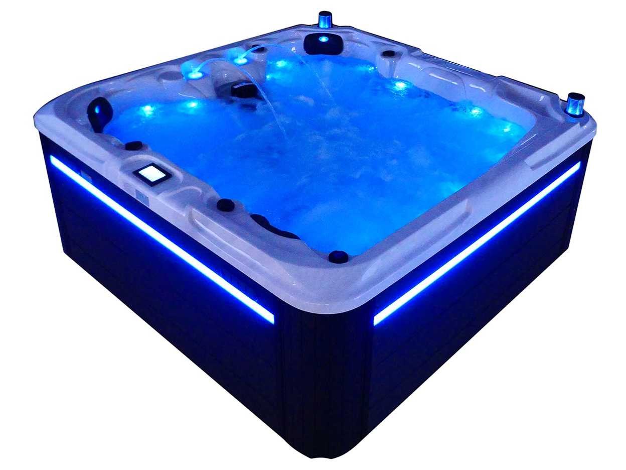 Besturing balboa (Balboa BP21 computer + nieuwste Spa touch 3 display), Balboa heater (3000 watt), Balboa wifi (voor besturing op afstand met de telefoon/tablet), Balboa bluetooth audio, 2 popup speakers met ledverlichting, Subwoofer, kunststof onderhoudsvrije ombouw met ledverlichting rondom in de zijpanelen, 4 massage pompen (1* 2,5pk, 2* 2pk en 1* 400 watt luchtpomp), 24h circulatiepomp (0,5pk), 4 zitplaatsen en 1 ligplaats (3 plaatsen voorzien van hoofdkussen), dikke (zwarte) afdek cover inclusief, totaal 83 rvs stainless steel RVS jets waarvan 14 luchtjets met ledverlichting (diverse maten en verschillende hydro stralen), extra nek en voet massage jets, vorst beveiliging, ozone desinfectie systeem 50mg/h, diverse leds (36 stuks) verlichting langs de waterrand, aroma feeder, 2x pop-up water fontein met ledverlichting, 1x grote waterval met ledverlichting, diverse regelknoppen om de de kracht en de verdeling naar de jets te regelen, 1x oppervlakte en reinigingsfilter, kuip extra dikke foam isolatie (minimaal 45mm) + extra isolatie aan de buitenwanden met folie + 5mm dikke isolatie op de PVC gesloten bdem, waterafvoer, inclusief trapje, Aluminium frame (zeer sterk en roest bestendig) deze spa zit vol met alle mogelijk bestelbare opties, dit betreft een nieuw product in verpakking. De spa kan zowel op 220volt als 380volt worden aangesloten (27a of 41a). Merk: Mawialux Model: Mia Vermogen: 8500W Spanning: 220-380V Filters: 1 Verlichting: diverse leds met kleurentherapie (7 kleuren) op waterniveau Inhoud: 1500l Pompen: 5 Jets: 83 Aantal personen: 5 Kleur: Binnenkuip keuze uit 3 kleuren (H03 zwart, of H06 wit of H12 grijs) met donker zwarte ombouw (kleurkeuze graag doorgeven per email op info@mawialux.nl) Gewicht: 420kg Lengte: 220cm Breedte: 220cm Hoogte: 95cm Materiaal: USA Aristech acryl + Aluminium frame + kunststof ombouw + PVC gesloten bodem