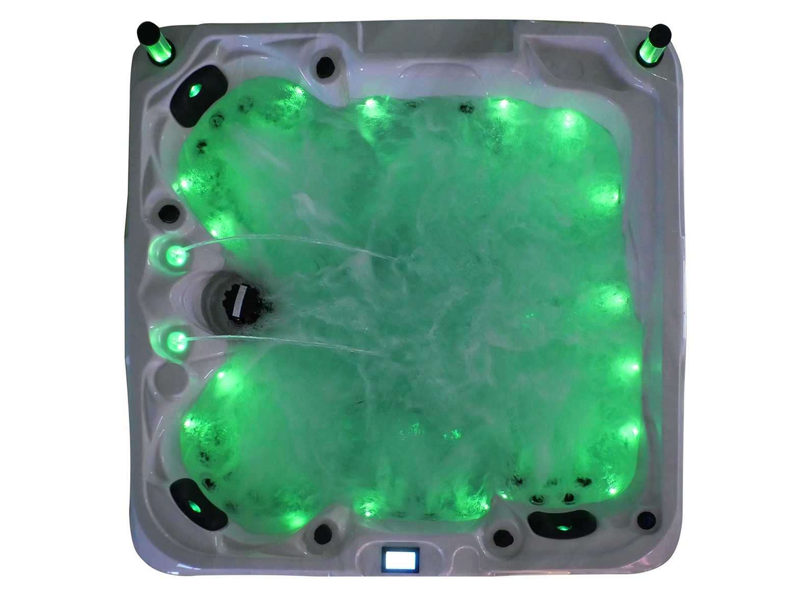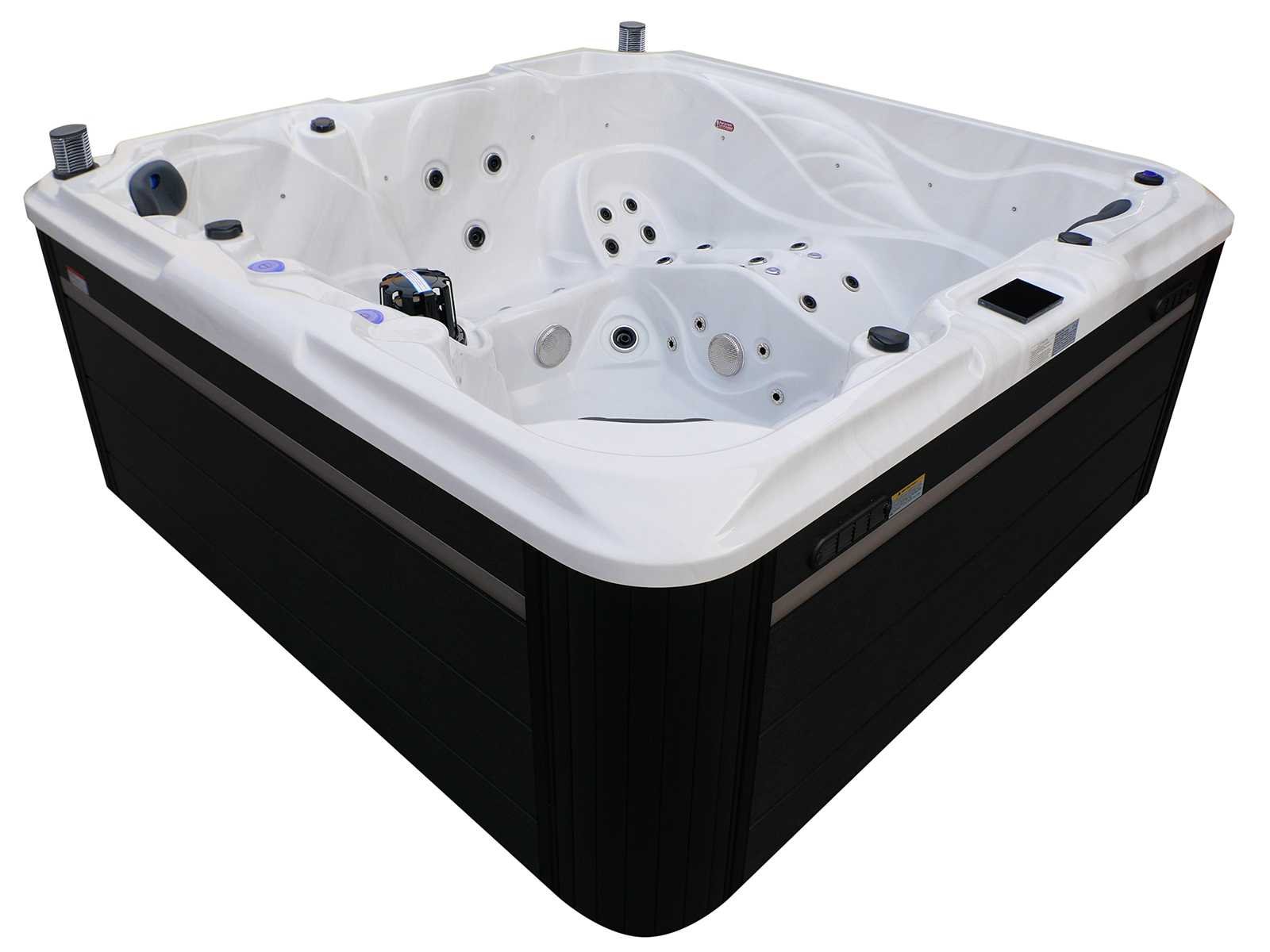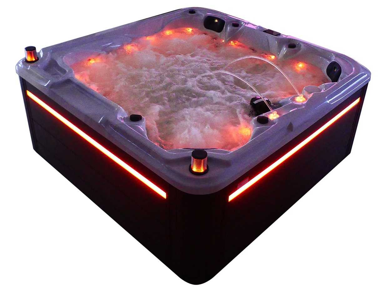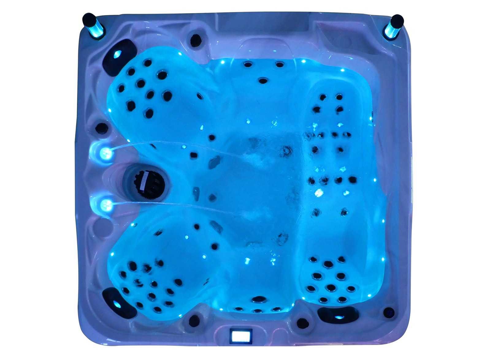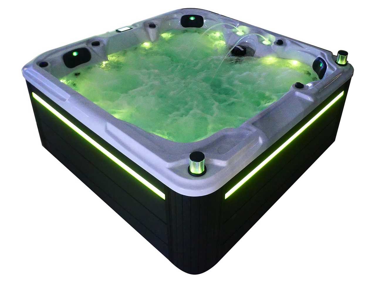Besturing balboa (Balboa BP21 computer + nieuwste Spa touch 3 display), Balboa heater (3000 watt), Balboa wifi (voor besturing op afstand met de telefoon/tablet), Balboa bluetooth audio, 2 popup speakers met ledverlichting, Subwoofer, kunststof onderhoudsvrije ombouw met ledverlichting rondom in de zijpanelen, 4 massage pompen (1* 2,5pk, 2* 2pk en 1* 400 watt luchtpomp), 24h circulatiepomp (0,5pk), 4 zitplaatsen en 1 ligplaats (3 plaatsen voorzien van hoofdkussen), dikke (zwarte) afdek cover inclusief, totaal 83 rvs stainless steel RVS jets waarvan 14 luchtjets met ledverlichting (diverse maten en verschillende hydro stralen), extra nek en voet massage jets, vorst beveiliging, ozone desinfectie systeem 50mg/h, diverse leds (36 stuks) verlichting langs de waterrand, aroma feeder, 2x pop-up water fontein met ledverlichting, 1x grote waterval met ledverlichting, diverse regelknoppen om de de kracht en de verdeling naar de jets te regelen, 1x oppervlakte en reinigingsfilter, kuip extra dikke foam isolatie (minimaal 45mm) + extra isolatie aan de buitenwanden met folie + 5mm dikke isolatie op de PVC gesloten bdem, waterafvoer, inclusief trapje, Aluminium frame (zeer sterk en roest bestendig) deze spa zit vol met alle mogelijk bestelbare opties, dit betreft een nieuw product in verpakking. De spa kan zowel op 220volt als 380volt worden aangesloten (27a of 41a). Merk: Mawialux Model: Mia Vermogen: 8500W Spanning: 220-380V Filters: 1 Verlichting: diverse leds met kleurentherapie (7 kleuren) op waterniveau Inhoud: 1500l Pompen: 5 Jets: 83 Aantal personen: 5 Kleur: Binnenkuip keuze uit 3 kleuren (H03 zwart, of H06 wit of H12 grijs) met donker zwarte ombouw (kleurkeuze graag doorgeven per email op info@mawialux.nl) Gewicht: 420kg Lengte: 220cm Breedte: 220cm Hoogte: 95cm Materiaal: USA Aristech acryl + Aluminium frame + kunststof ombouw + PVC gesloten bodem