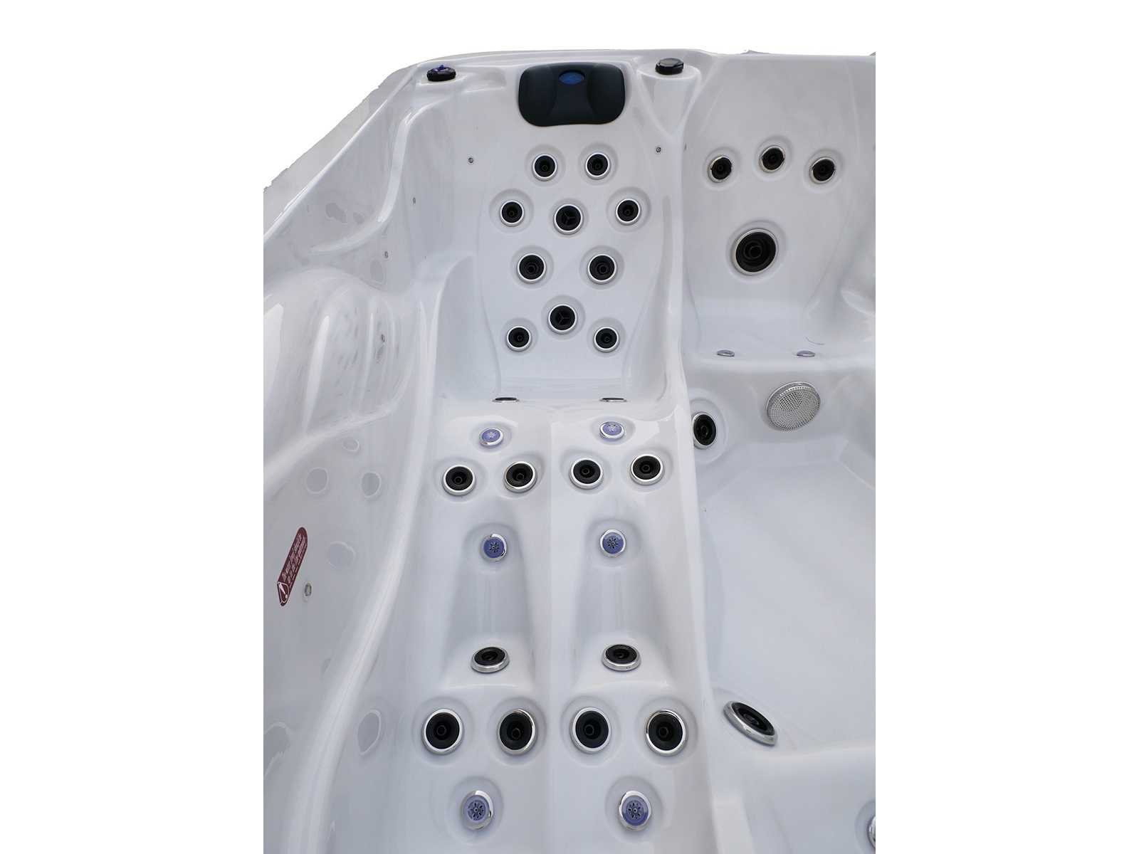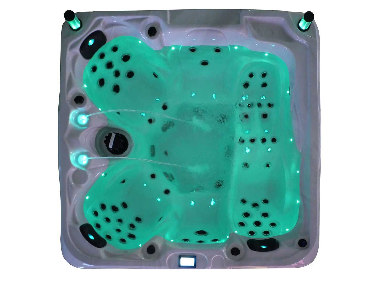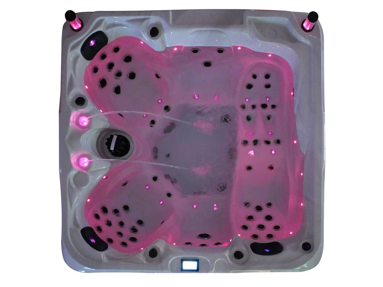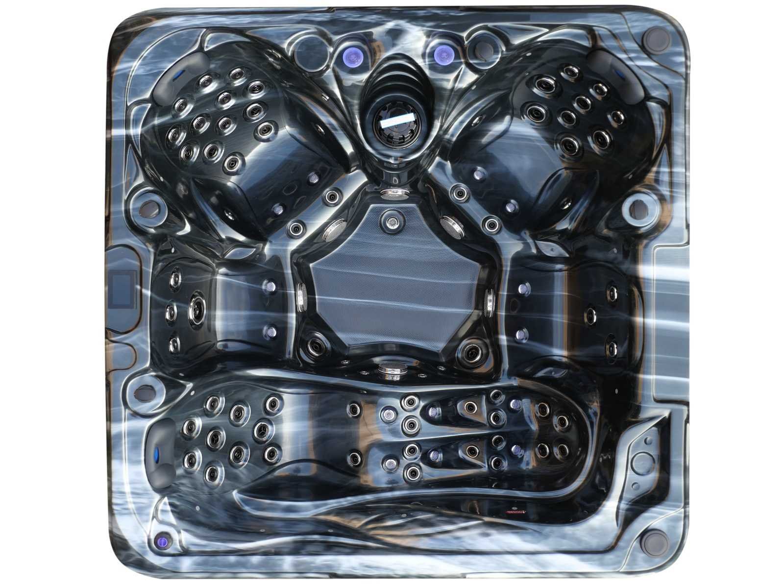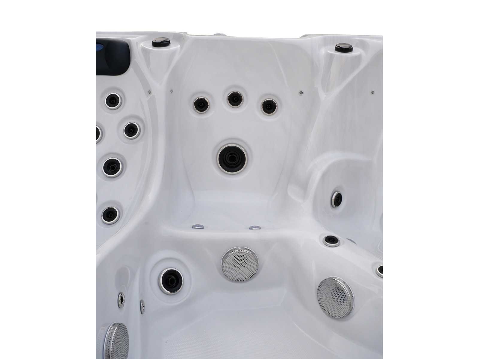 Besturing balboa (Balboa BP21 computer + nieuwste Spa touch 3 display), Balboa heater (3000 watt), Balboa wifi (voor besturing op afstand met de telefoon/tablet), Balboa bluetooth audio, 2 popup speakers met ledverlichting, Subwoofer, kunststof onderhoudsvrije ombouw met ledverlichting rondom in de zijpanelen, 4 massage pompen (1* 2,5pk, 2* 2pk en 1* 400 watt luchtpomp), 24h circulatiepomp (0,5pk), 4 zitplaatsen en 1 ligplaats (3 plaatsen voorzien van hoofdkussen), dikke (zwarte) afdek cover inclusief, totaal 83 rvs stainless steel RVS jets waarvan 14 luchtjets met ledverlichting (diverse maten en verschillende hydro stralen), extra nek en voet massage jets, vorst beveiliging, ozone desinfectie systeem 50mg/h, diverse leds (36 stuks) verlichting langs de waterrand, aroma feeder, 2x pop-up water fontein met ledverlichting, 1x grote waterval met ledverlichting, diverse regelknoppen om de de kracht en de verdeling naar de jets te regelen, 1x oppervlakte en reinigingsfilter, kuip extra dikke foam isolatie (minimaal 45mm) + extra isolatie aan de buitenwanden met folie + 5mm dikke isolatie op de PVC gesloten bdem, waterafvoer, inclusief trapje, Aluminium frame (zeer sterk en roest bestendig) deze spa zit vol met alle mogelijk bestelbare opties, dit betreft een nieuw product in verpakking. De spa kan zowel op 220volt als 380volt worden aangesloten (27a of 41a). Merk: Mawialux Model: Mia Vermogen: 8500W Spanning: 220-380V Filters: 1 Verlichting: diverse leds met kleurentherapie (7 kleuren) op waterniveau Inhoud: 1500l Pompen: 5 Jets: 83 Aantal personen: 5 Kleur: Binnenkuip keuze uit 3 kleuren (H03 zwart, of H06 wit of H12 grijs) met donker zwarte ombouw (kleurkeuze graag doorgeven per email op info@mawialux.nl) Gewicht: 420kg Lengte: 220cm Breedte: 220cm Hoogte: 95cm Materiaal: USA Aristech acryl + Aluminium frame + kunststof ombouw + PVC gesloten bodem