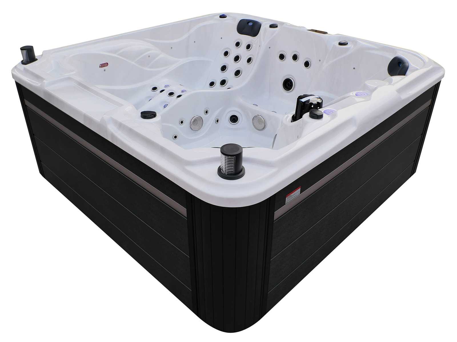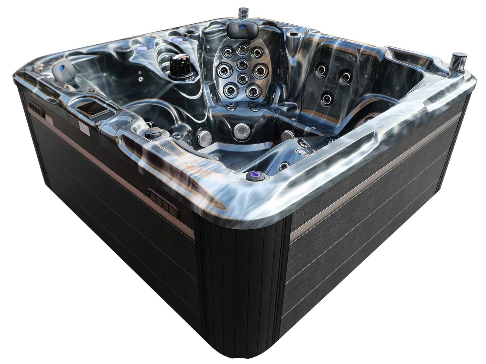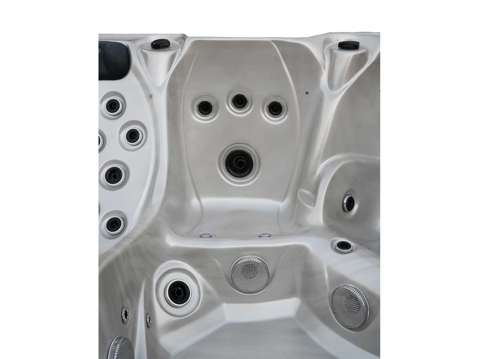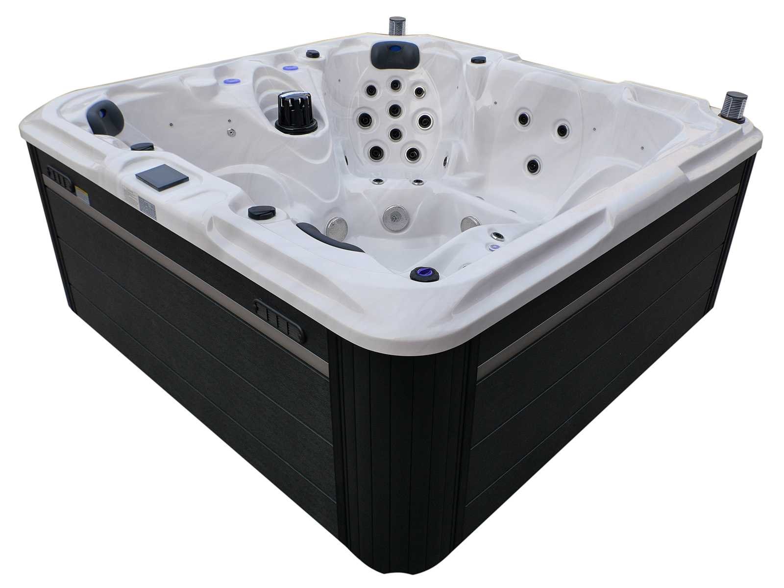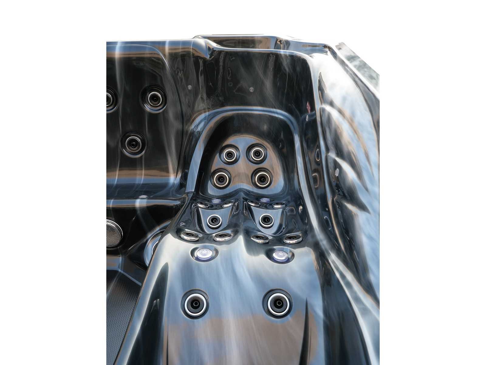Besturing balboa (Balboa BP21 computer + nieuwste Spa touch 3 display), Balboa heater (3000 watt), Balboa wifi (voor besturing op afstand met de telefoon/tablet), Balboa bluetooth audio, 2 popup speakers met ledverlichting, Subwoofer, kunststof onderhoudsvrije ombouw met ledverlichting rondom in de zijpanelen, 4 massage pompen (1* 2,5pk, 2* 2pk en 1* 400 watt luchtpomp), 24h circulatiepomp (0,5pk), 4 zitplaatsen en 1 ligplaats (3 plaatsen voorzien van hoofdkussen), dikke (zwarte) afdek cover inclusief, totaal 83 rvs stainless steel RVS jets waarvan 14 luchtjets met ledverlichting (diverse maten en verschillende hydro stralen), extra nek en voet massage jets, vorst beveiliging, ozone desinfectie systeem 50mg/h, diverse leds (36 stuks) verlichting langs de waterrand, aroma feeder, 2x pop-up water fontein met ledverlichting, 1x grote waterval met ledverlichting, diverse regelknoppen om de de kracht en de verdeling naar de jets te regelen, 1x oppervlakte en reinigingsfilter, kuip extra dikke foam isolatie (minimaal 45mm) + extra isolatie aan de buitenwanden met folie + 5mm dikke isolatie op de PVC gesloten bdem, waterafvoer, inclusief trapje, Aluminium frame (zeer sterk en roest bestendig) deze spa zit vol met alle mogelijk bestelbare opties, dit betreft een nieuw product in verpakking. De spa kan zowel op 220volt als 380volt worden aangesloten (27a of 41a). Merk: Mawialux Model: Mia Vermogen: 8500W Spanning: 220-380V Filters: 1 Verlichting: diverse leds met kleurentherapie (7 kleuren) op waterniveau Inhoud: 1500l Pompen: 5 Jets: 83 Aantal personen: 5 Kleur: Binnenkuip keuze uit 3 kleuren (H03 zwart, of H06 wit of H12 grijs) met donker zwarte ombouw (kleurkeuze graag doorgeven per email op info@mawialux.nl) Gewicht: 420kg Lengte: 220cm Breedte: 220cm Hoogte: 95cm Materiaal: USA Aristech acryl + Aluminium frame + kunststof ombouw + PVC gesloten bodem