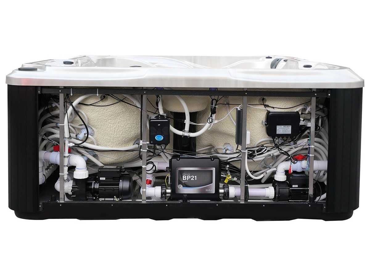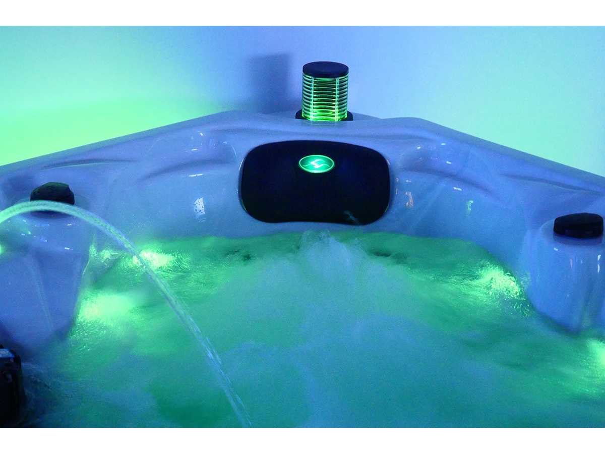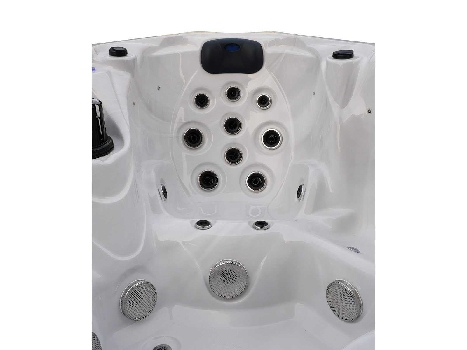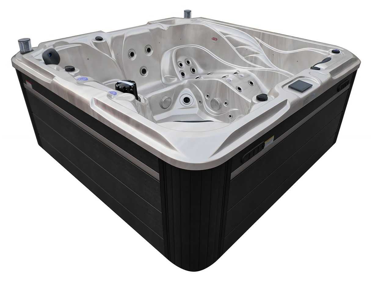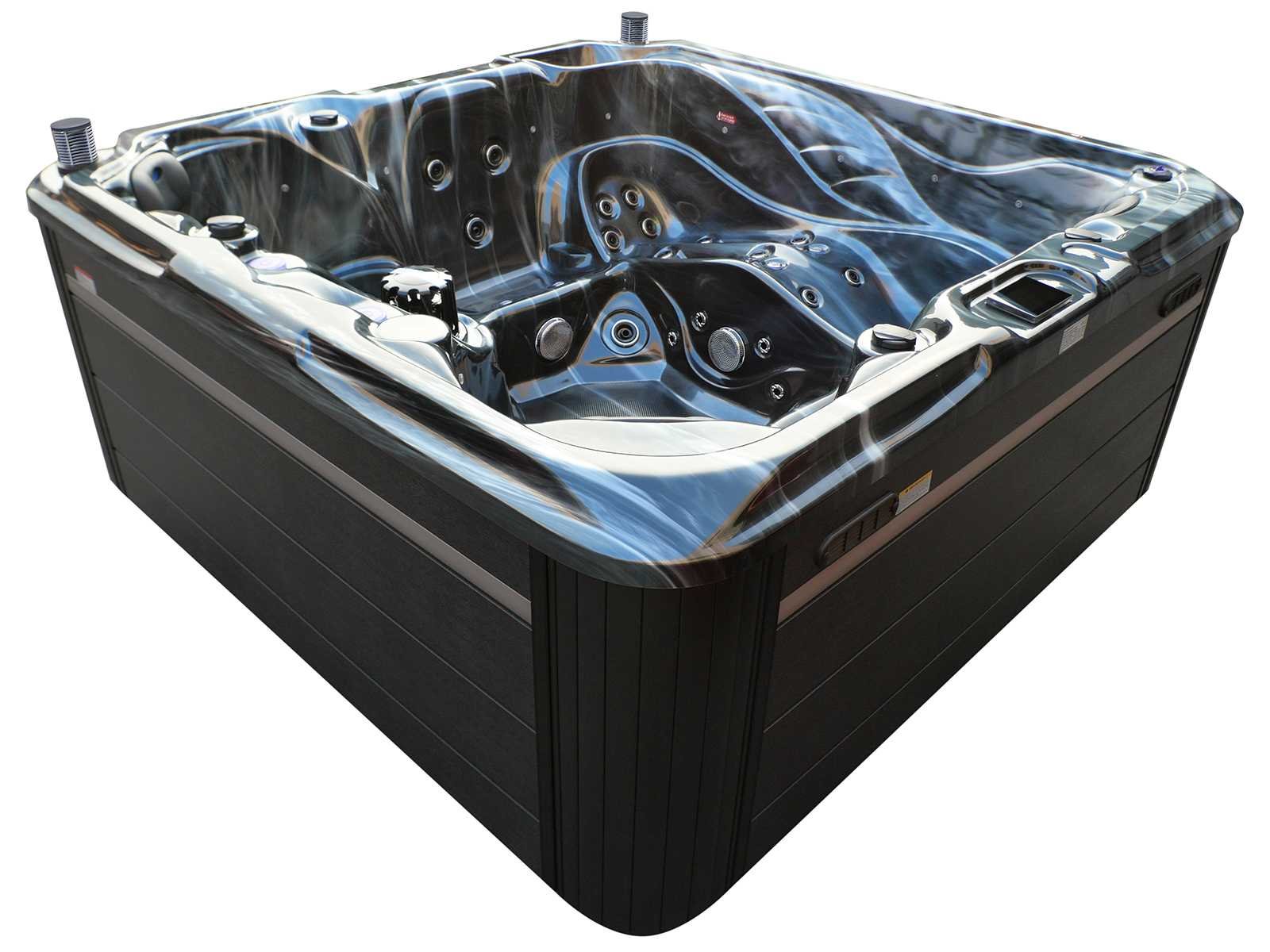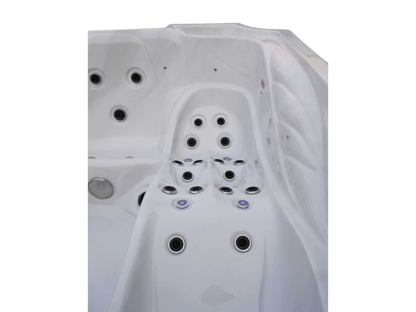 Besturing balboa (Balboa BP21 computer + nieuwste Spa touch 3 display), Balboa heater (3000 watt), Balboa wifi (voor besturing op afstand met de telefoon/tablet), Balboa bluetooth audio, 2 popup speakers met ledverlichting, Subwoofer, kunststof onderhoudsvrije ombouw met ledverlichting rondom in de zijpanelen, 4 massage pompen (1* 2,5pk, 2* 2pk en 1* 400 watt luchtpomp), 24h circulatiepomp (0,5pk), 4 zitplaatsen en 1 ligplaats (3 plaatsen voorzien van hoofdkussen), dikke (zwarte) afdek cover inclusief, totaal 83 rvs stainless steel RVS jets waarvan 14 luchtjets met ledverlichting (diverse maten en verschillende hydro stralen), extra nek en voet massage jets, vorst beveiliging, ozone desinfectie systeem 50mg/h, diverse leds (36 stuks) verlichting langs de waterrand, aroma feeder, 2x pop-up water fontein met ledverlichting, 1x grote waterval met ledverlichting, diverse regelknoppen om de de kracht en de verdeling naar de jets te regelen, 1x oppervlakte en reinigingsfilter, kuip extra dikke foam isolatie (minimaal 45mm) + extra isolatie aan de buitenwanden met folie + 5mm dikke isolatie op de PVC gesloten bdem, waterafvoer, inclusief trapje, Aluminium frame (zeer sterk en roest bestendig) deze spa zit vol met alle mogelijk bestelbare opties, dit betreft een nieuw product in verpakking. De spa kan zowel op 220volt als 380volt worden aangesloten (27a of 41a). Merk: Mawialux Model: Mia Vermogen: 8500W Spanning: 220-380V Filters: 1 Verlichting: diverse leds met kleurentherapie (7 kleuren) op waterniveau Inhoud: 1500l Pompen: 5 Jets: 83 Aantal personen: 5 Kleur: Binnenkuip keuze uit 3 kleuren (H03 zwart, of H06 wit of H12 grijs) met donker zwarte ombouw (kleurkeuze graag doorgeven per email op info@mawialux.nl) Gewicht: 420kg Lengte: 220cm Breedte: 220cm Hoogte: 95cm Materiaal: USA Aristech acryl + Aluminium frame + kunststof ombouw + PVC gesloten bodem