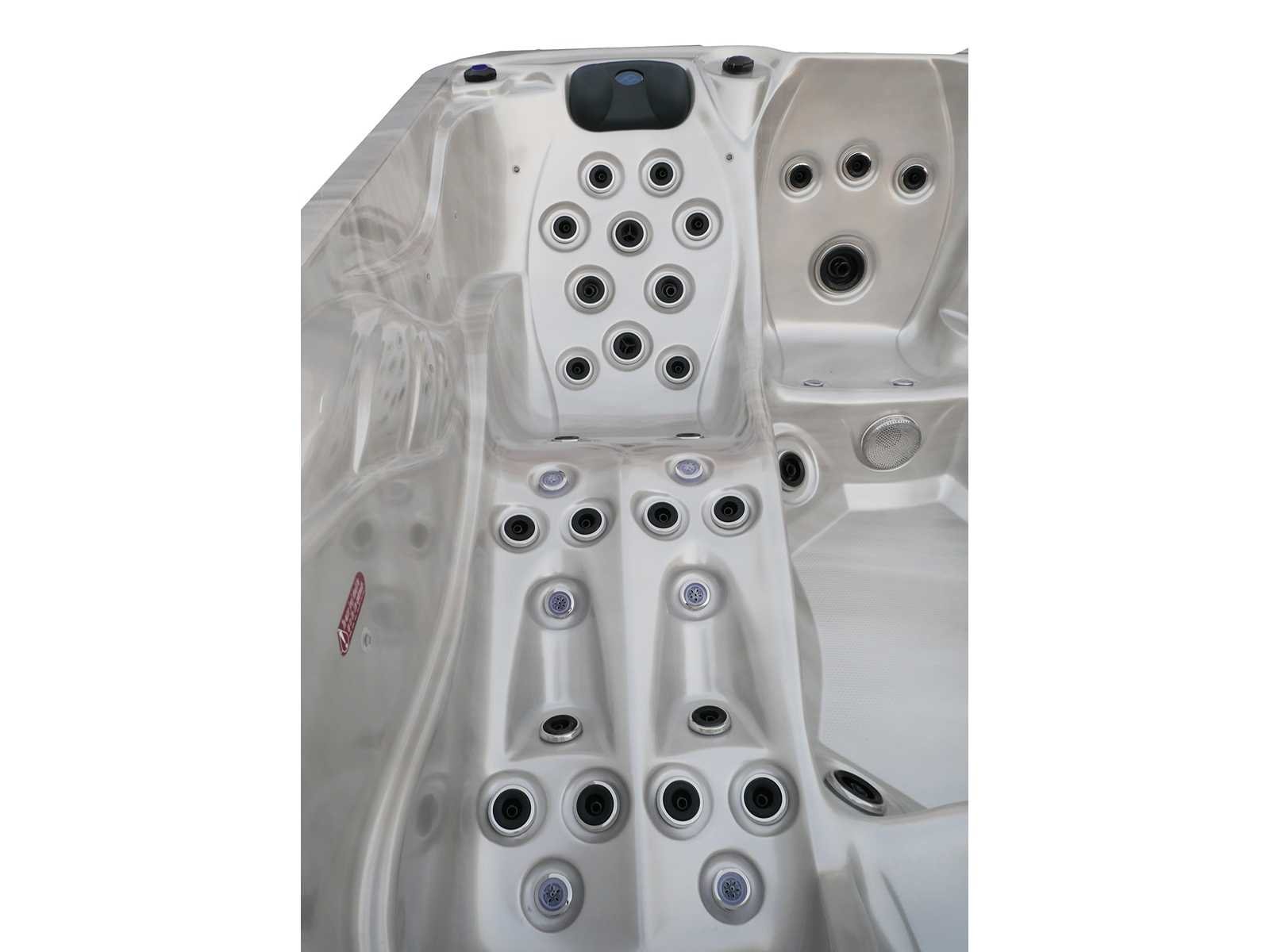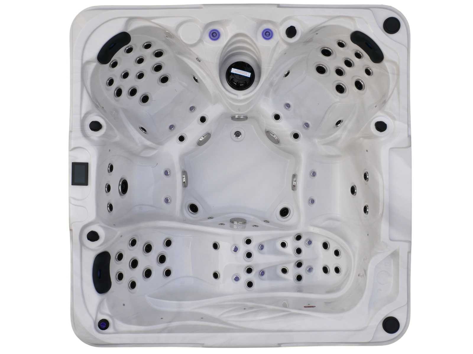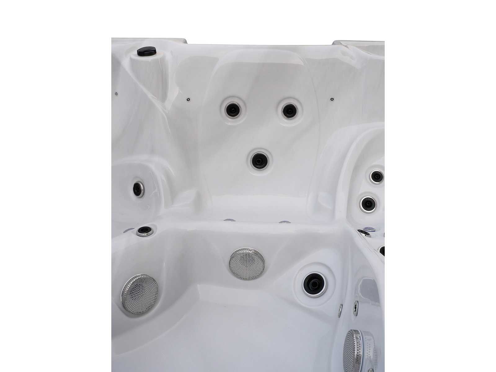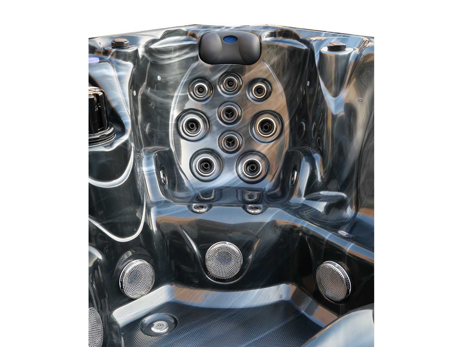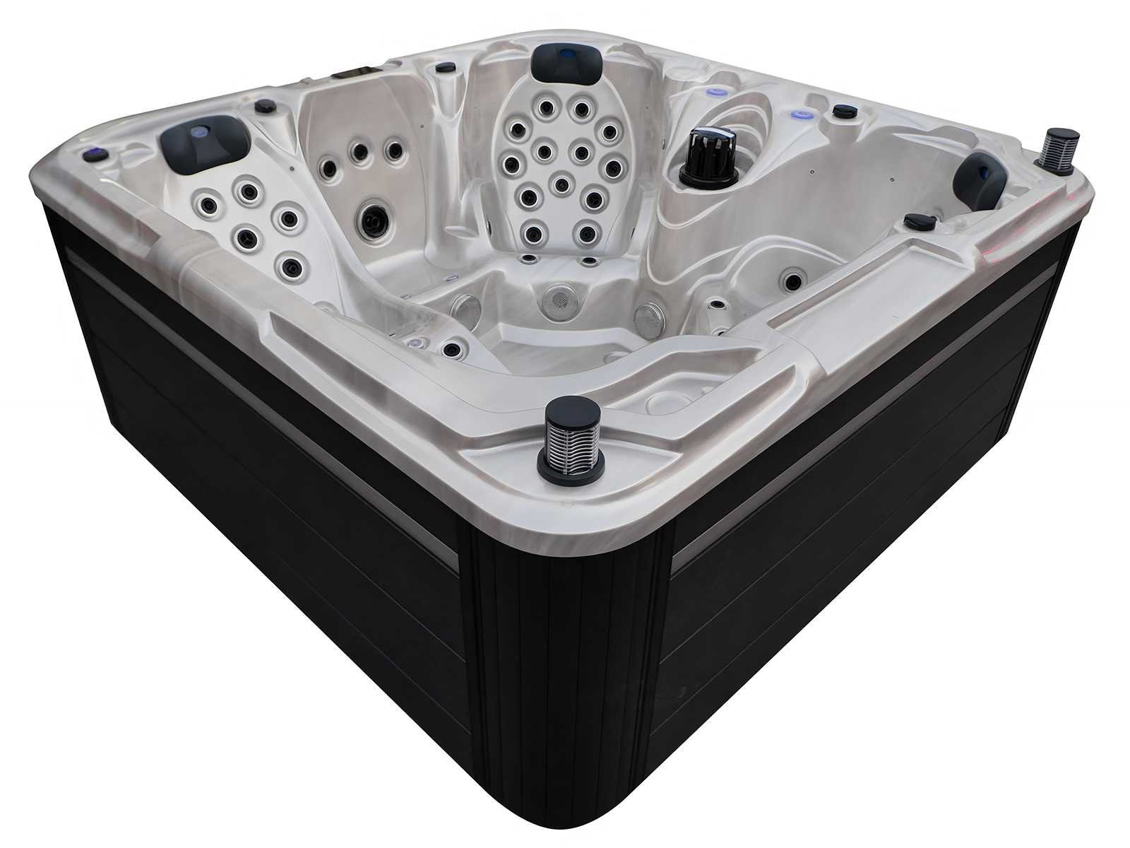 Besturing balboa (Balboa BP21 computer + nieuwste Spa touch 3 display), Balboa heater (3000 watt), Balboa wifi (voor besturing op afstand met de telefoon/tablet), Balboa bluetooth audio, 2 popup speakers met ledverlichting, Subwoofer, kunststof onderhoudsvrije ombouw met ledverlichting rondom in de zijpanelen, 4 massage pompen (1* 2,5pk, 2* 2pk en 1* 400 watt luchtpomp), 24h circulatiepomp (0,5pk), 4 zitplaatsen en 1 ligplaats (3 plaatsen voorzien van hoofdkussen), dikke (zwarte) afdek cover inclusief, totaal 83 rvs stainless steel RVS jets waarvan 14 luchtjets met ledverlichting (diverse maten en verschillende hydro stralen), extra nek en voet massage jets, vorst beveiliging, ozone desinfectie systeem 50mg/h, diverse leds (36 stuks) verlichting langs de waterrand, aroma feeder, 2x pop-up water fontein met ledverlichting, 1x grote waterval met ledverlichting, diverse regelknoppen om de de kracht en de verdeling naar de jets te regelen, 1x oppervlakte en reinigingsfilter, kuip extra dikke foam isolatie (minimaal 45mm) + extra isolatie aan de buitenwanden met folie + 5mm dikke isolatie op de PVC gesloten bdem, waterafvoer, inclusief trapje, Aluminium frame (zeer sterk en roest bestendig) deze spa zit vol met alle mogelijk bestelbare opties, dit betreft een nieuw product in verpakking. De spa kan zowel op 220volt als 380volt worden aangesloten (27a of 41a). Merk: Mawialux Model: Mia Vermogen: 8500W Spanning: 220-380V Filters: 1 Verlichting: diverse leds met kleurentherapie (7 kleuren) op waterniveau Inhoud: 1500l Pompen: 5 Jets: 83 Aantal personen: 5 Kleur: Binnenkuip keuze uit 3 kleuren (H03 zwart, of H06 wit of H12 grijs) met donker zwarte ombouw (kleurkeuze graag doorgeven per email op info@mawialux.nl) Gewicht: 420kg Lengte: 220cm Breedte: 220cm Hoogte: 95cm Materiaal: USA Aristech acryl + Aluminium frame + kunststof ombouw + PVC gesloten bodem