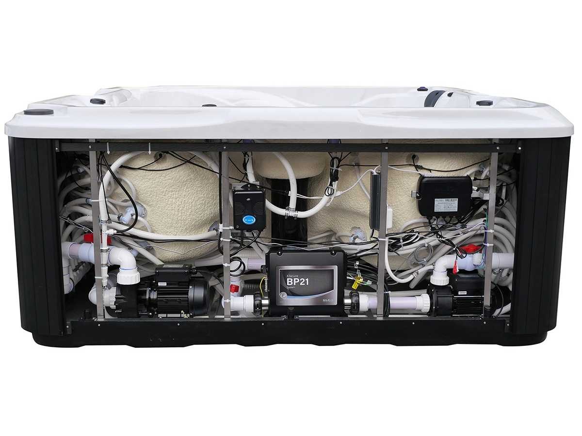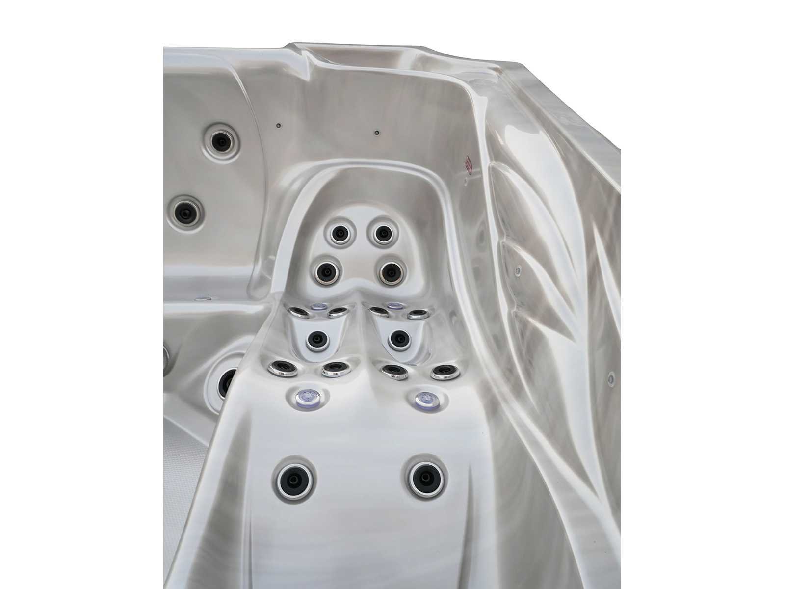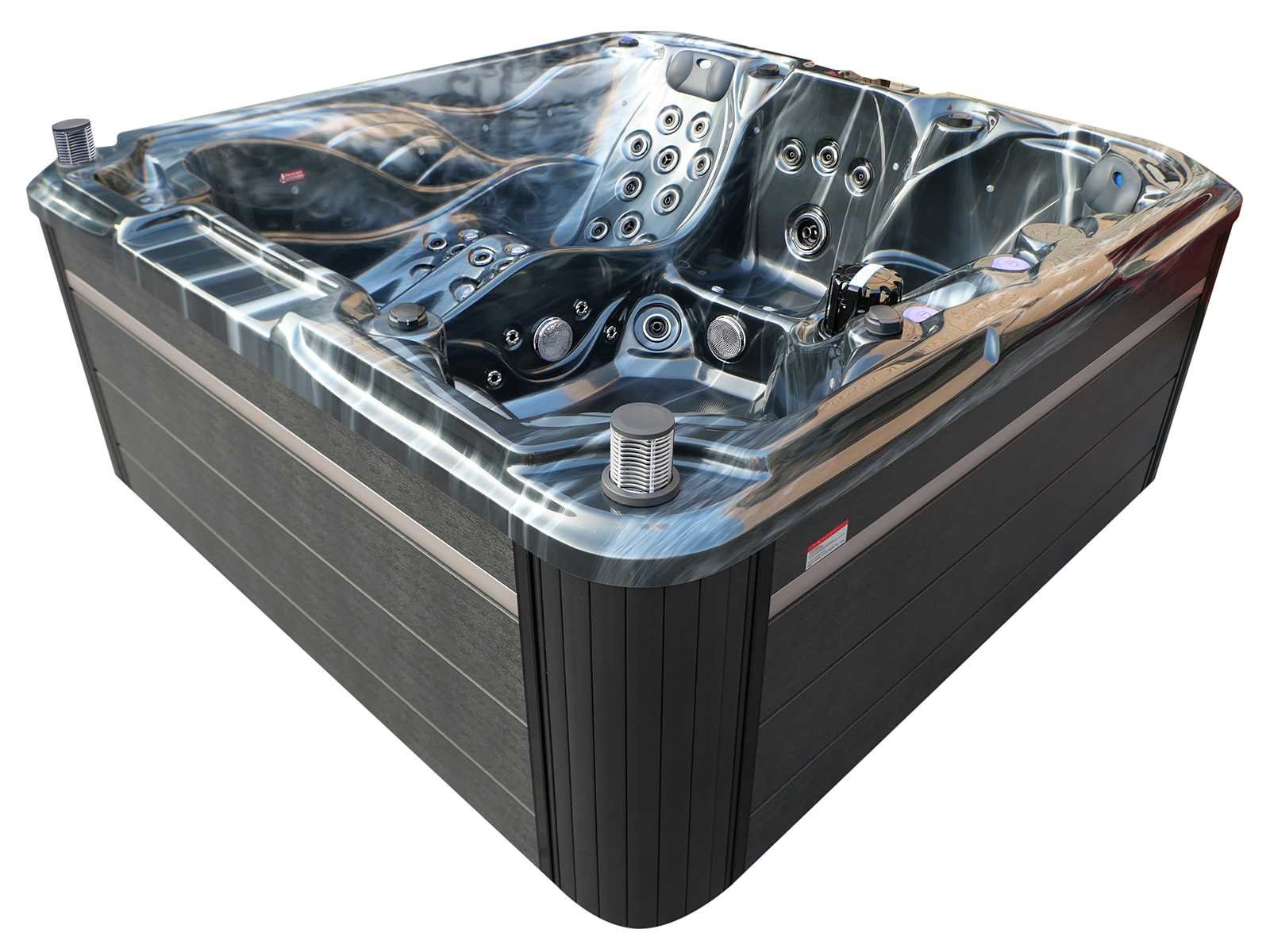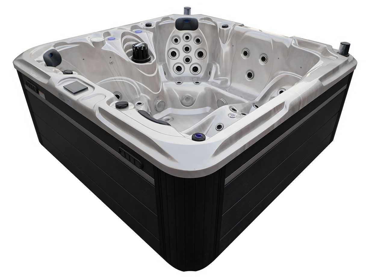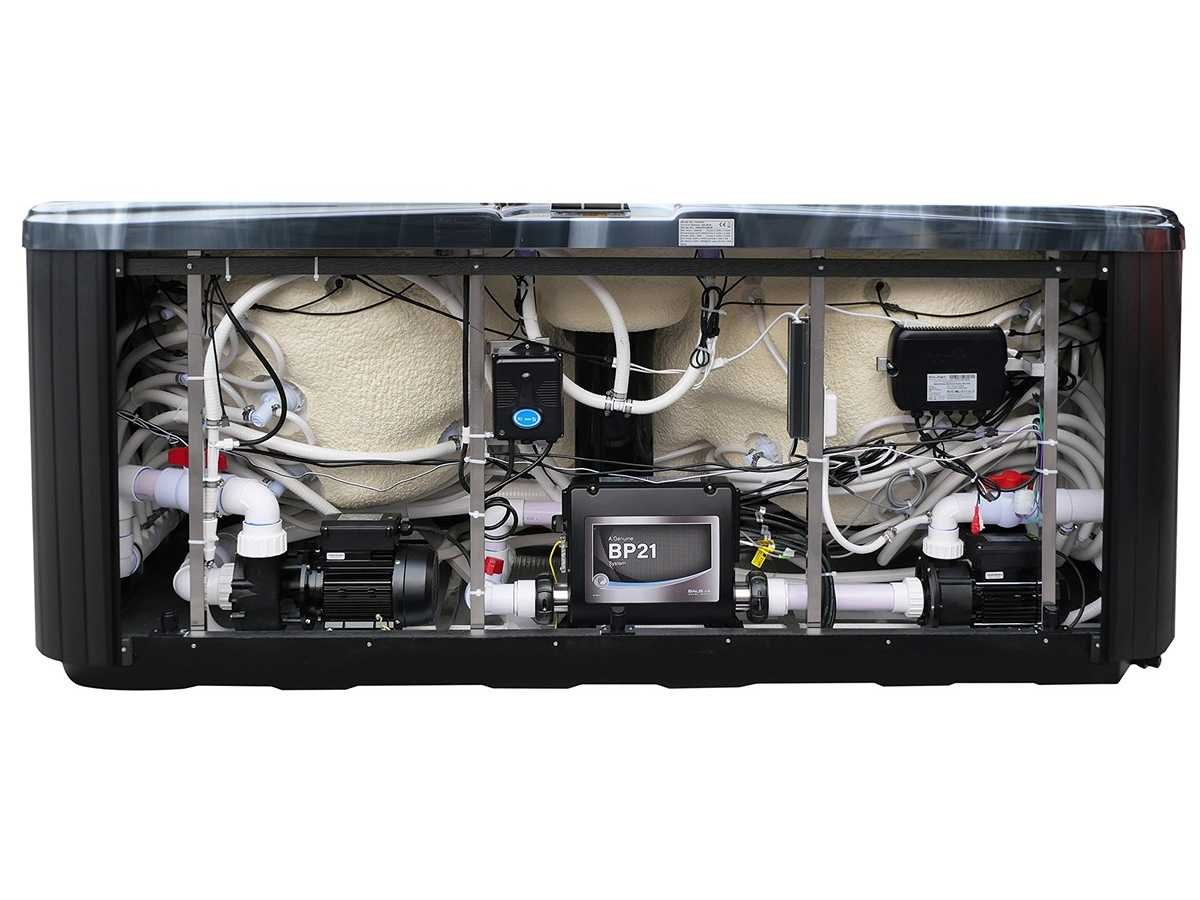 Besturing balboa (Balboa BP21 computer + nieuwste Spa touch 3 display), Balboa heater (3000 watt), Balboa wifi (voor besturing op afstand met de telefoon/tablet), Balboa bluetooth audio, 2 popup speakers met ledverlichting, Subwoofer, kunststof onderhoudsvrije ombouw met ledverlichting rondom in de zijpanelen, 4 massage pompen (1* 2,5pk, 2* 2pk en 1* 400 watt luchtpomp), 24h circulatiepomp (0,5pk), 4 zitplaatsen en 1 ligplaats (3 plaatsen voorzien van hoofdkussen), dikke (zwarte) afdek cover inclusief, totaal 83 rvs stainless steel RVS jets waarvan 14 luchtjets met ledverlichting (diverse maten en verschillende hydro stralen), extra nek en voet massage jets, vorst beveiliging, ozone desinfectie systeem 50mg/h, diverse leds (36 stuks) verlichting langs de waterrand, aroma feeder, 2x pop-up water fontein met ledverlichting, 1x grote waterval met ledverlichting, diverse regelknoppen om de de kracht en de verdeling naar de jets te regelen, 1x oppervlakte en reinigingsfilter, kuip extra dikke foam isolatie (minimaal 45mm) + extra isolatie aan de buitenwanden met folie + 5mm dikke isolatie op de PVC gesloten bdem, waterafvoer, inclusief trapje, Aluminium frame (zeer sterk en roest bestendig) deze spa zit vol met alle mogelijk bestelbare opties, dit betreft een nieuw product in verpakking. De spa kan zowel op 220volt als 380volt worden aangesloten (27a of 41a). Merk: Mawialux Model: Mia Vermogen: 8500W Spanning: 220-380V Filters: 1 Verlichting: diverse leds met kleurentherapie (7 kleuren) op waterniveau Inhoud: 1500l Pompen: 5 Jets: 83 Aantal personen: 5 Kleur: Binnenkuip keuze uit 3 kleuren (H03 zwart, of H06 wit of H12 grijs) met donker zwarte ombouw (kleurkeuze graag doorgeven per email op info@mawialux.nl) Gewicht: 420kg Lengte: 220cm Breedte: 220cm Hoogte: 95cm Materiaal: USA Aristech acryl + Aluminium frame + kunststof ombouw + PVC gesloten bodem