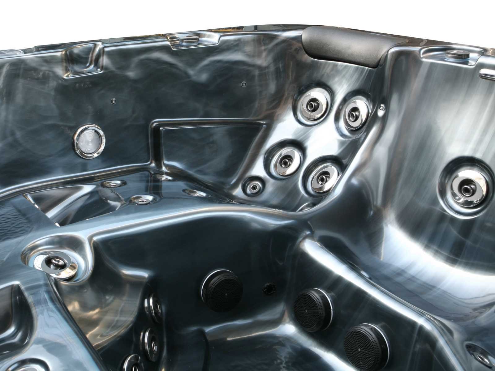 Bluetooth met speakers, kunststof onderhoudsvrije ombouw , besturing gecko uit canada (Gecko YE-5 + IN.K800), Gecko heater (3600 watt), 3 massage pompen (2x 3pk en 1x 1pk extra stille pomp), 24h circulatiepomp (200watt), 2 liglaatsen en 4 zitplaatsen (4 plaatsen voorzien van hoofdkussen), afdek cover extra dik inclusief (grijs), totaal 86 stainless steel RVS jets, extra nek en voet massage jets, vorst beveiliging, UV desinfectie systeem, diverse leds verlichting langs de waterrand + leds in de buitenhoek van de spa, diverse regelknoppen om de de kracht en de verdeling naar de jets te regelen, oppervlakte en reinigingsfilter, kuip extra dikke foam isolatie + extra isolatie aan de buitenwanden, waterafvoer, inclusief trapje (grijs), deze spa zit vol met alle mogelijk bestelbare opties, dit betreft een nieuw product in verpakking. Merk: Mawialux Model: New Roma Vermogen: 9050W Spanning: 220-380V Filters: 2 Verlichting: diverse leds met kleurentherapie (7 kleuren) op waterniveau Inhoud: 1500l Pompen: 4 Jets: 86 Aantal personen: 6 Kleur: snow white (wit) met zwarte ombouw Gewicht: 400kg Lengte: 230cm Breedte: 230cm Hoogte: 97cm Materiaal: acryl + Aluminium frame + kunststof ombouw + PVC gesloten bodem