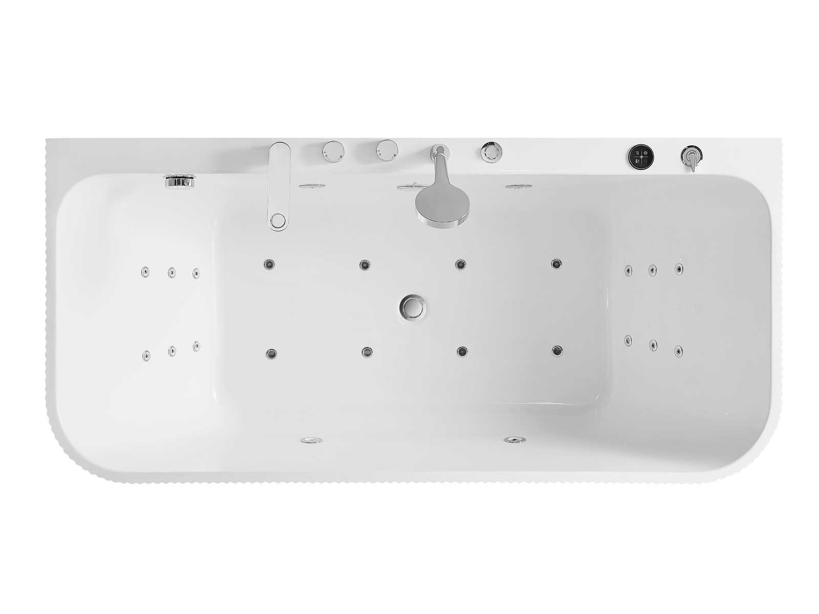 Bleutooth met speakers; digitaal bedieningspaneel; De badkranen op de rand van het bad zijn gemaakt van verchroomd messing; 18 hydro massagejets; 8 lucht massagejets; 1,5pk massagepomp, 300watt luchtpomp; waterval massagestraal; massagejets regelbaar; droogloop beveiliging; led verlichting met kleurentherapie; pop-up afvoer met flexibele waterslang; stroom 220v (met plug and play stekker); handdouche met kraanwerk.; onderstel verstelbaar van RVS. LET OP: Mat wit of glans wit keuze (kleurkeuze graag aangeven per email op info@mawialux.nl of aangeven op de afhaaldag) Merk: Mawialux Kleur: Mat wit of glans wit (kleurkeuze graag aangeven per email op info@mawialux.nl) Gewicht: 75kg Lengte: 170cm Breedte: 80cm Hoogte: 60cm Materiaal: 7 mm acryl verstevigd met polyester en messing kraanwerk