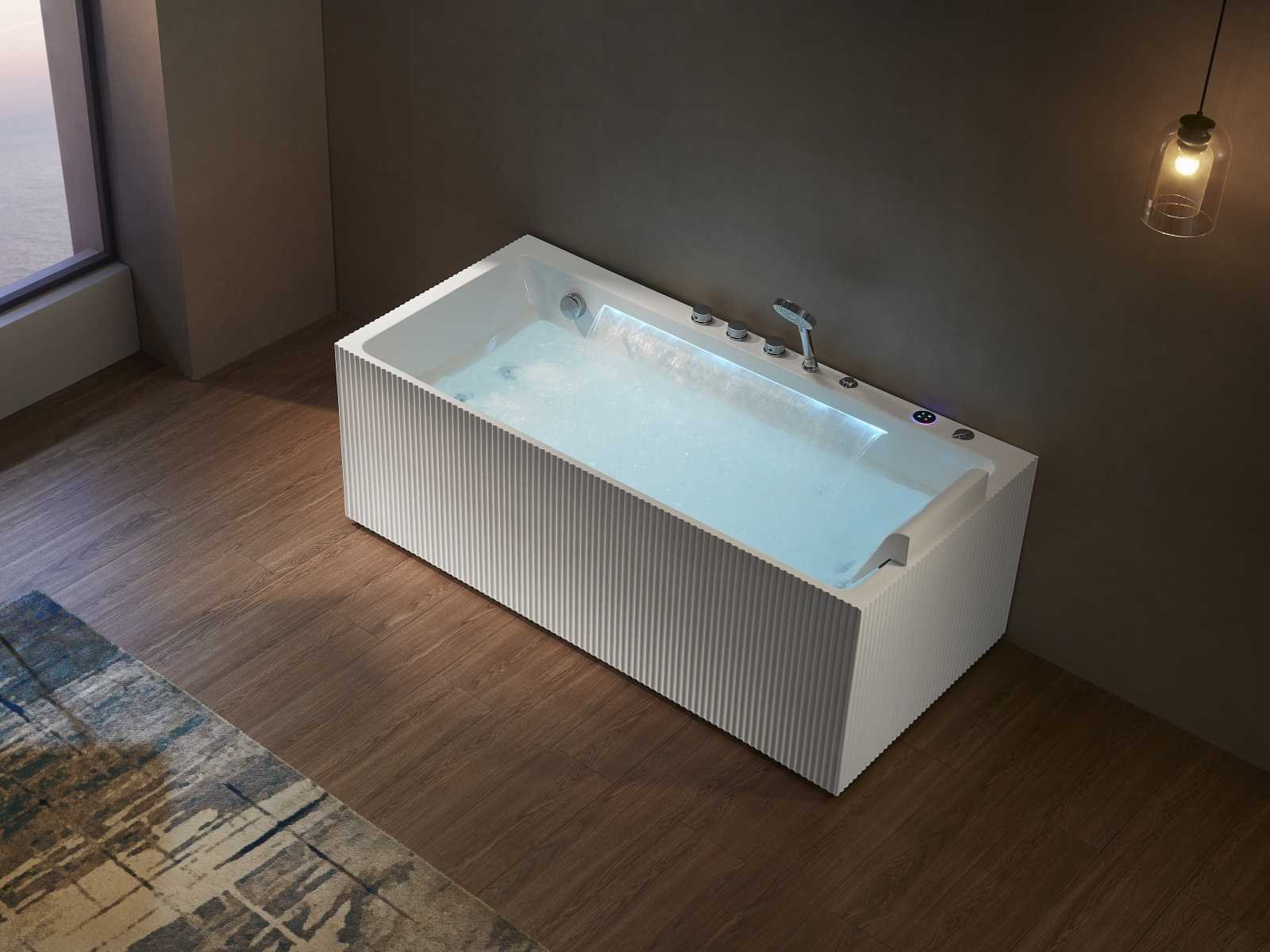 Bleutooth met speakers; digitaal bedieningspaneel; De badkranen op de rand van het bad zijn gemaakt van verchroomd messing; 16 hydro massagejets; 10 lucht massagejets; 1,5pk massagepomp, 300watt luchtpomp; waterval massagestraal; massagejets regelbaar; droogloop beveiliging; led verlichting met kleurentherapie; pop-up afvoer met flexibele waterslang; stroom 220v (met plug and play stekker); handdouche met kraanwerk.; onderstel verstelbaar van RVS; wit zacht hoofdkussen, Merk: Mawialux Kleur: Mat wit Gewicht: 75kg Lengte: 180cm Breedte: 80cm Hoogte: 60cm Materiaal: 7 mm acryl verstevigd met polyester en messing kraanwerk