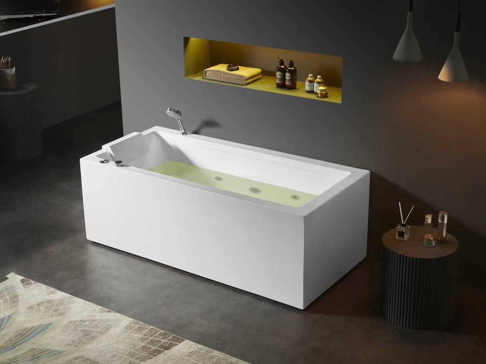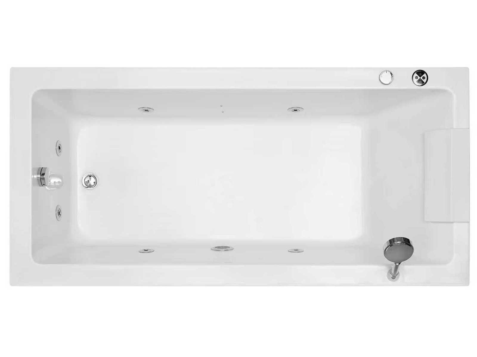 Bleutooth met speakers; de badkranen op de rand van het bad zijn gemaakt van verchroomd messing; 6 hydro massagejets; 2pk massagepomp, 2x waterval massagestralen (links en rechts); massagejets regelbaar; droogloop beveiliging; led verlichting met kleurentherapie; pop-up afvoer met flexibele waterslang; stroom 220v (met plug and play stekker); handdouche met kraanwerk; 1x zachte hoofdkussen, onderstel verstelbaar van RVS Merk: Mawialux Kleur: Mat wit Gewicht: 75kg Lengte: 170cm Breedte: 80cm Hoogte: 60cm Materiaal: 7 mm acryl verstevigd met polyester en messing kraanwerk