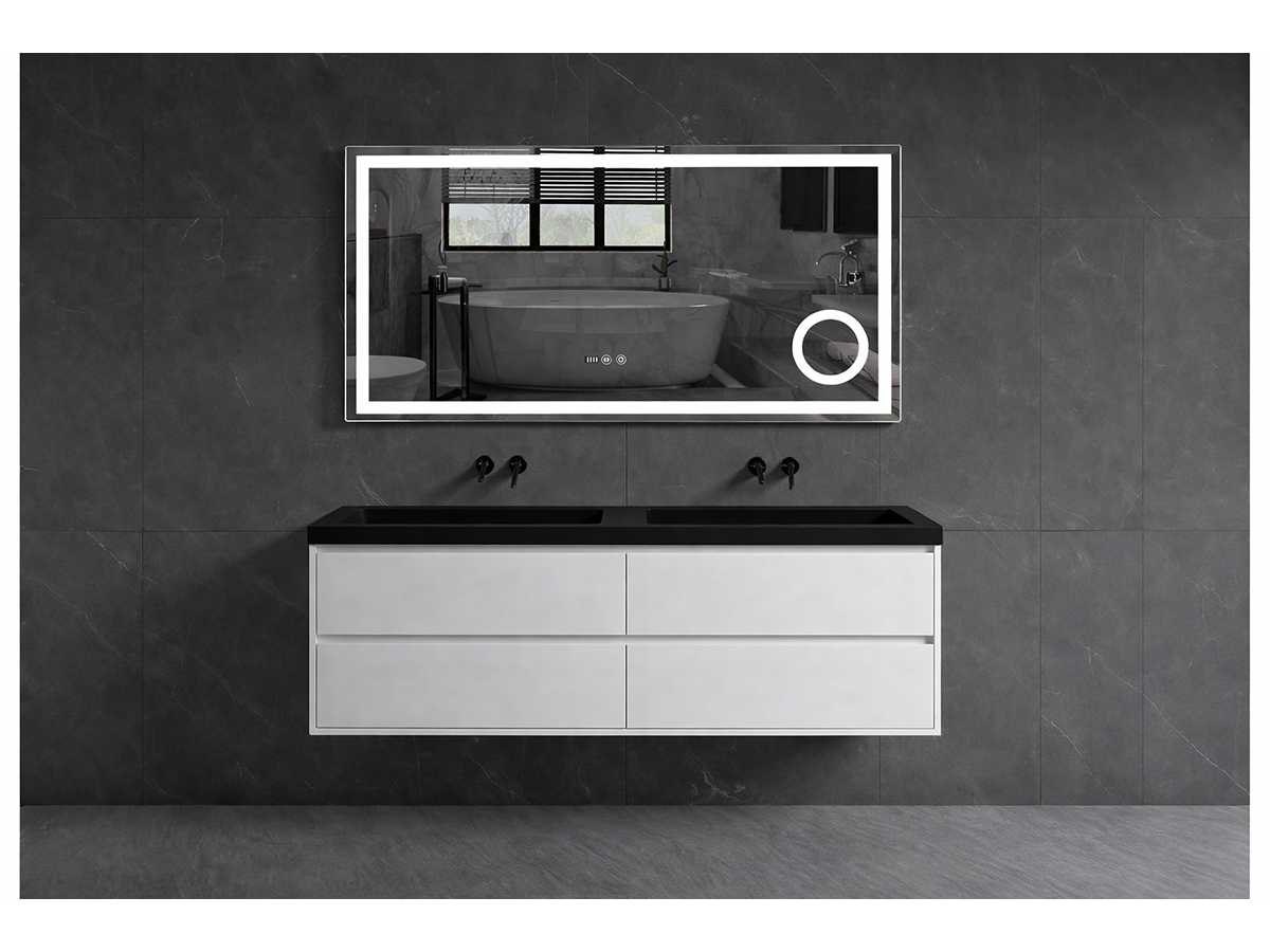 Let op: wordt geleverd met de mat zwarte bak (mat wit is niet meer beschikbaar), materiaal 5-laags multiplex(zeer sterk en vochtbestendig), kranen exclusief , Lades 4 stuks met softclose, wasbak van acryl, wordt geleverd met spiegel model iris met verwarming, klok en vergrootglas met ledverlichting rondom aan voorkant met 3 verstelbare kleuren led 3000/4500/6000k led-dioden (geel/blauw/wit licht) met de volgende opties: digitaal display, geïntegreerde vergrotingsspiegel van 10cm doorsnede met ledverlichting(vergroot 3x), digitale klok, digitale temperatuur aanduiding, 220volt stekker(plug and play), verwarming ter voorkoming van condens, 1.5mm kopervrij met explosion-proof laag met dezelfde functie als gehard glas, afvoeren exclusief, Conditie: Nieuw in doos, Bijzonderheden: 2 jaar garantie, wasbak is met en zonder kraangaten mogelijk, keuze graag ook aangeven op de afhaaldag), compleet met installatie materiaal, zeer hoge kwaliteit, Let op: er mag ook voor een andere spiegel gekozen worden indien gewenst Merk: Mawialux Model: Jane Hoogte: 50cm Lengte: 46cm Breedte: 120cm Materiaal: 5-laag multiplex + acryl Kleur: mat wit Kraan: exclusief Wastafel: mat zwart (acryl) met of zonder kraangaten beschikbaar Spiegel met verlichting: ja Verlichting: ja Lades: 4 Softclose: true Bevestigingsmateriaal: true Zijkast: nee