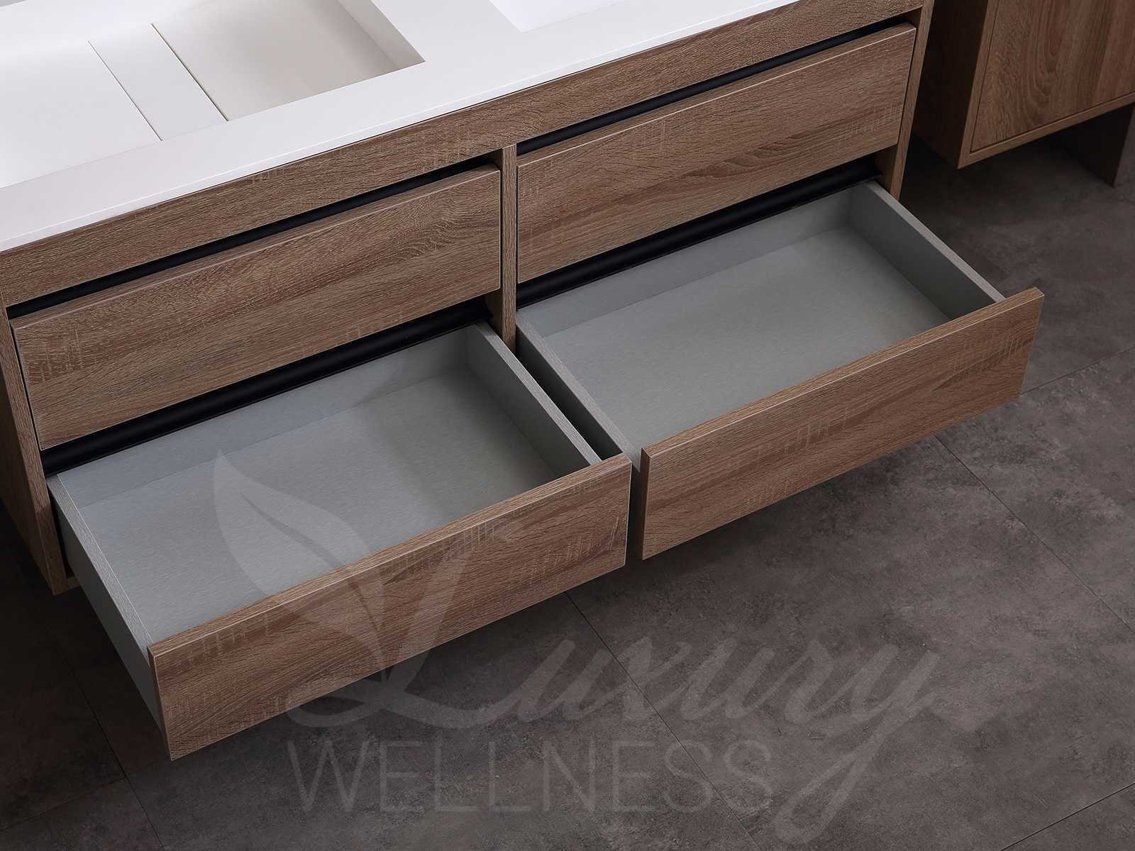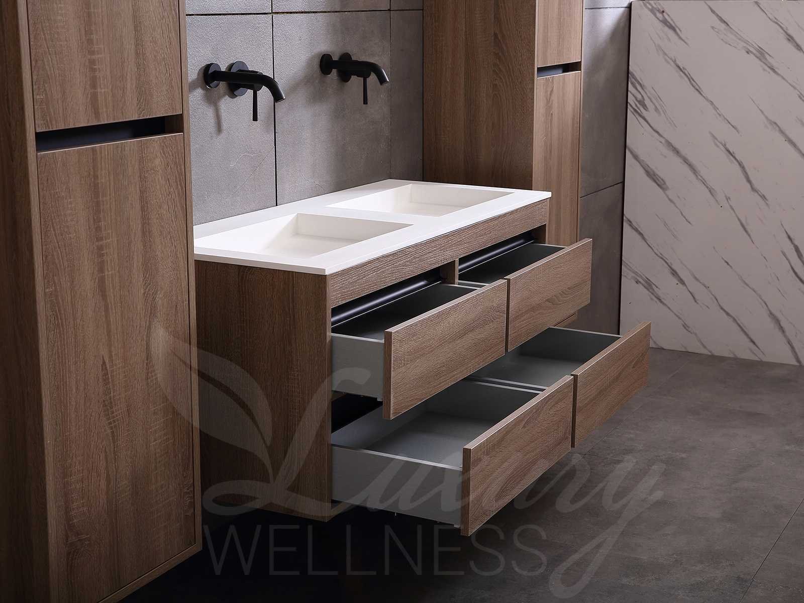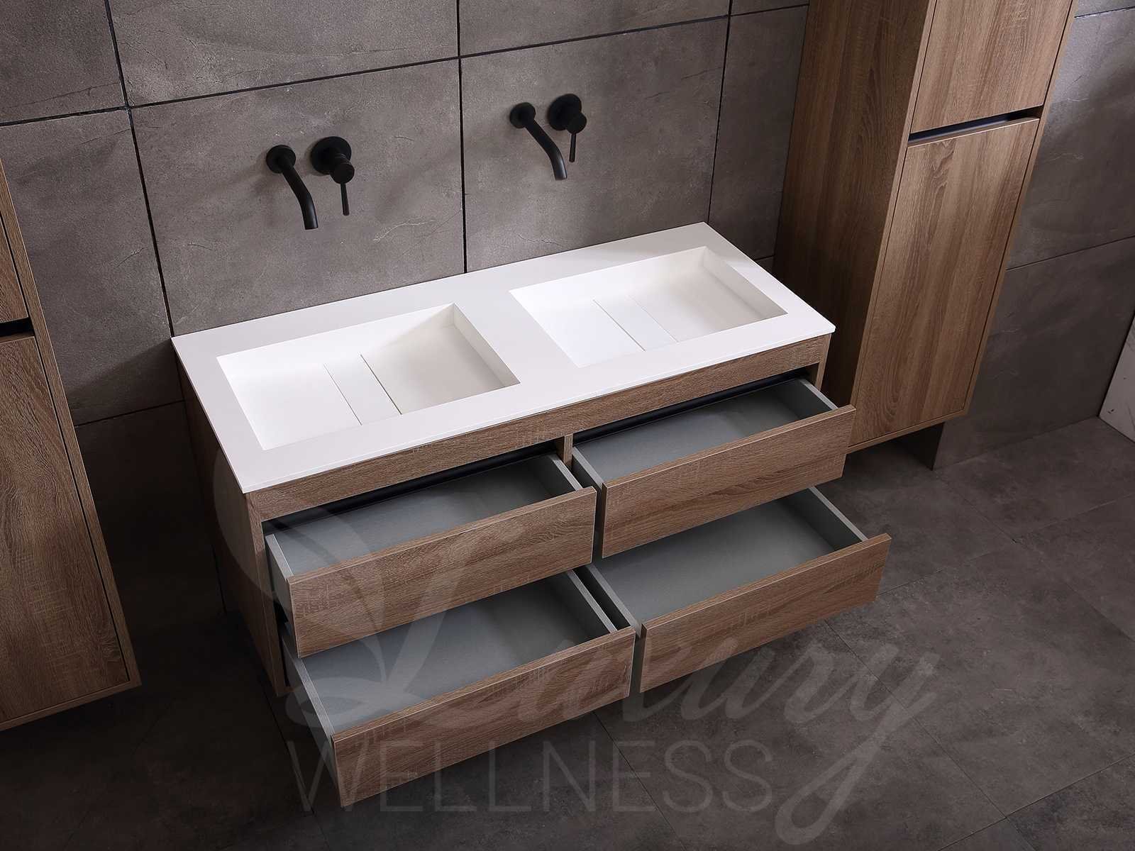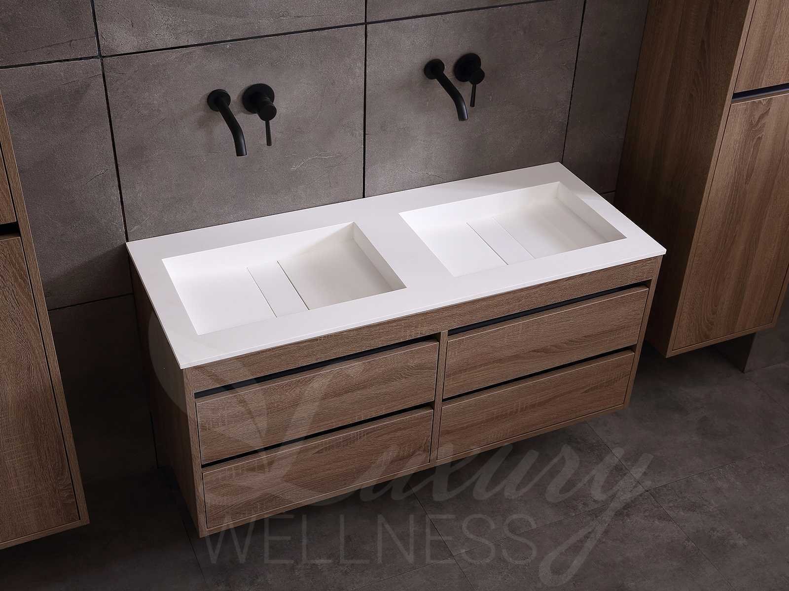 Afmeting meubel: bxdxh 120x49x50cm - hangkast 40x35x160cm, Kleur bruin eiken, Materiaal 2cm 5-laags multiplex(zeer sterk en vochtbestendig), Hangkast softclose deuren en extra planchets (hangkast is universeel en kan zowel links als rechts naast het meubel gehangen worden), Kranen exclusief , Lades 4 stuks met softclose, Wastafel natuursteen of solid surface (keuze uit diverse modellen van de laatste foto's vaste of losse wasbakken met een mat witte of mat zwarte solid surface top, vaste bakken zijn ook zonder kraangaten beschikbaar zodat u muurkranen kunt gebruiken! Keuze graag aangeven per email op info@mawialux.nl), Spiegel ledspiegel met ledverlichting(6000K led-dioden)/vergrootglas/verwarming(anti condens)/klok met touchscreen (mag ook voor een 80 of 100cm ronde spiegel geruild worden indien gewenst of tegen een kleine meerprijs een luxure variant met display, bluetooth en speakers, neem daarvoor contact met ons op voor een passende aanbieding op info@mawialux.nl), Afvoeren exclusief , Conditie: Nieuw in doos, Bijzonderheden 2 jaar garantie, compleet met installatiekit, mat zwarte aluminium grepen achter de inkepingen van de lades en deuren, natuursteen wastafel is behandeld met coating, zeer hoge kwaliteit, Extra's de hangkast mag geruild worden voor een set kranen en popup afvoeren naar keus(graag aangeven per email op info@mawialux.nl) of als u een extra hangkast nodig heeft kunt u ons ook mailen voor een passende aanbieding Merk: mawialux Hoogte: 50cm Lengte: 49cm Breedte: 120cm Materiaal: 2cm 5-laags multiplex(zeer sterk en vochtbestendig) Kleur: bruin eiken Spiegel met verlichting: ja Lades: 4