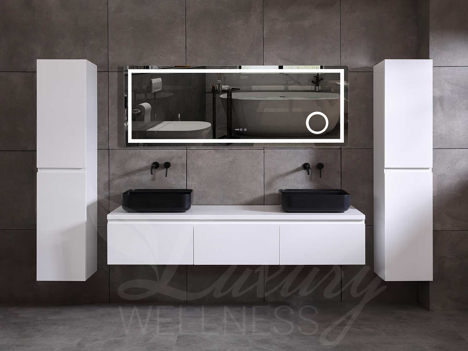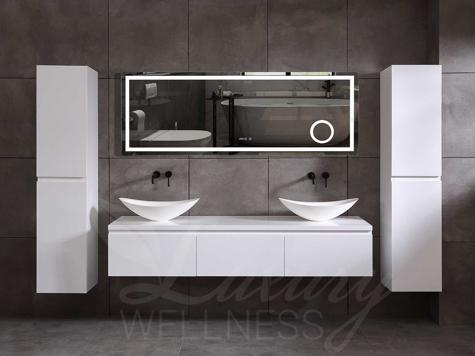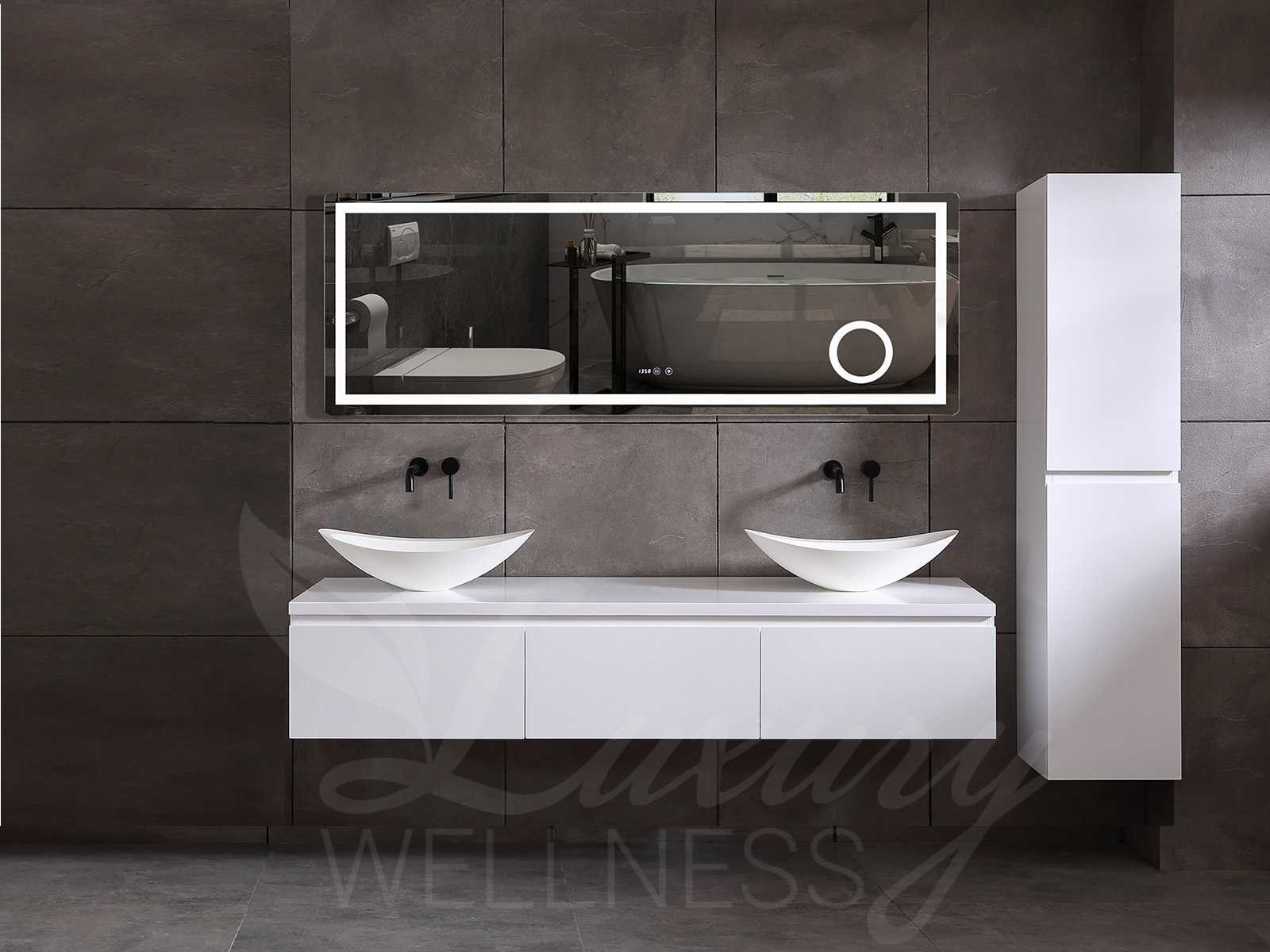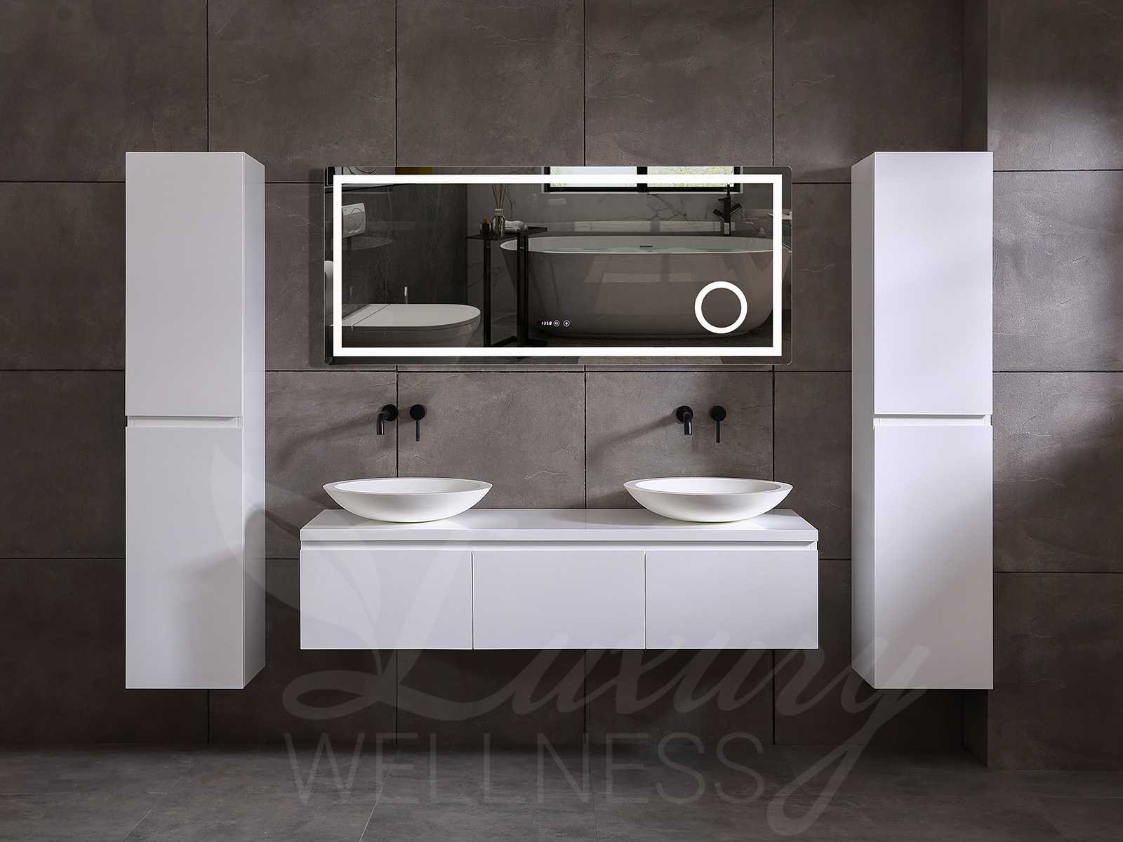 Afmeting meubel keuze uit 2 maten bxdxh 150x50x35cm of 180x50x35cm (keuze breedte graag doorgeven op de afhaaldag - hangkast 35x35x160cm (wordt er 1 bij geleverd), kleur mat wit, materiaal 5-laags multiplex met 3cm eiken top(zeer sterk en vochtbestendig), Hangkast softclose deuren en extra planchets (hangkast kan zowel links als rechts van het meubel worden gehangen), kranen exclusief , Lades 2 stuks met softclose, Wasbakken solid surface, natuursteen of italiaans marmer (keuze uit diverse modellen van de laatste 3 foto's, graag keuze doormailen op info@mawialux.nl), spiegel met verwarming/klok/temperatuur en vergrootglas met ledverlichting met 3 verstelbare kleuren led 3000/4500/6000k led-dioden (geel/blauw/wit licht) met de volgende opties: digitaal display, geïntegreerde vergrotingsspiegel van 10cm doorsnede met ledverlichting(vergroot 3x), digitale klok, digitale temperatuur aanduiding, 220volt stekker(plug and play), verwarming ter voorkoming van condens, 1.5mm kopervrij met explosion-proof laag met dezelfde functie als gehard glas , afvoeren exclusief, Conditie: Nieuw in doos, Bijzonderheden 2 jaar garantie, gaten zijn niet in het topblad voorgeboord zodat u zowel muurkranen als kranen vanaf het blad kunt gebruiken of zelf 1 wastafel in plaats van 2 stuks(gaten boren door een installateur is zelf gemakkelijk uit te voeren), compleet met installatie materiaal, zeer hoge kwaliteit, let op! de hangkast mag geruild worden voor een set kranen en popup afvoeren naar keus of als u een extra hangkast nodig graag op de afhaaldag aangeven voor een passende aanbieding Merk: Mawialux Model: Jeremy Breedte: 150-180cm Kleur: mat wit Kraan: exclusief Wastafel: Diverse keuzes Lades: 3 Softclose: true Bevestigingsmateriaal: true Zijkast: ja