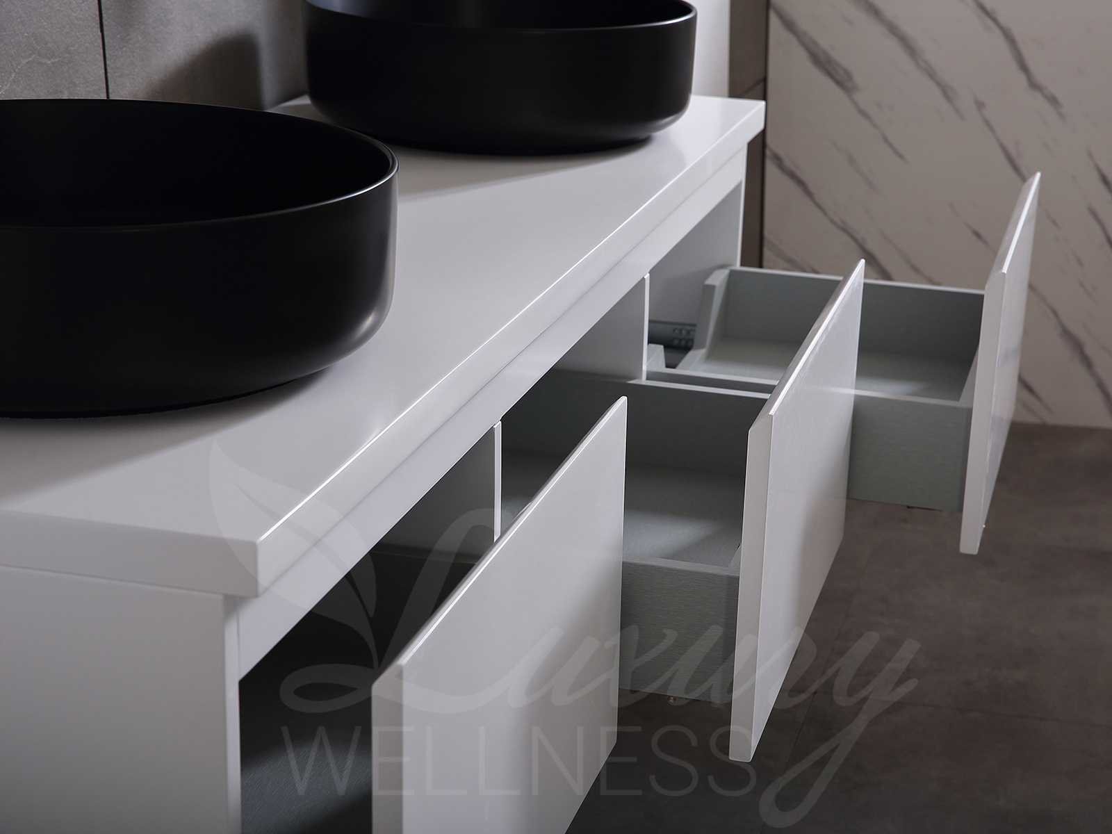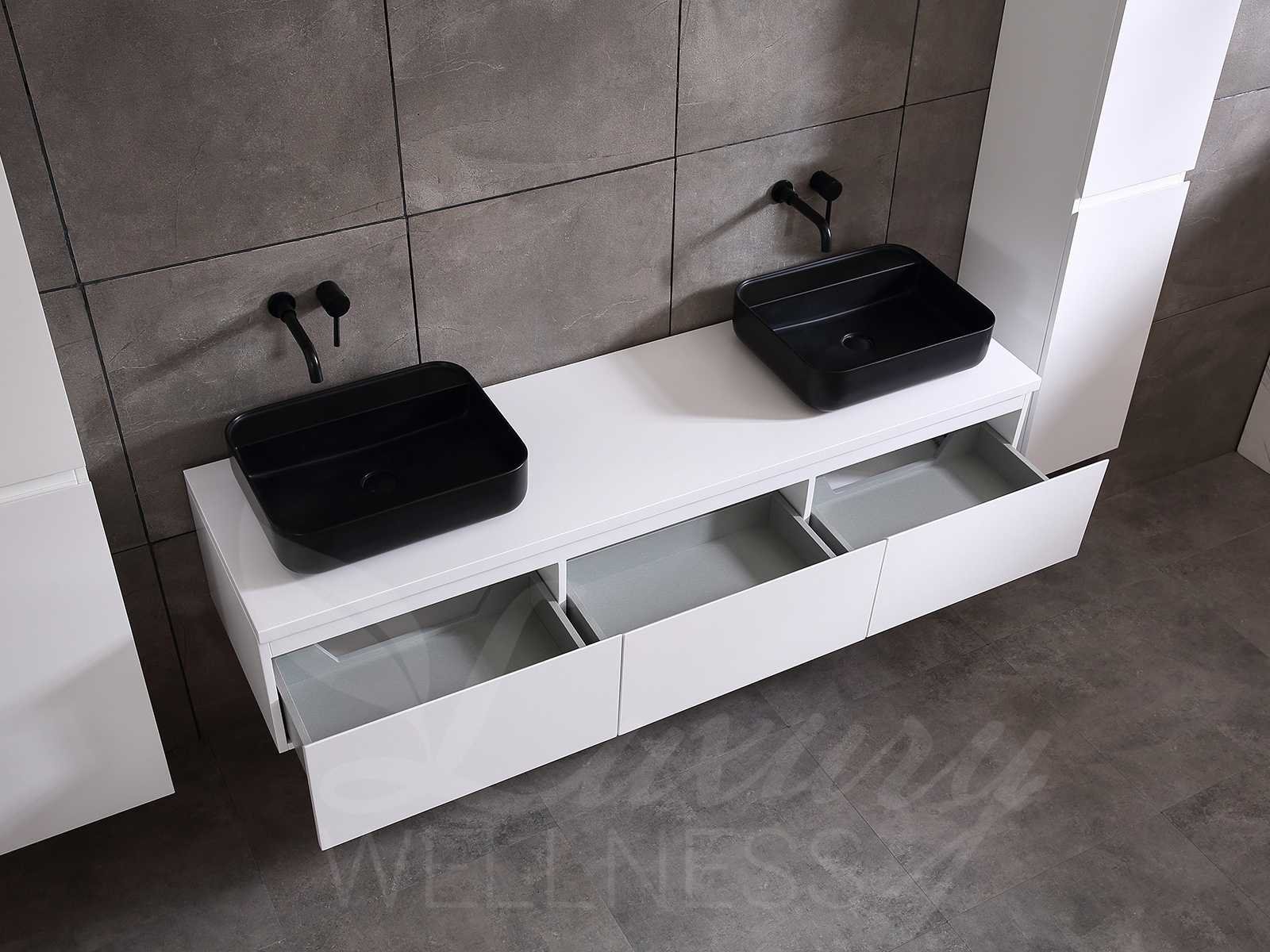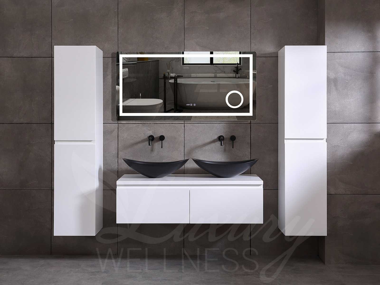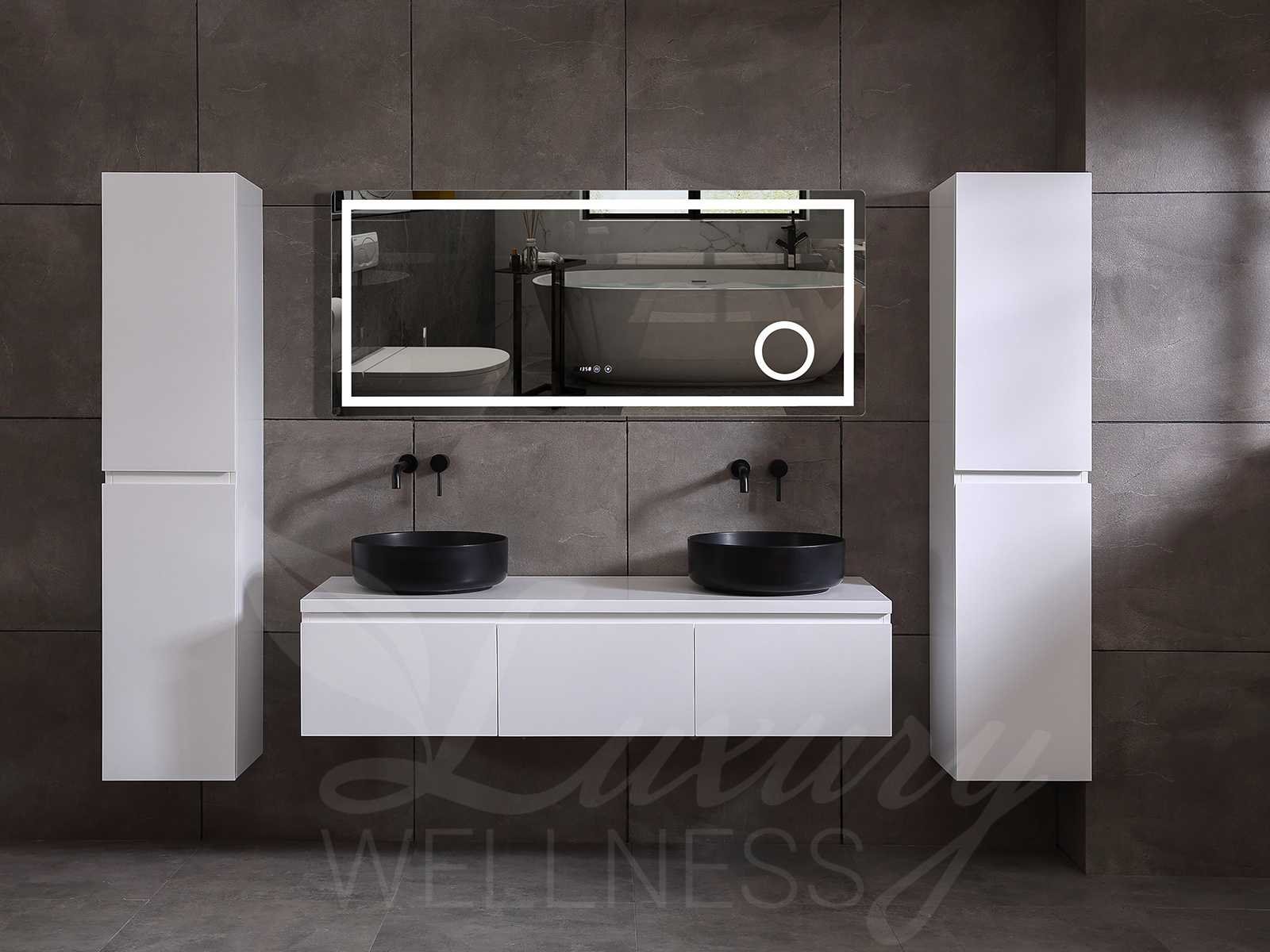 Afmeting meubel keuze uit 2 maten bxdxh 150x50x35cm of 180x50x35cm (keuze breedte graag doorgeven op de afhaaldag - hangkast 35x35x160cm (wordt er 1 bij geleverd), kleur mat wit, materiaal 5-laags multiplex met 3cm eiken top(zeer sterk en vochtbestendig), Hangkast softclose deuren en extra planchets (hangkast kan zowel links als rechts van het meubel worden gehangen), kranen exclusief , Lades 2 stuks met softclose, Wasbakken solid surface, natuursteen of italiaans marmer (keuze uit diverse modellen van de laatste 3 foto's, graag keuze doormailen op info@mawialux.nl), spiegel met verwarming/klok/temperatuur en vergrootglas met ledverlichting met 3 verstelbare kleuren led 3000/4500/6000k led-dioden (geel/blauw/wit licht) met de volgende opties: digitaal display, geïntegreerde vergrotingsspiegel van 10cm doorsnede met ledverlichting(vergroot 3x), digitale klok, digitale temperatuur aanduiding, 220volt stekker(plug and play), verwarming ter voorkoming van condens, 1.5mm kopervrij met explosion-proof laag met dezelfde functie als gehard glas , afvoeren exclusief, Conditie: Nieuw in doos, Bijzonderheden 2 jaar garantie, gaten zijn niet in het topblad voorgeboord zodat u zowel muurkranen als kranen vanaf het blad kunt gebruiken of zelf 1 wastafel in plaats van 2 stuks(gaten boren door een installateur is zelf gemakkelijk uit te voeren), compleet met installatie materiaal, zeer hoge kwaliteit, let op! de hangkast mag geruild worden voor een set kranen en popup afvoeren naar keus of als u een extra hangkast nodig graag op de afhaaldag aangeven voor een passende aanbieding Merk: Mawialux Model: Jeremy Breedte: 150-180cm Kleur: mat wit Kraan: exclusief Wastafel: Diverse keuzes Lades: 3 Softclose: true Bevestigingsmateriaal: true Zijkast: ja